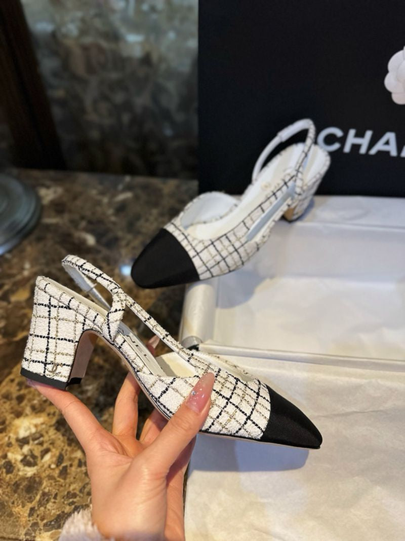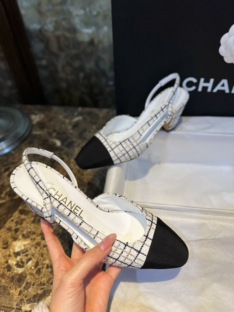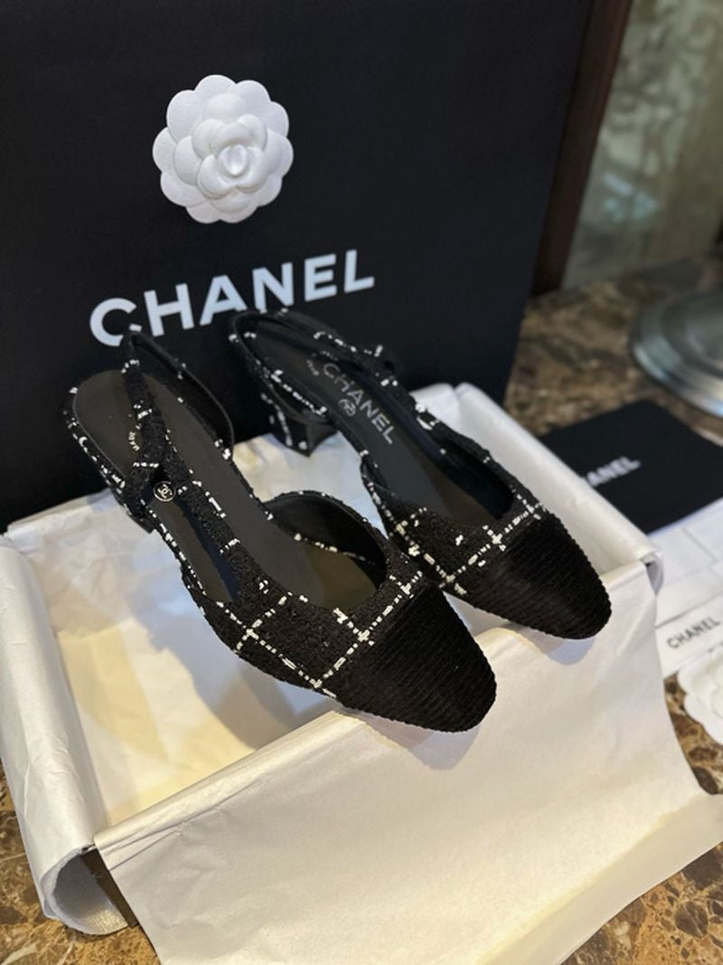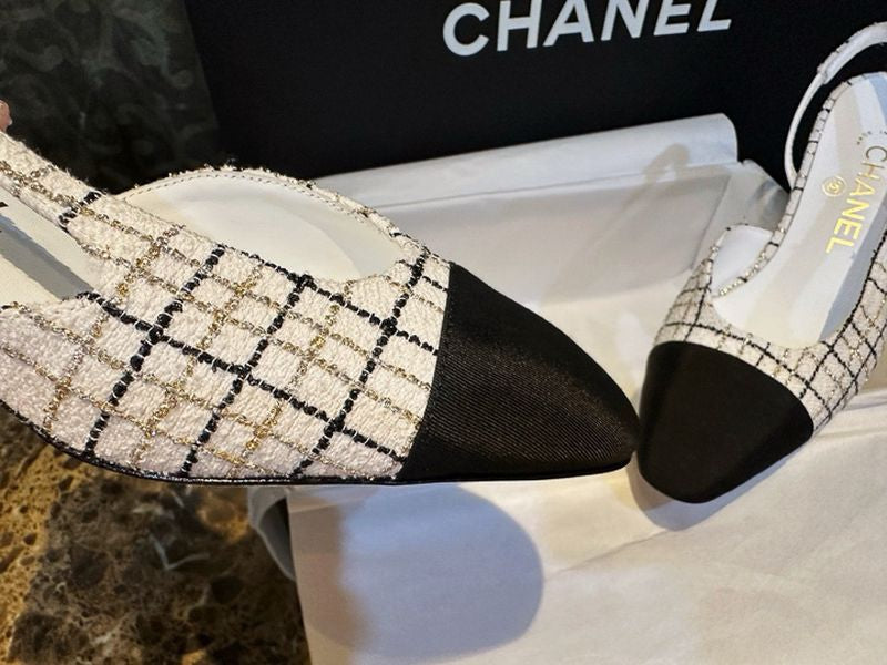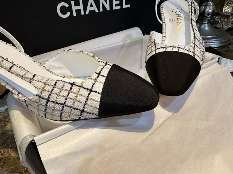 샤넬 트위드 슬링백 미드힐(Chanel Tweed Slingback Mid-Heel) - 텍스처의 미학과 우아한 실루엣
