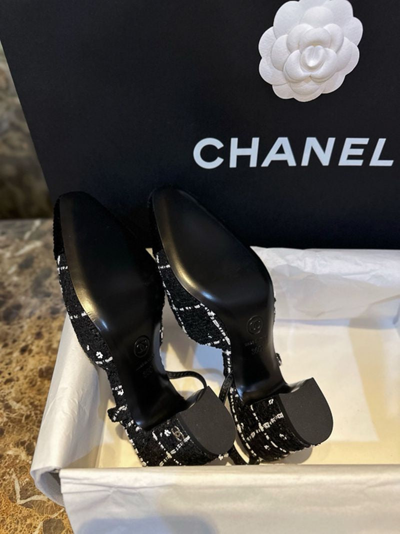 샤넬 트위트 슬링백 미드힐
