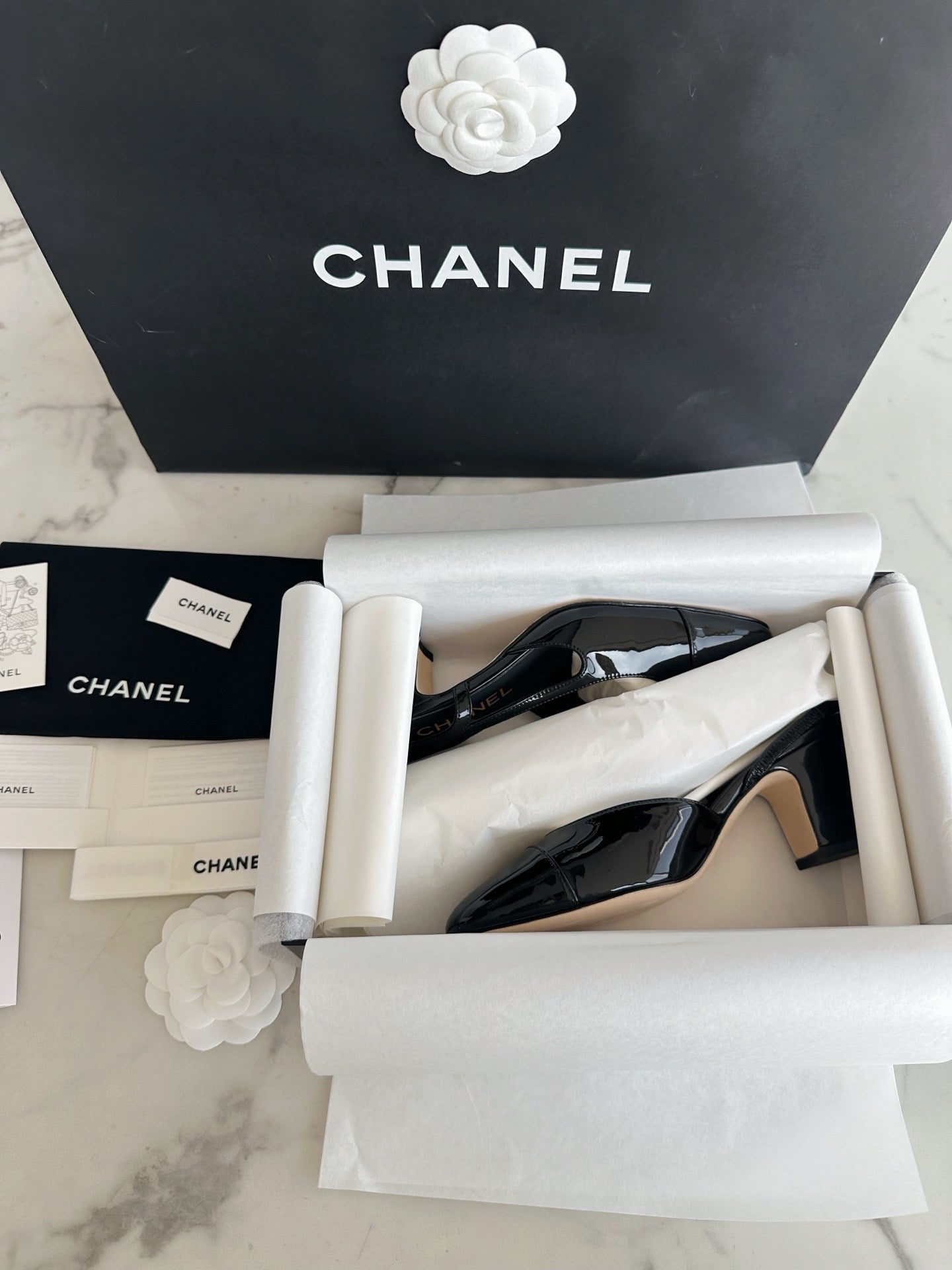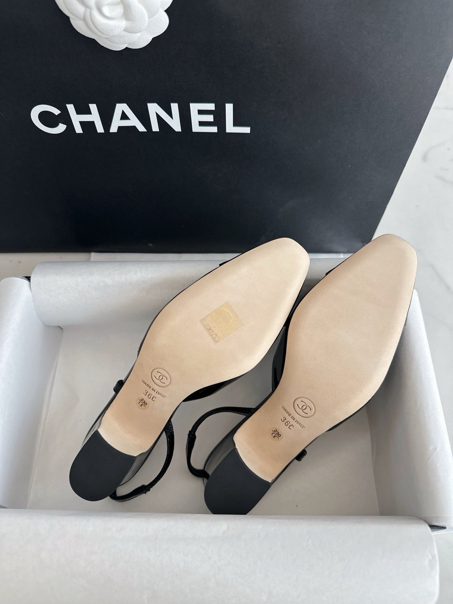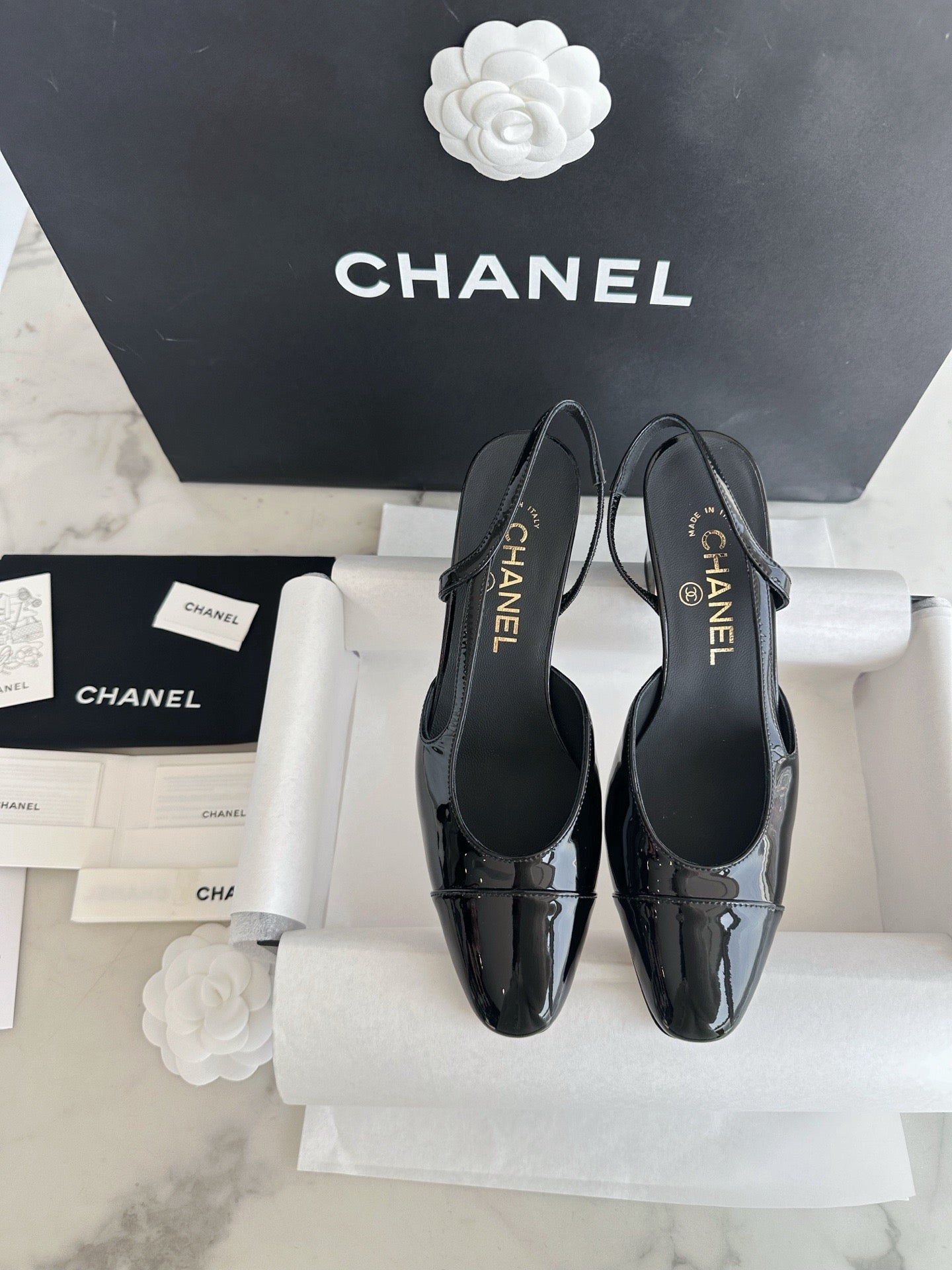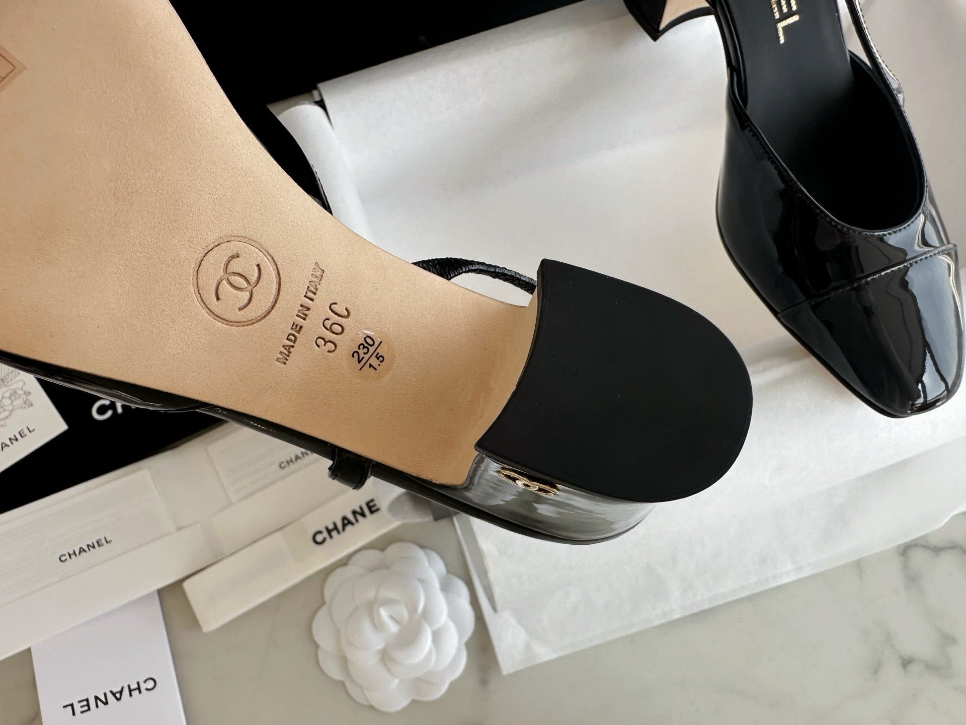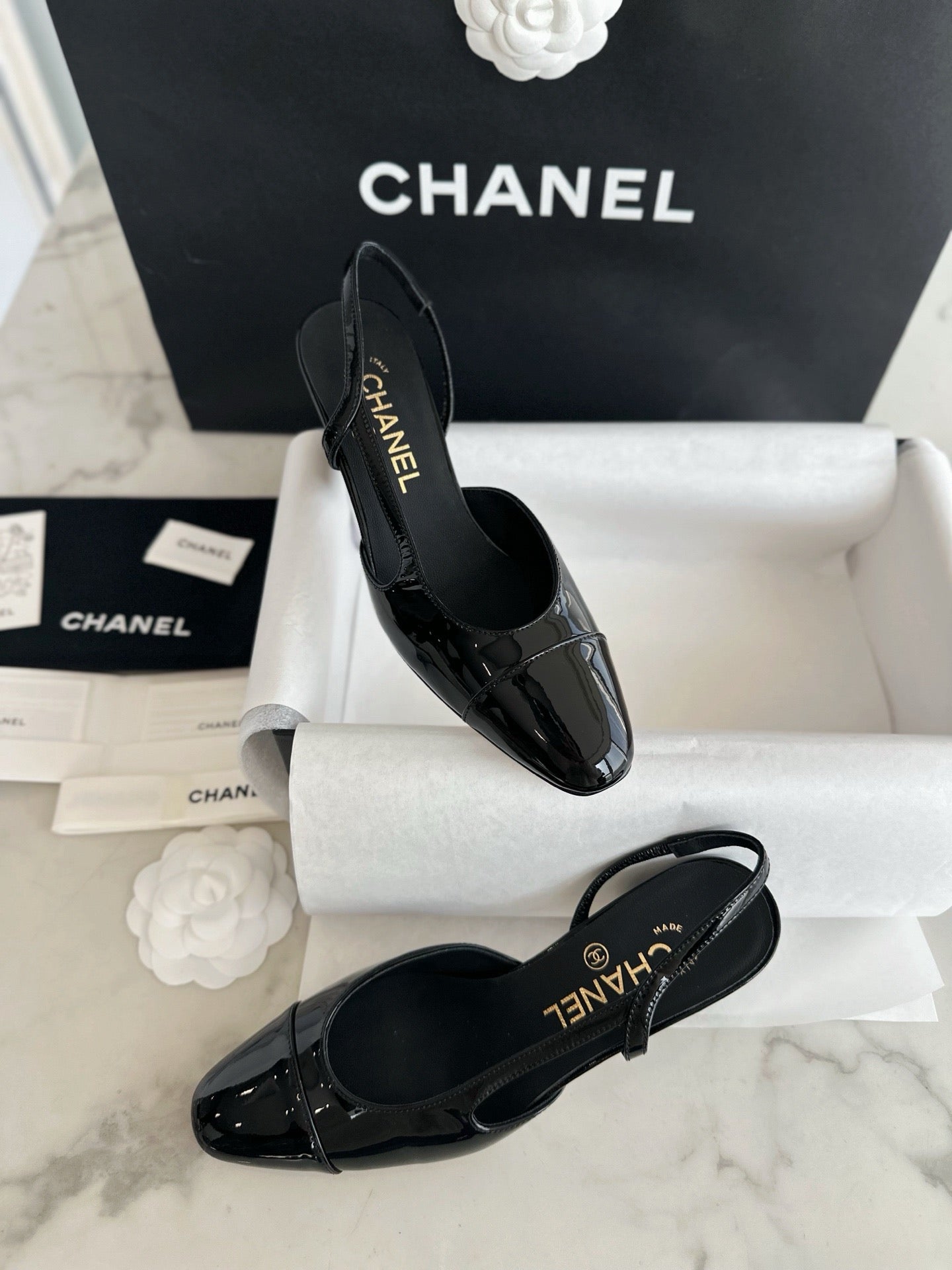 샤넬 페이던트 슬링백 미드힐(Chanel Patent Slingback Mid Heels) - 안정감 있는 우아함