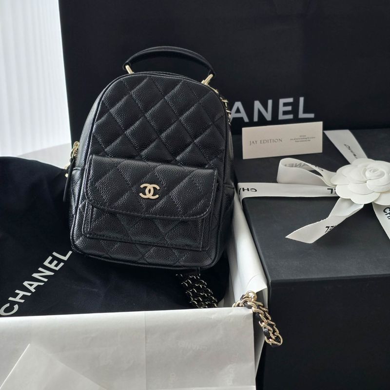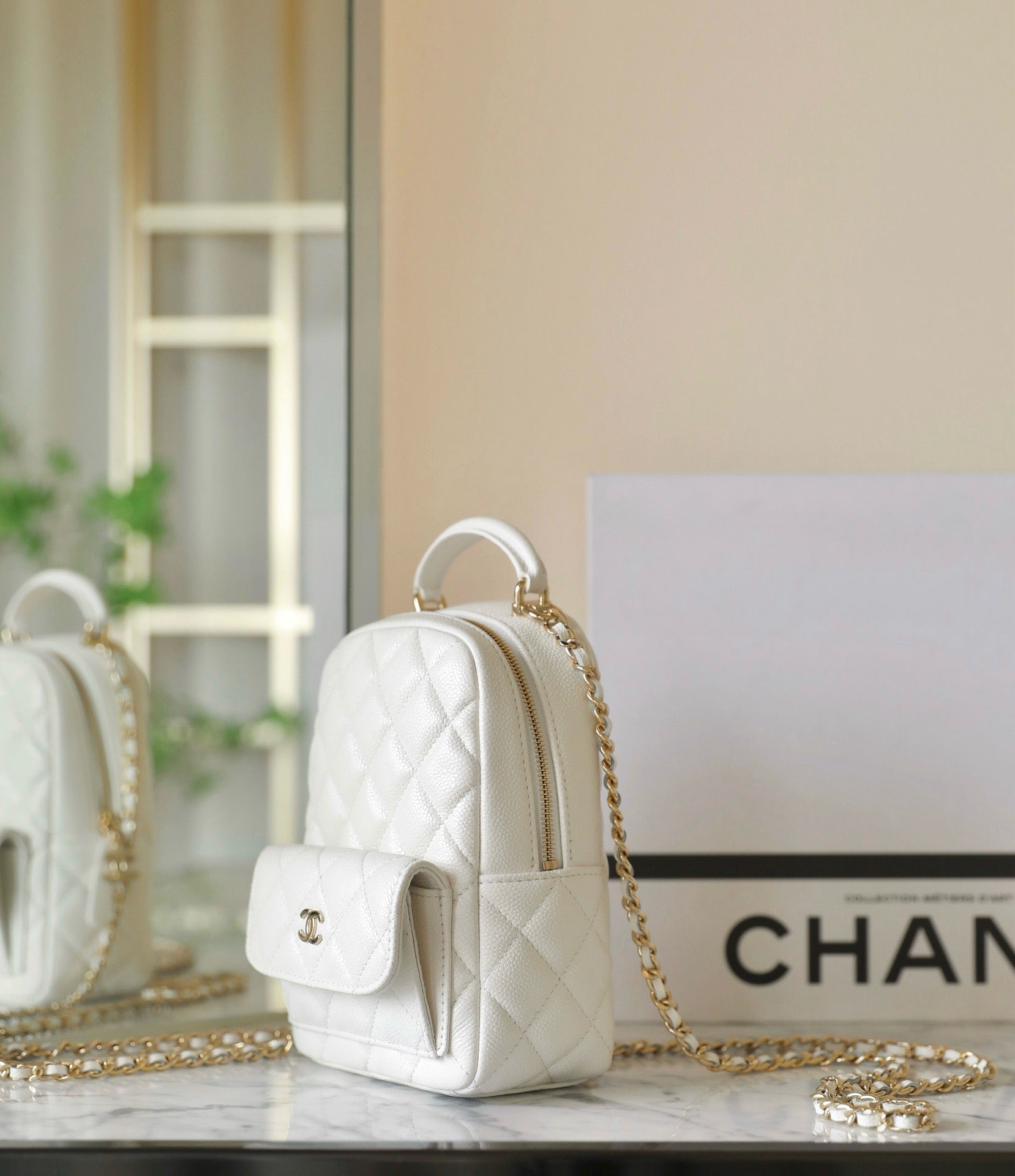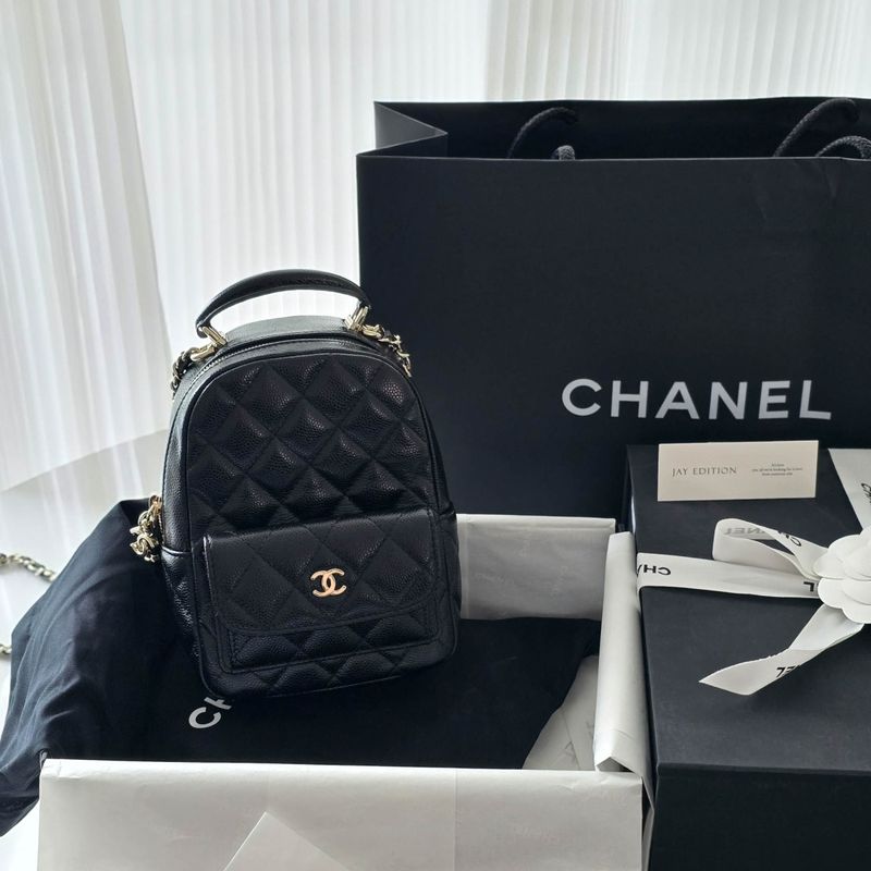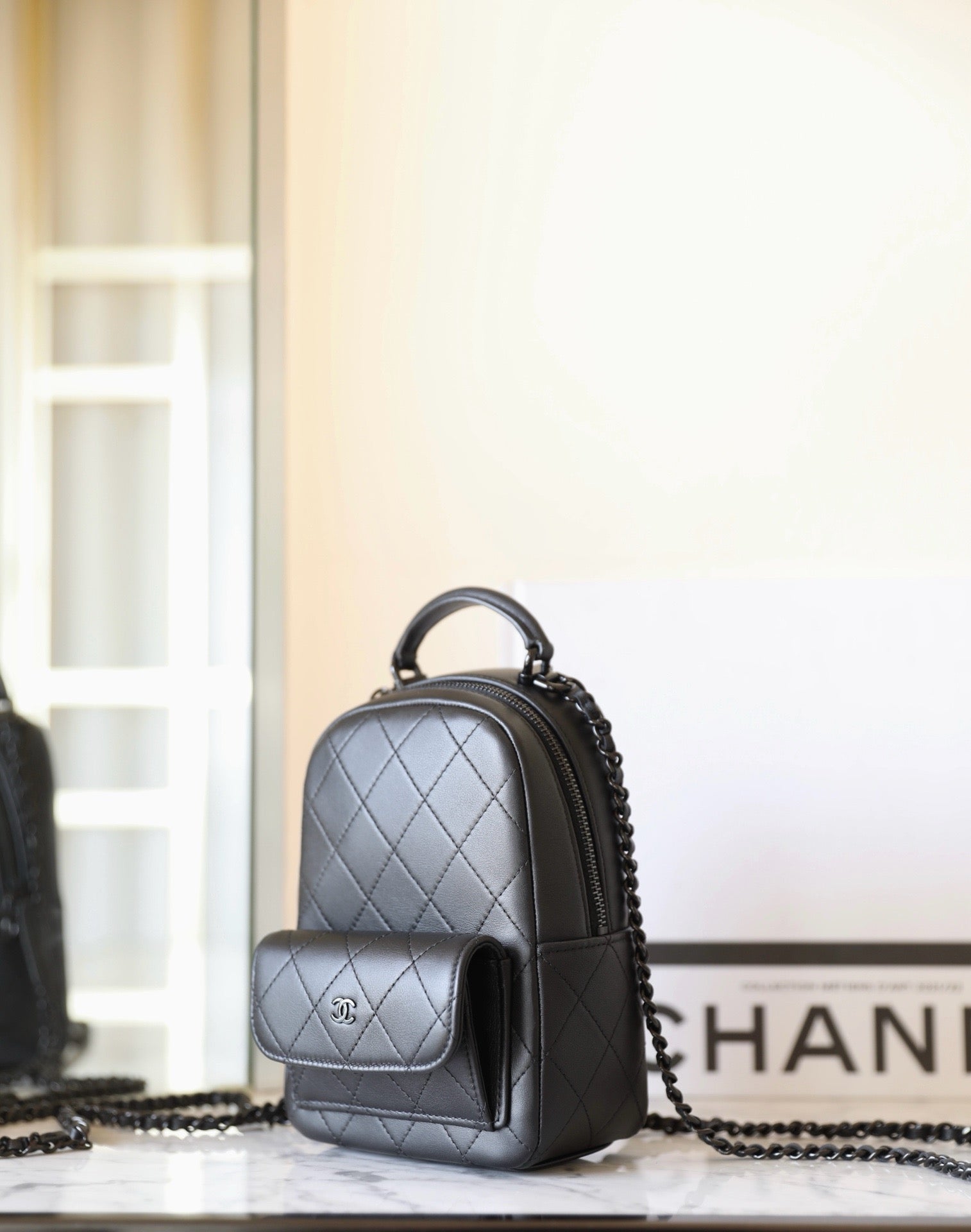 샤넬 24C 크루즈 미니 백팩은 미니멀한 백팩 실루엣에 체인 스트랩과 퀼팅 텍스처, 더블 C 로고가 조화를 이루며 샤넬 특유의 고급스러운 감성을 담아냅니다. 작고 가벼워 데일리 외출용으로 적합하며, 숄더, 백팩, 크로스 연출이 가능한 3WAY 스타일입니다.