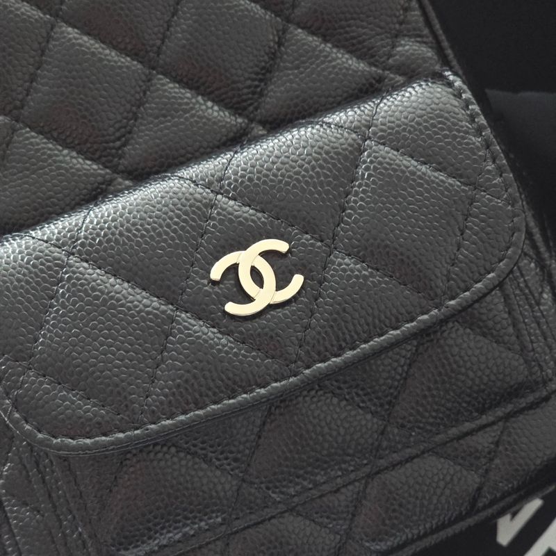 디테일: 퀼팅 텍스처, 더블 C 로고, 체인 & 가죽 혼합 스트랩, 드로스트링 또는 플랩 클로징