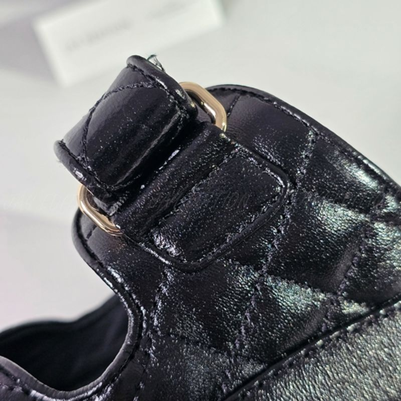 발등의 벨크로 스트랩에는 샤넬의 아이코닉한 더블 C 로고가 장식되어 있어 고급스러운 포인트를 더합니다. 조절 가능한 벨크로 스트랩 덕분에 발에 맞게 착용감을 조절할 수 있습니다.