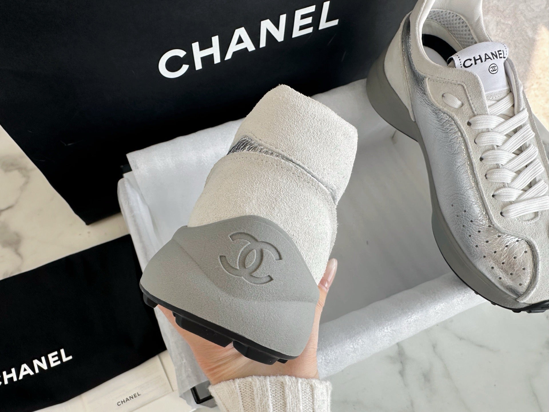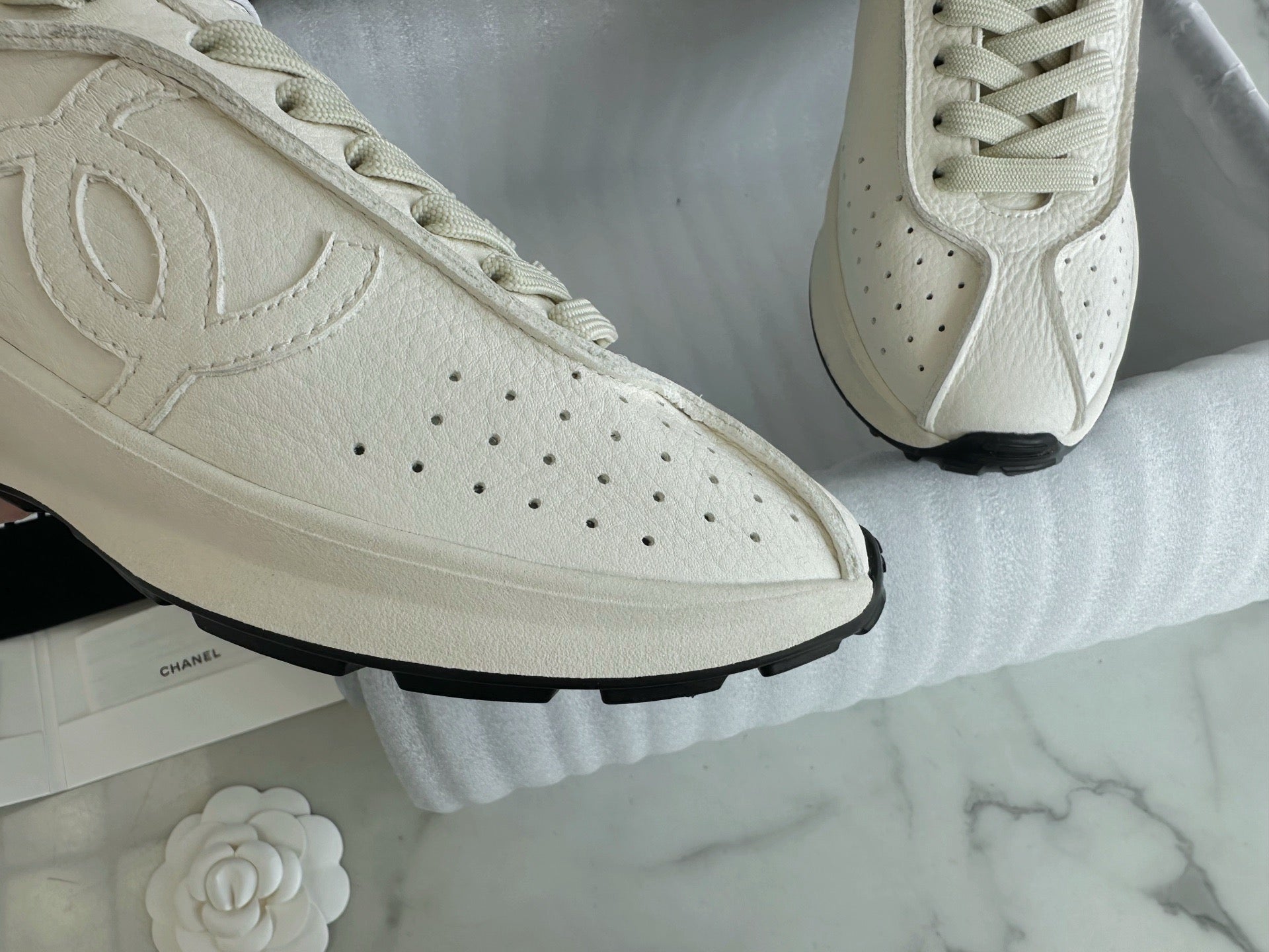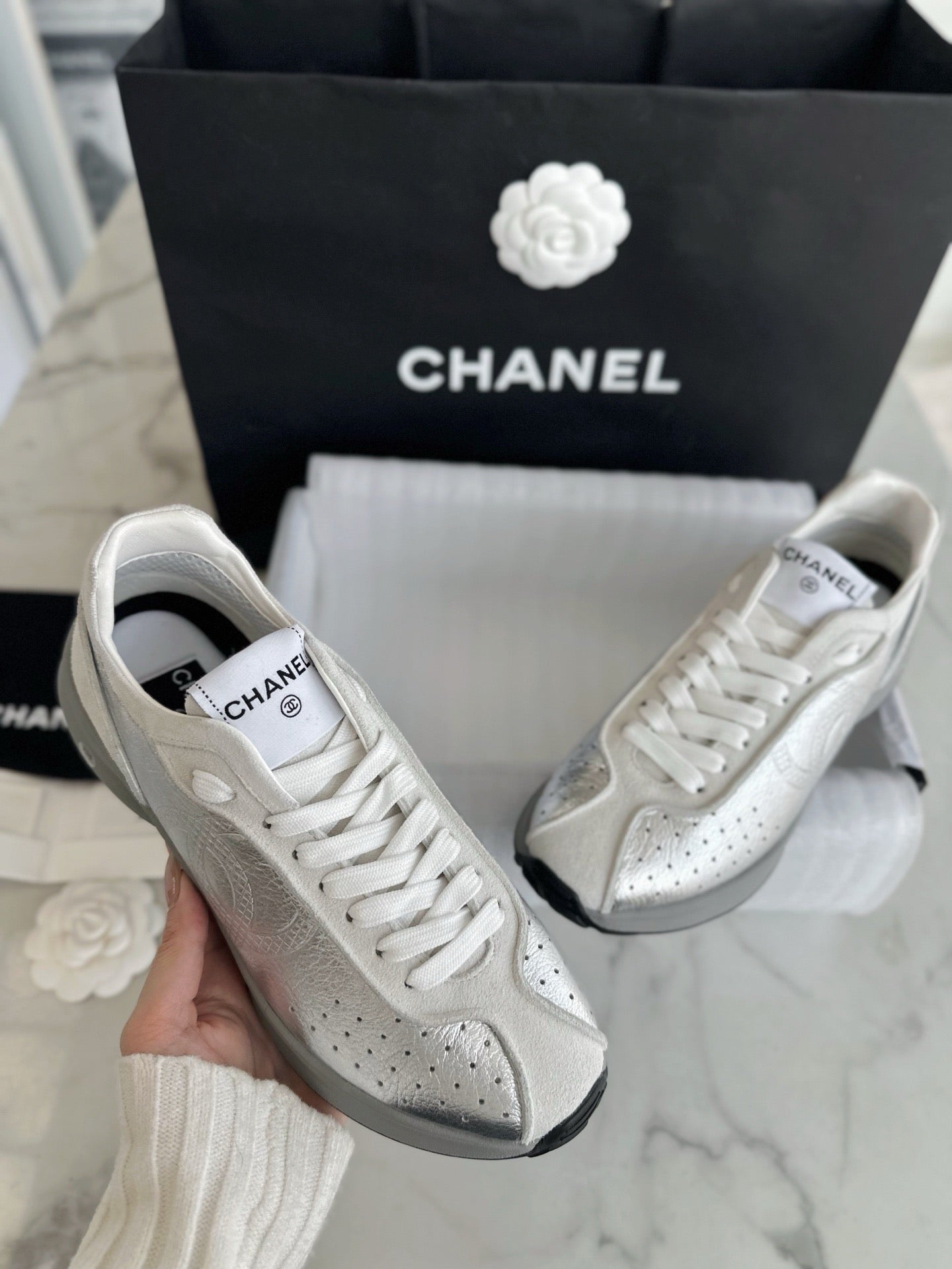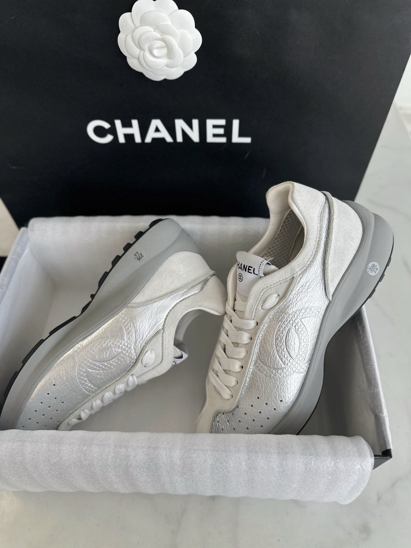 이 스니커즈는 통기성이 뛰어난 텍스타일과 부드러운 가죽 소재가 조화를 이루며, 샤넬 특유의 감각적인 디테일이 더해진 것이 특징입니다. 유려한 곡선의 실루엣과 측면에 새겨진 CC 로고, 컬렉션 전용 색상 배합 등이 독보적인 존재감을 자아냅니다.