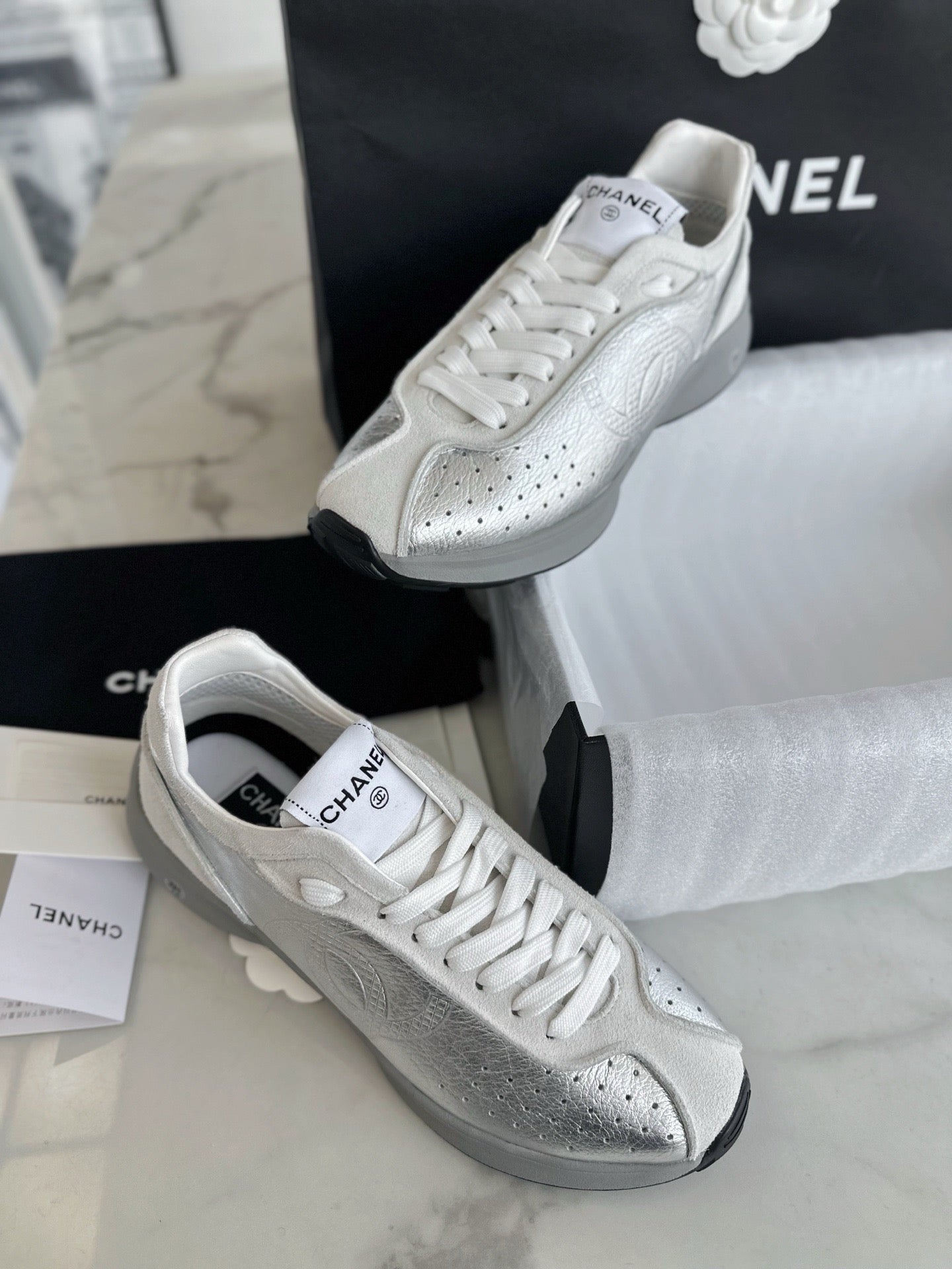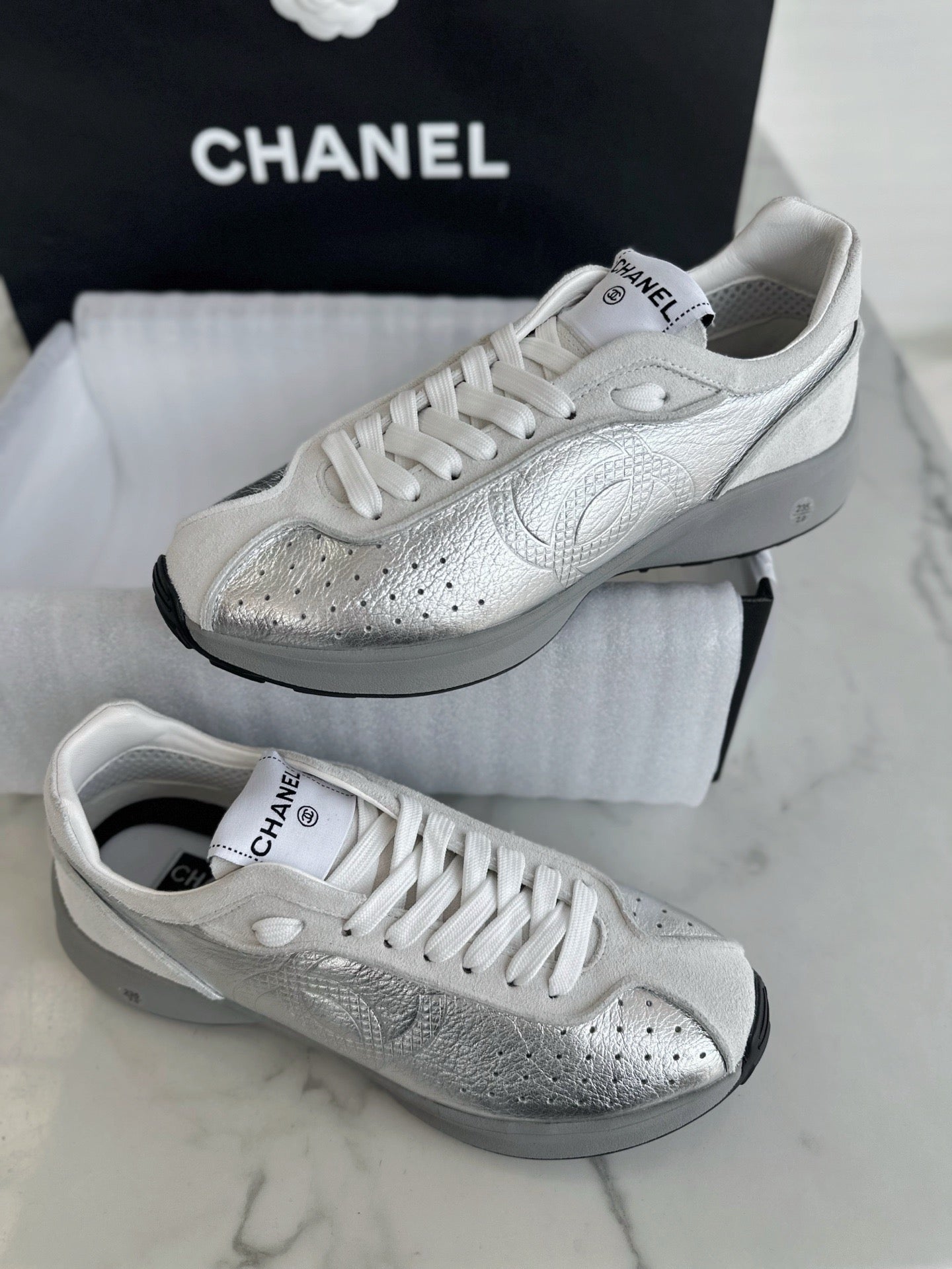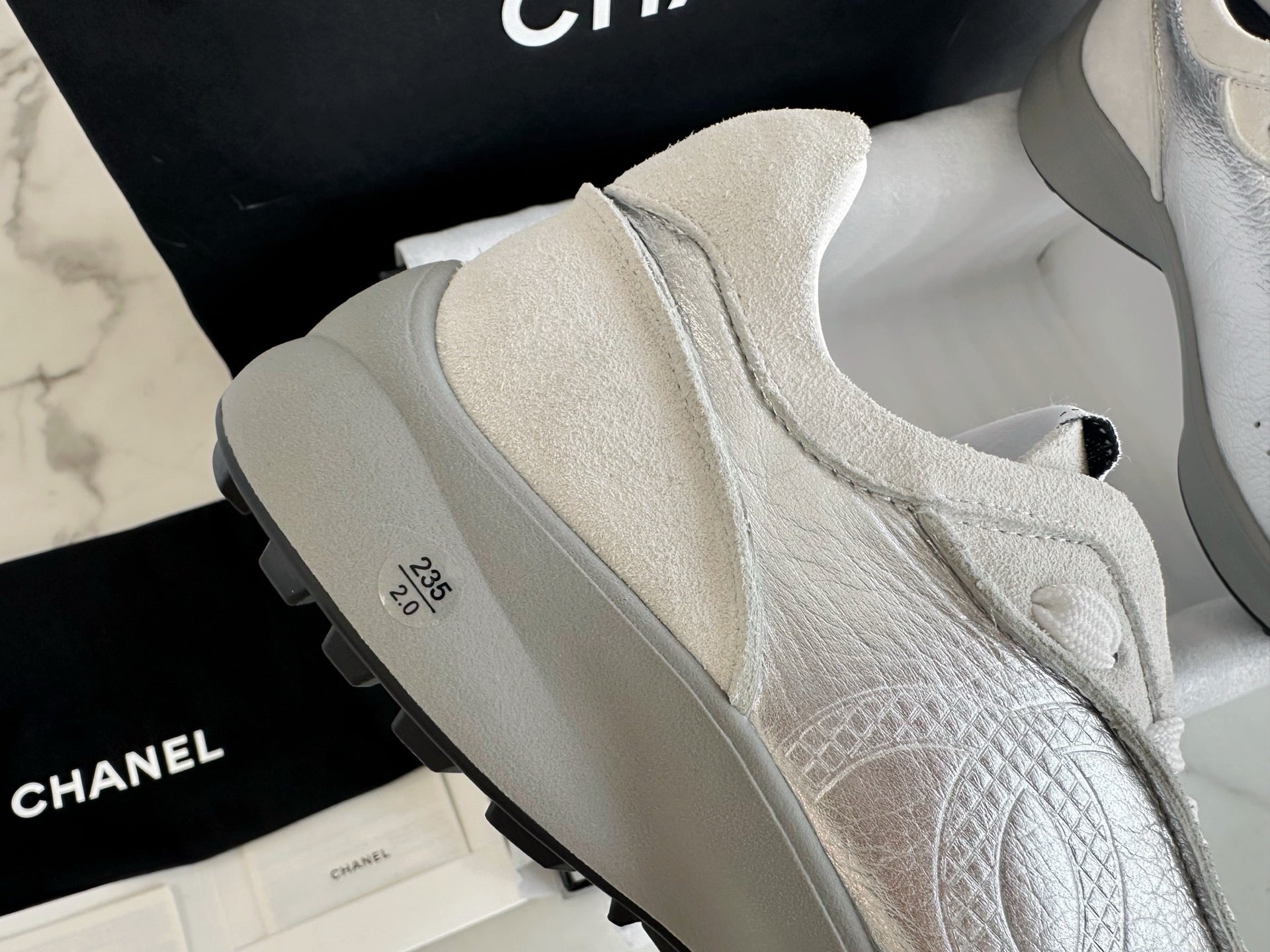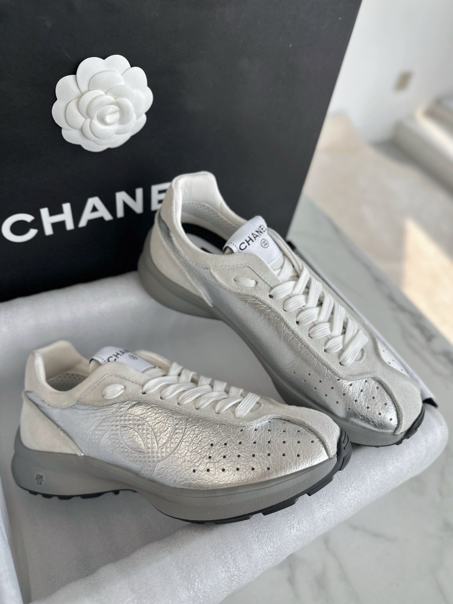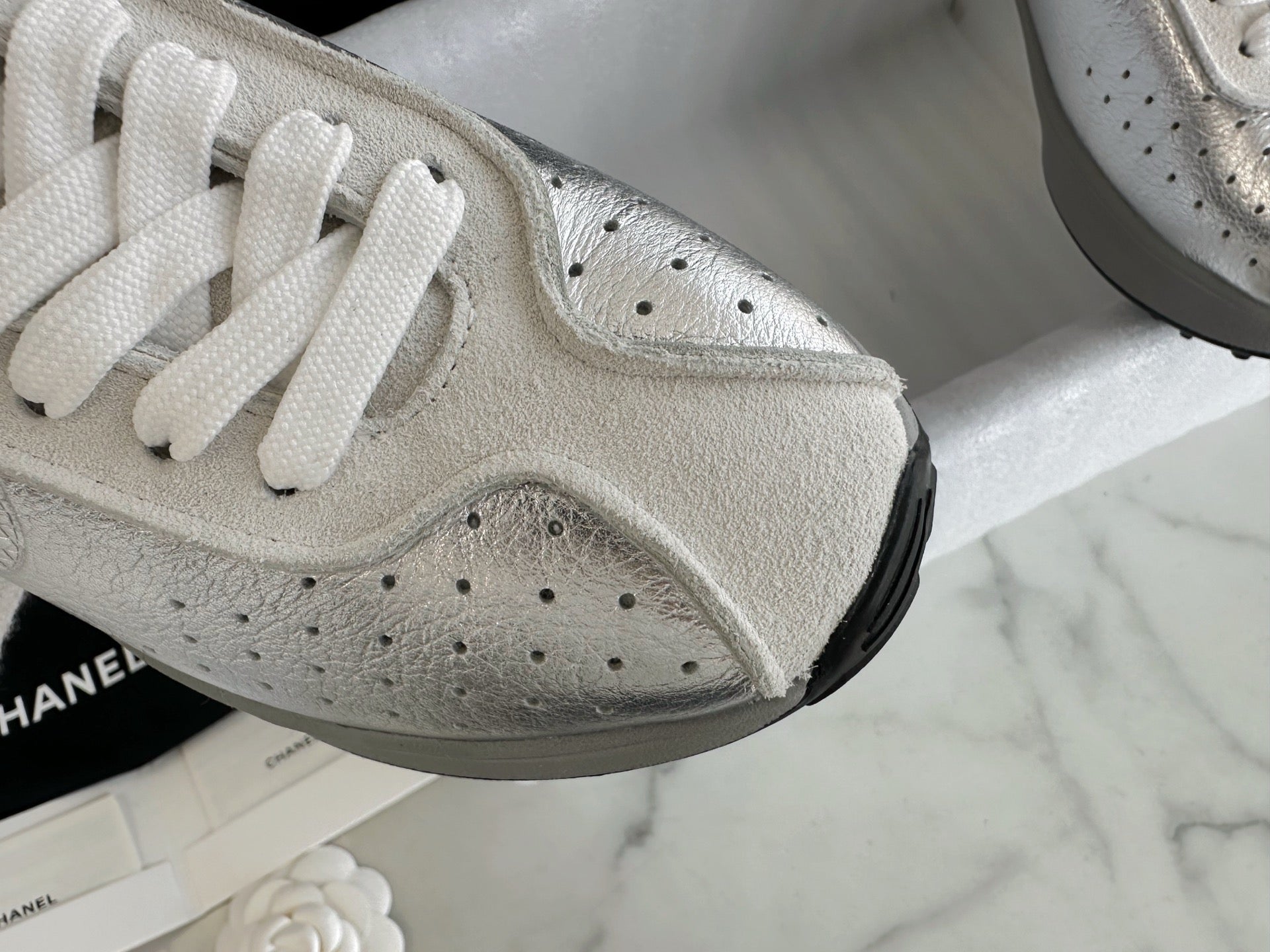이 스니커즈는 통기성이 뛰어난 텍스타일과 부드러운 가죽 소재가 조화를 이루며, 샤넬 특유의 감각적인 디테일이 더해진 것이 특징입니다. 유려한 곡선의 실루엣과 측면에 새겨진 CC 로고, 컬렉션 전용 색상 배합 등이 독보적인 존재감을 자아냅니다.