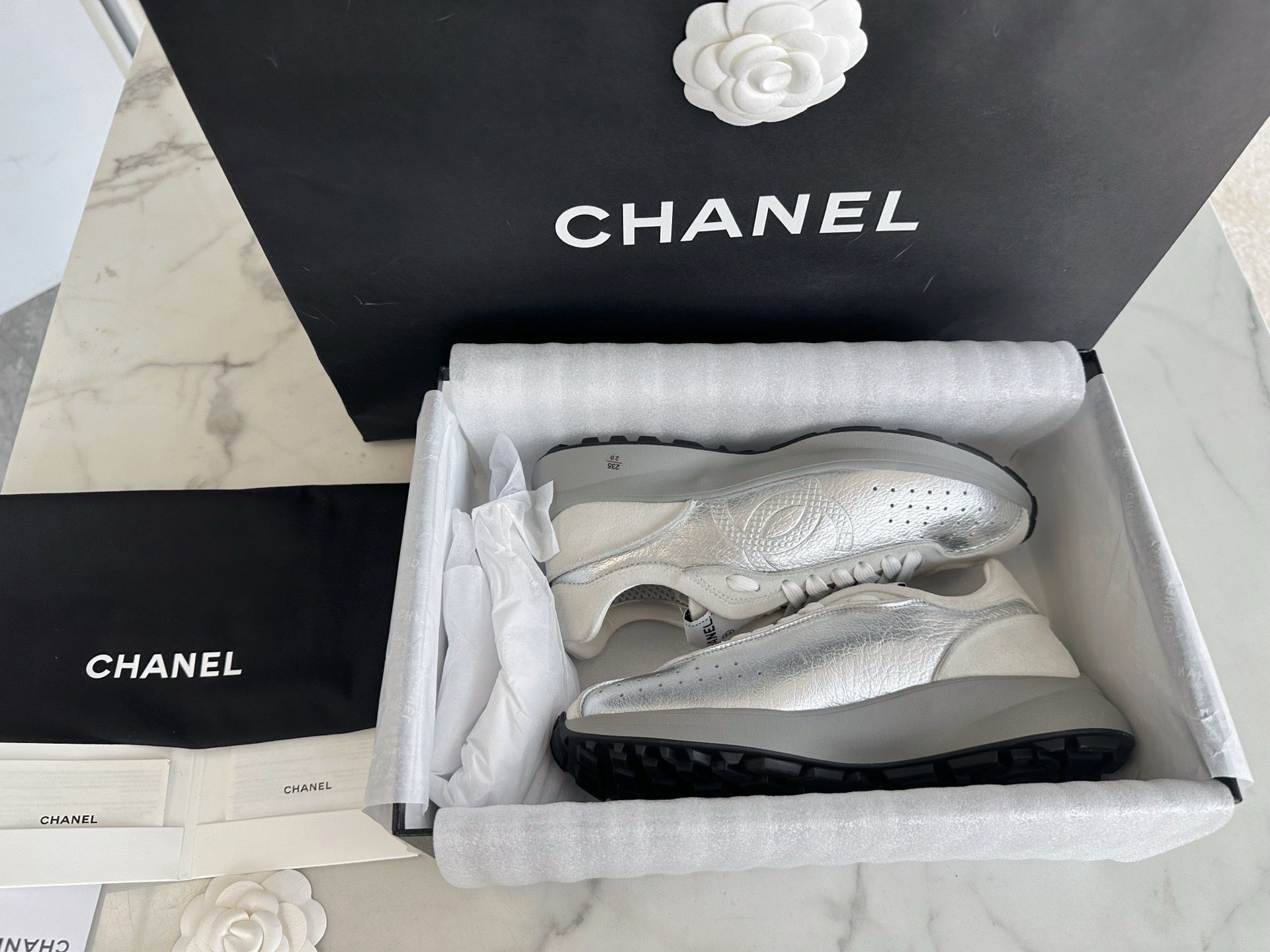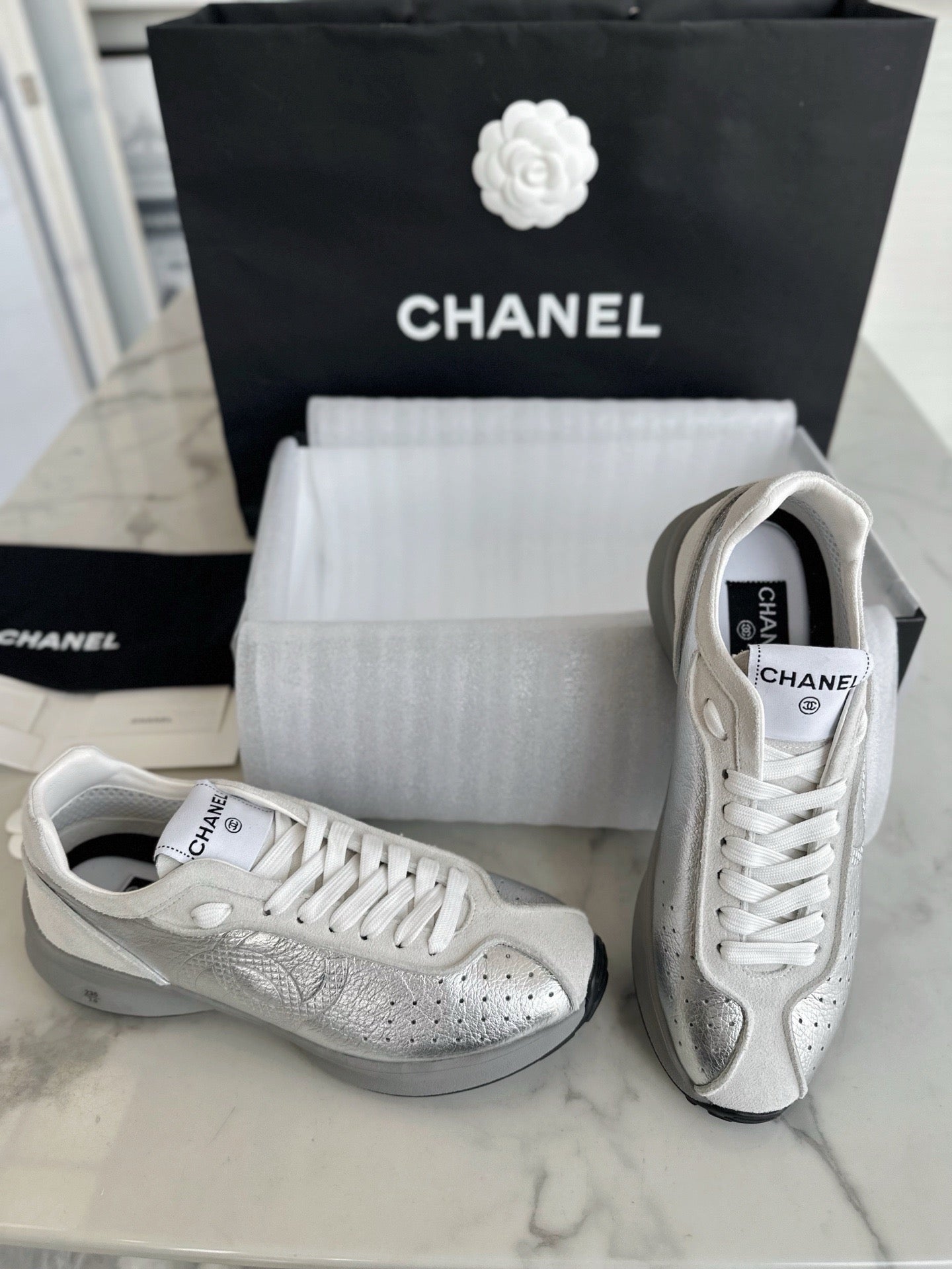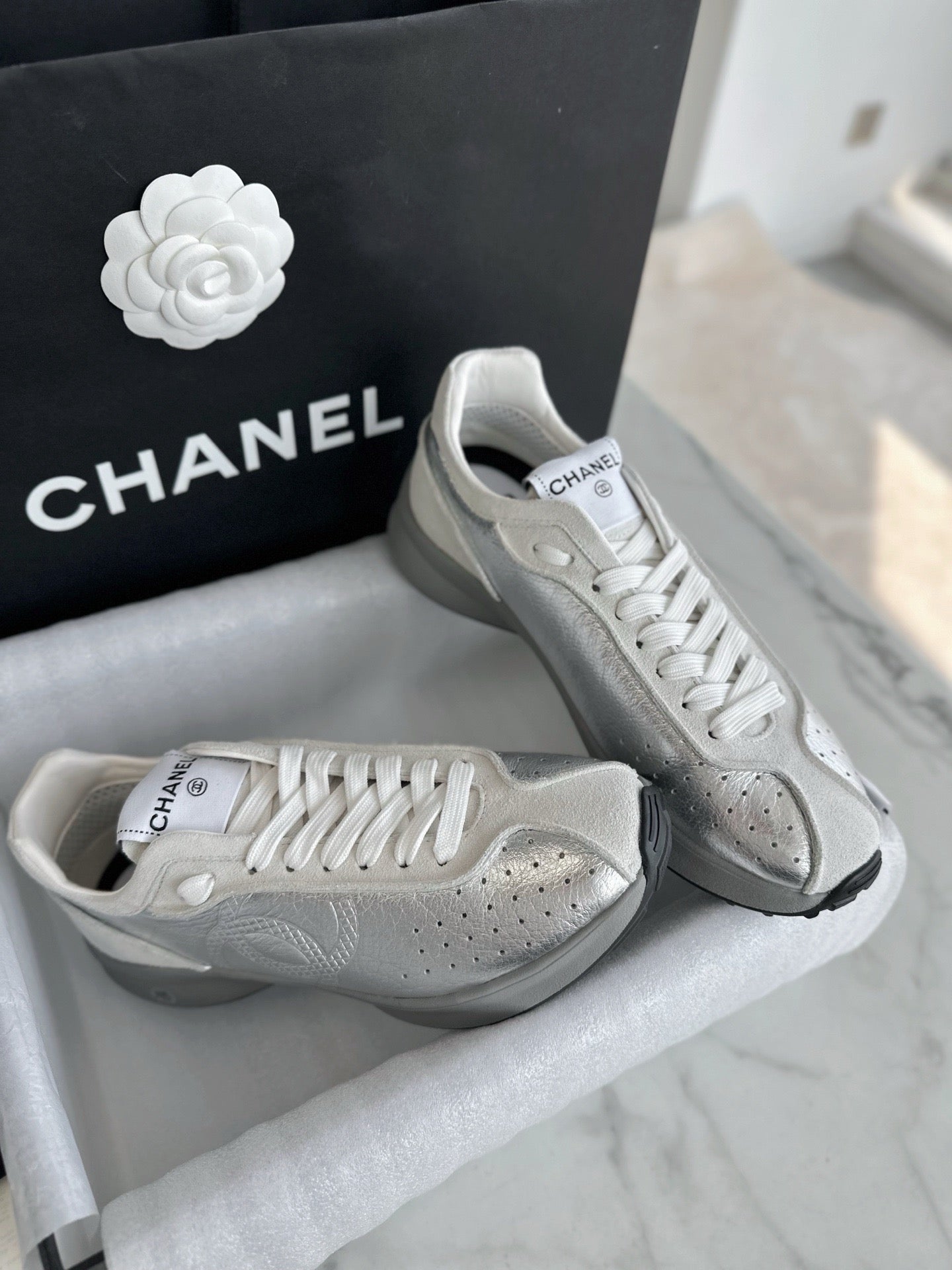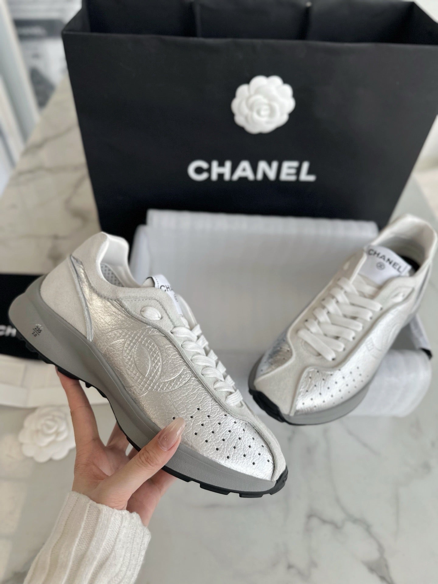 이 스니커즈는 통기성이 뛰어난 텍스타일과 부드러운 가죽 소재가 조화를 이루며, 샤넬 특유의 감각적인 디테일이 더해진 것이 특징입니다. 유려한 곡선의 실루엣과 측면에 새겨진 CC 로고, 컬렉션 전용 색상 배합 등이 독보적인 존재감을 자아냅니다.