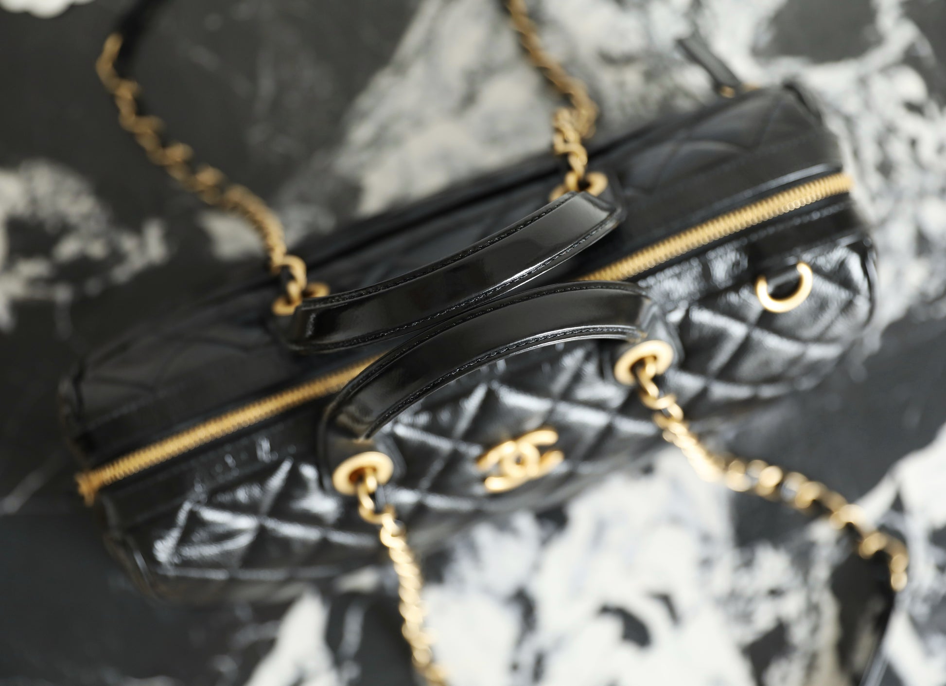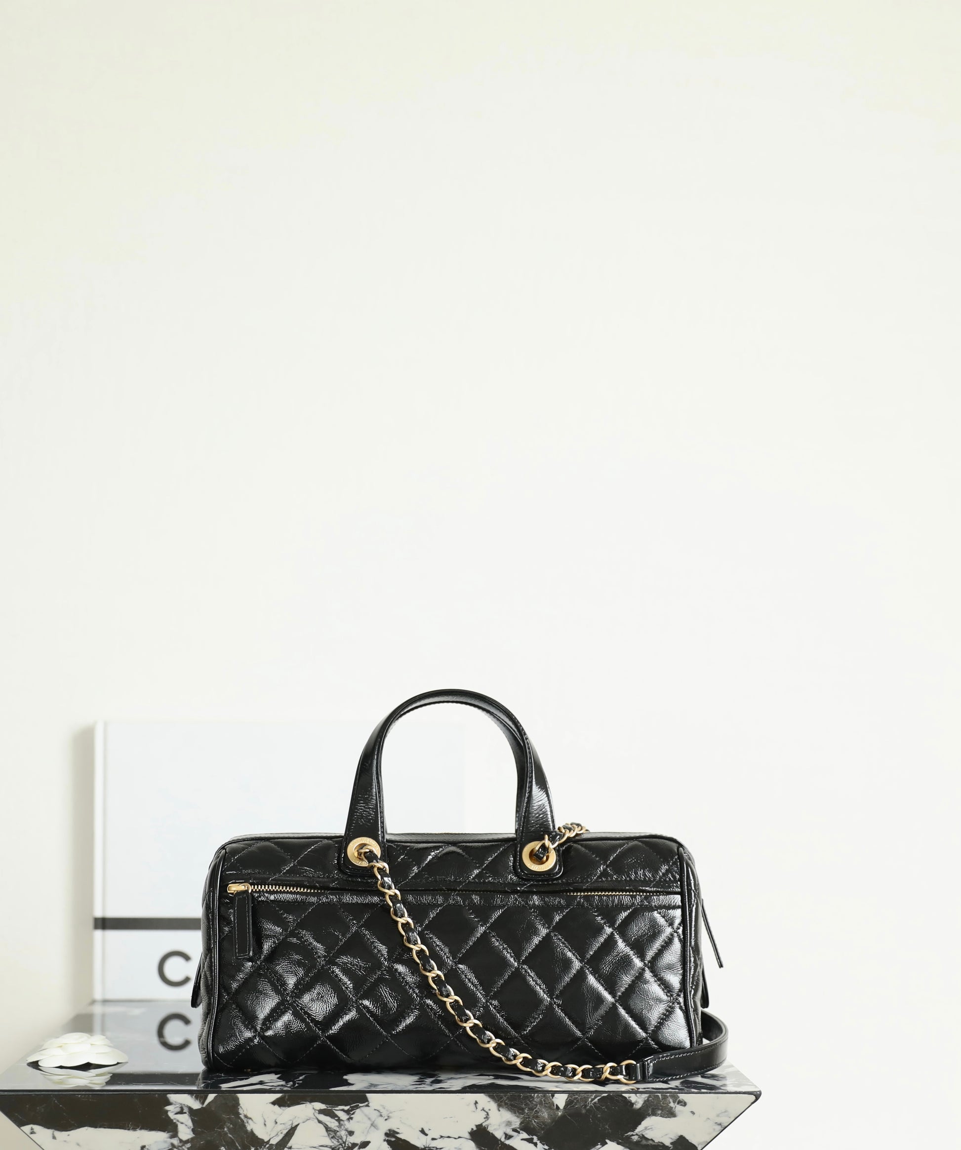 샤넬 25A 페이던트 크럼폴드 볼링백 라지(Chanel 25A Patent Crumpled Bowling Bag Large) - 광택과 텍스처의 예술
