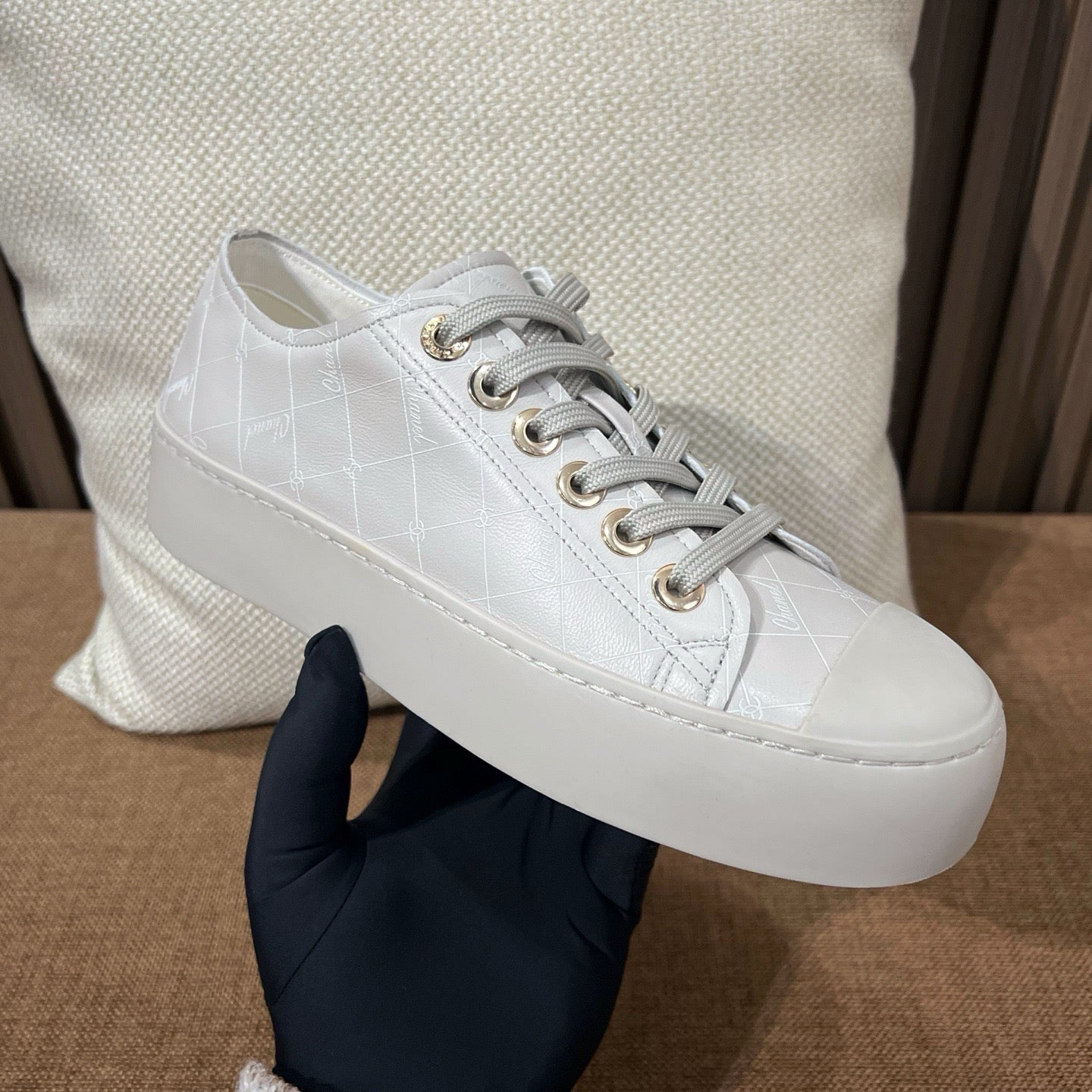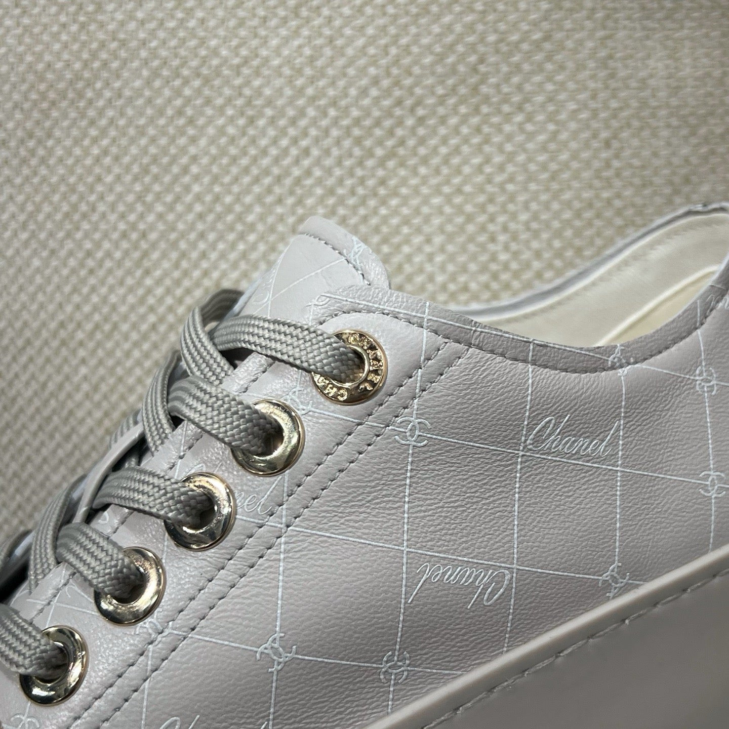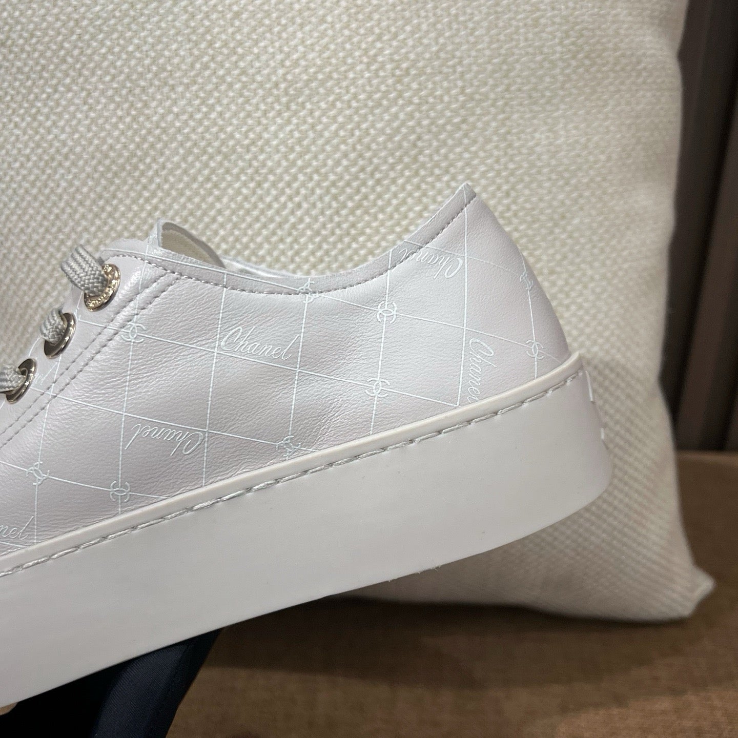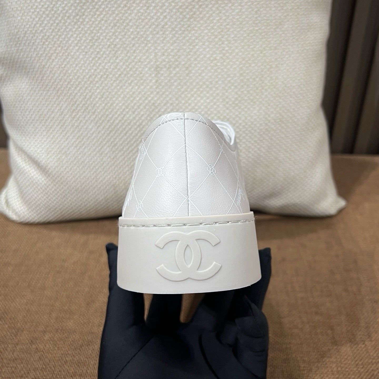 이 스니커즈는 샤넬 특유의 미니멀한 실루엣에 볼드한 플랫폼 솔을 더한 것이 특징이며, 계절감을 반영한 세련된 컬러와 소재 선택이 돋보입니다. 상단에는 CC 로고가 정교하게 장식되어 있으며, 가죽 또는 캔버스 소재로 제작되어 계절에 따라 다양한 무드를 연출할 수 있습니다.