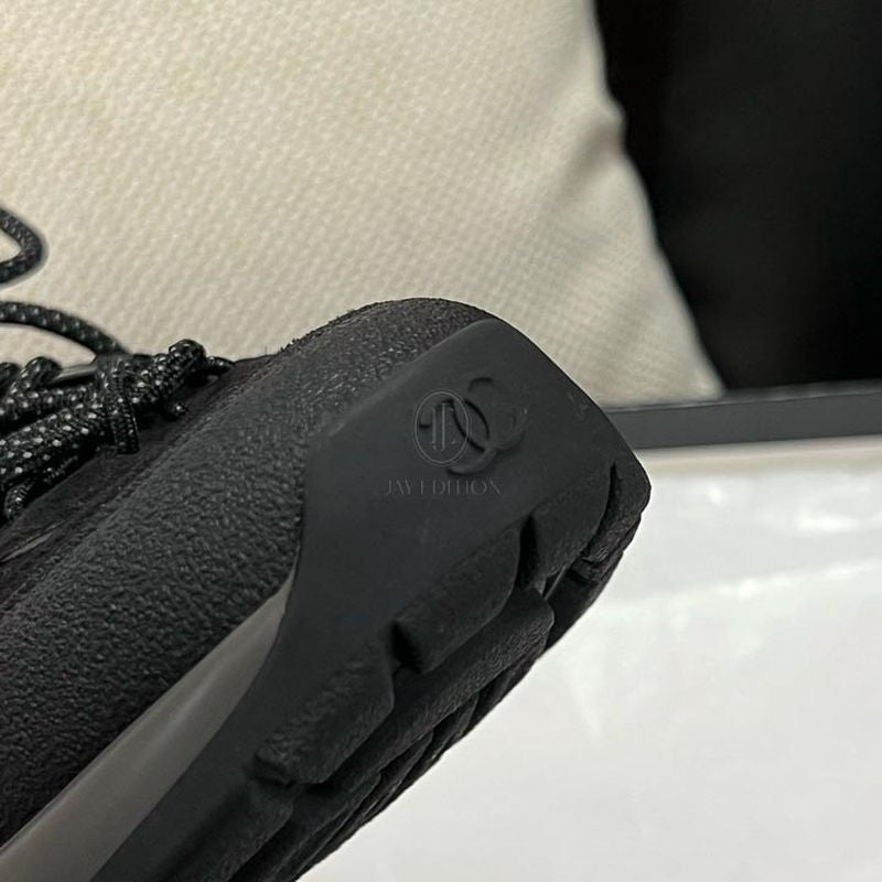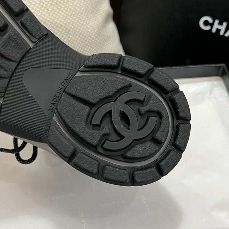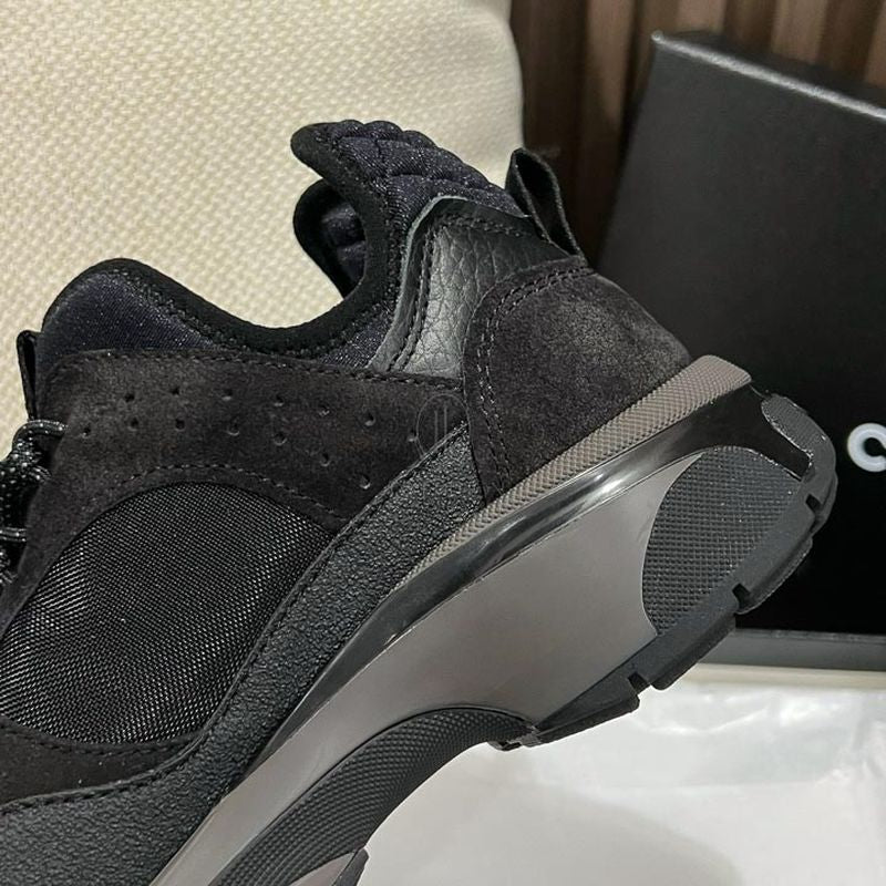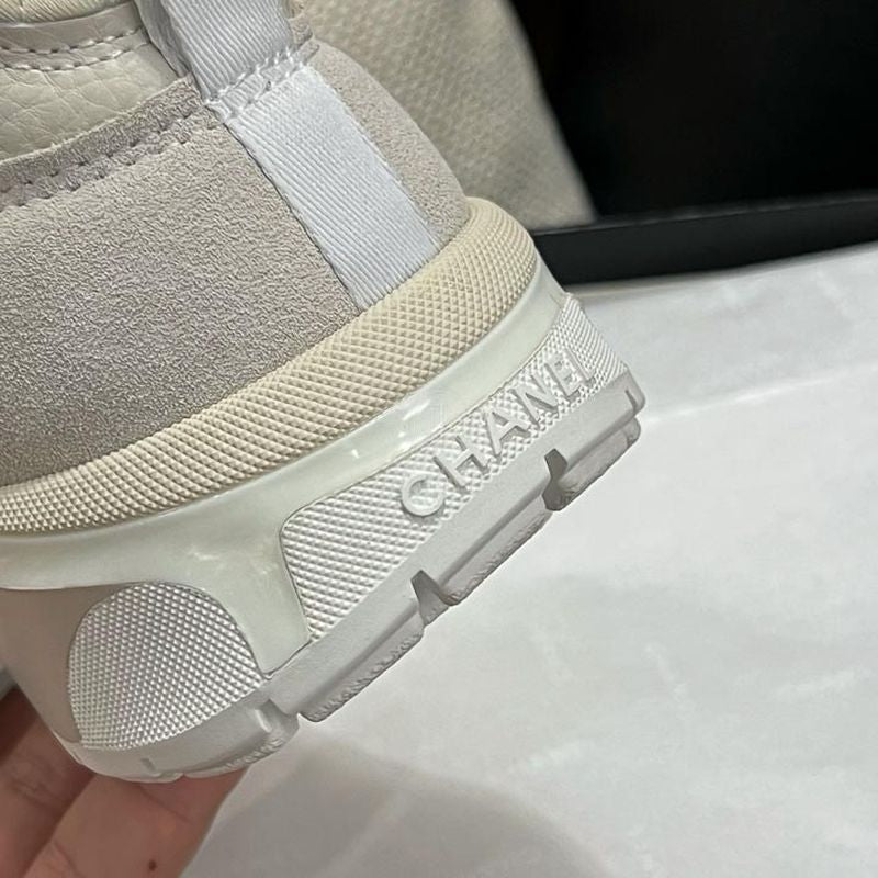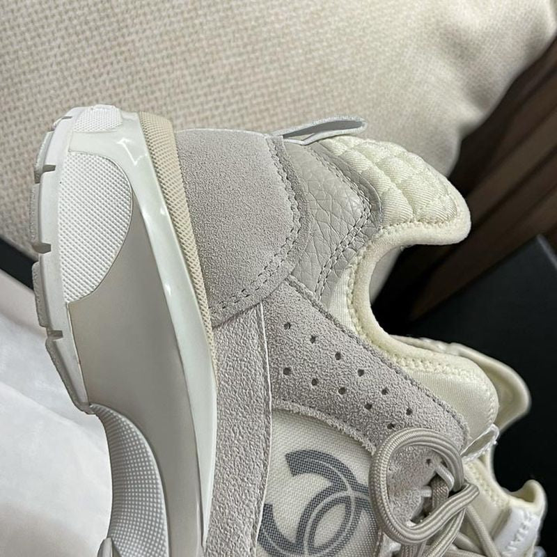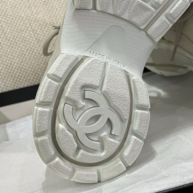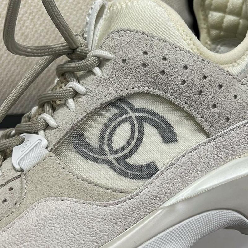 이 스니커즈는 발목을 감싸는 삭스핏(Sock-fit) 구조에 부드러운 스웨이드와 스트레치 니트 소재를 결합해 뛰어난 착용감을 자랑합니다. 측면에는 샤넬의 시그니처인 더블 C 로고가 엠보싱 처리되어 브랜드의 정체성을 고급스럽게 강조하며, 전체적으로 유려하고 날렵한 라인이 시선을 끌어당깁니다.