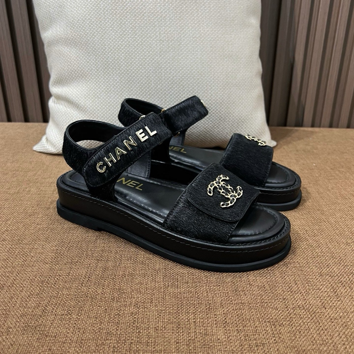 이 샌들은 샤넬을 대표하는 CC 로고가 스트랩 또는 발등 중앙에 배치되어 있어, 한눈에 브랜드 아이덴티티를 드러냅니다. 전체적으로는 미니멀한 디자인을 기반으로 하되, 소재와 디테일을 통해 고급스러움을 극대화한 것이 특징입니다. 플랫형, 뮬형, 힐형 등 다양한 디자인으로 출시되어 스타일과 취향에 따라 선택할 수 있습니다.