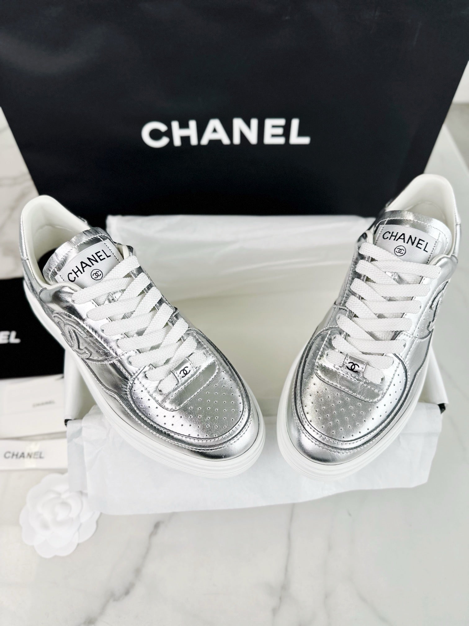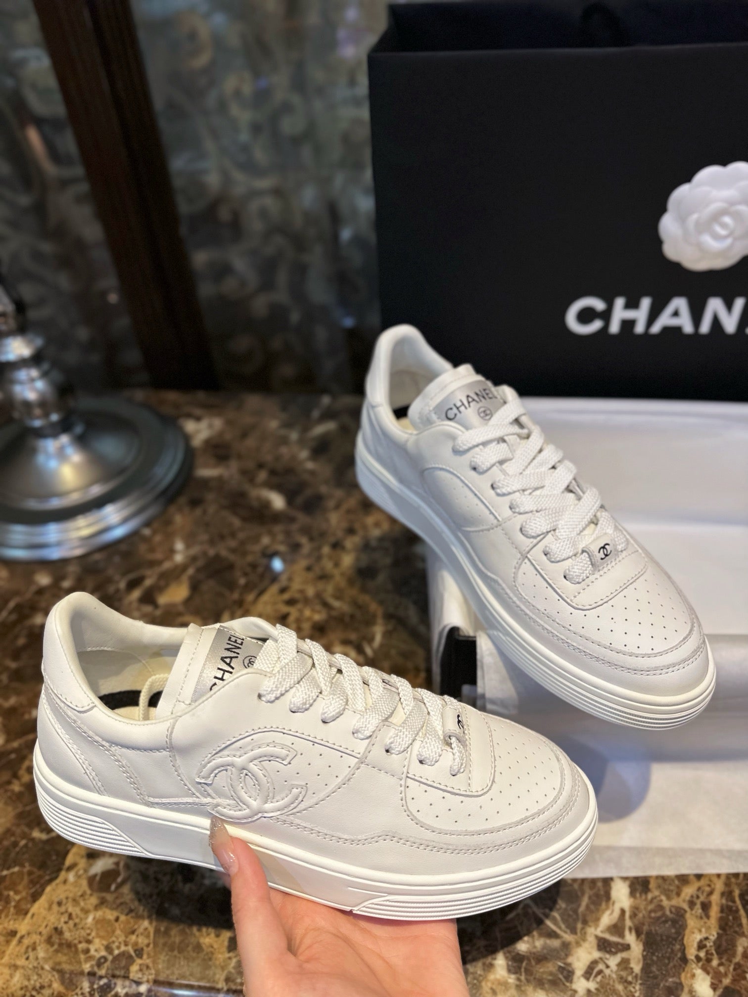 클래식한 에어포스 1의 실루엣을 기반으로 하되, 측면이나 힐탭에는 CC 로고가 자수나 자개, 스터드 형태로 삽입되며, 일부 디자인은 화이트 레더를 중심으로 블랙 앤 화이트의 클래식한 샤넬 컬러웨이를 따릅니다. 고무 아웃솔은 전통적인 농구화 스타일을 유지하면서도 부드러운 쿠셔닝을 제공합니다.