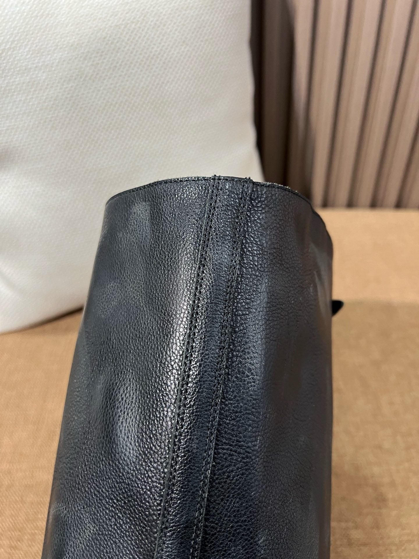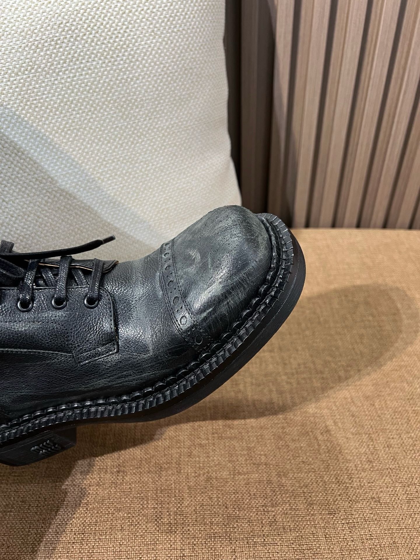 미우미우 가죽 부츠(Miu Miu Leather Boots)는 이탈리아 명품 브랜드 미우미우의 감각적인 디자인과 고급 소재가 어우러진 프리미엄 슈즈입니다. 클래식한 실루엣과 현대적인 디테일이 조화를 이루며, 일상부터 특별한 자리까지 다양한 스타일링에 완벽하게 어울리는 아이템입니다.