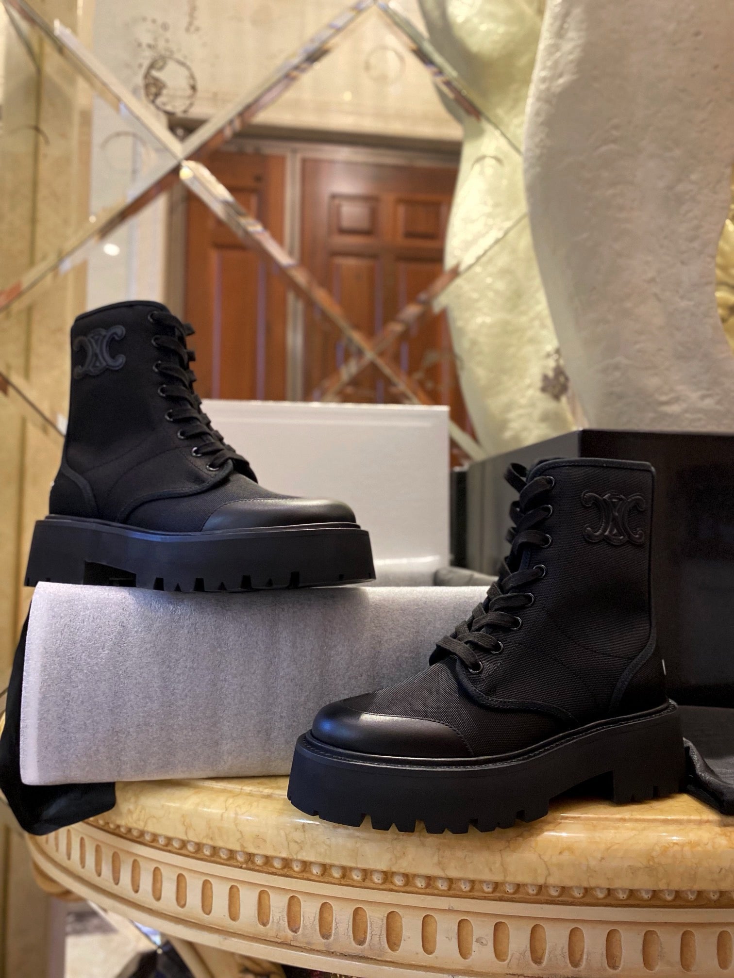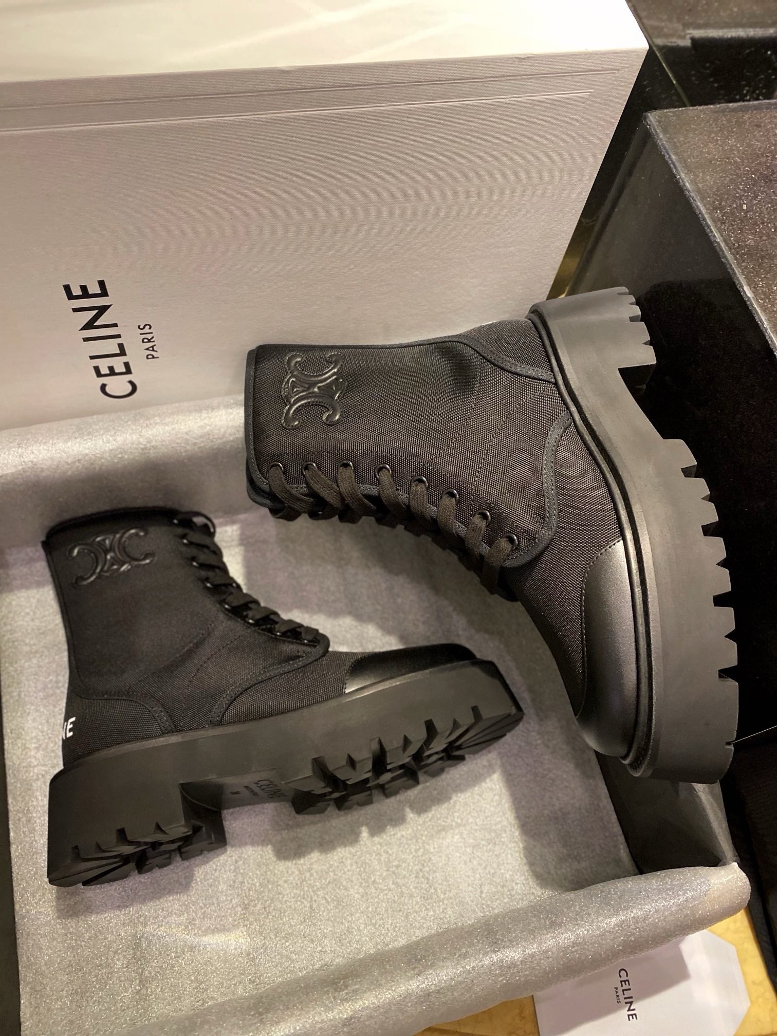 셀린느 나일론 벌키 레이스업 부츠(CELINE Nylon Bulky Lace-up Boots) - 실용적이면서도 감각적인 스타일링