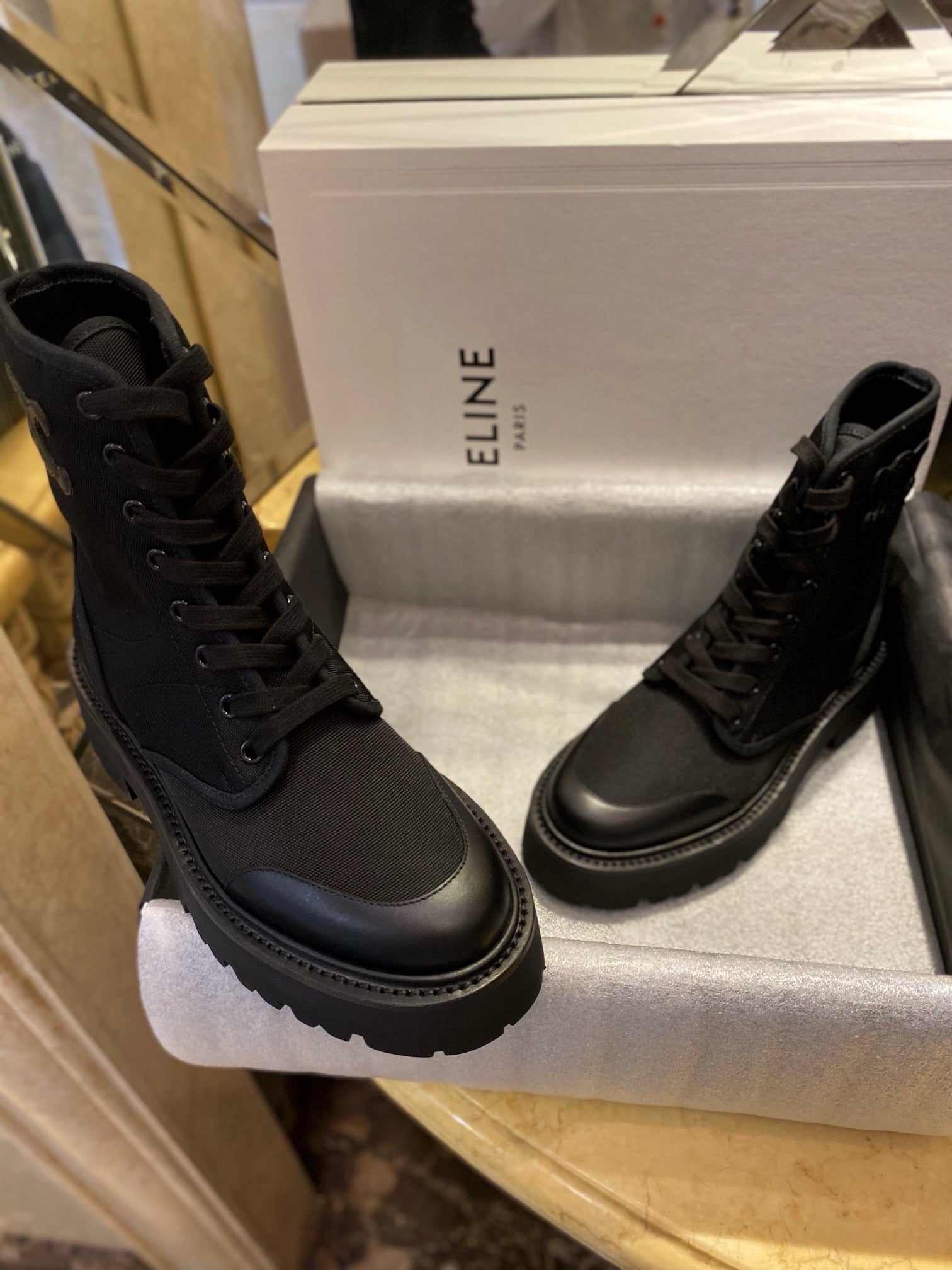 셀린느 나일론 벌키 레이스업 부츠