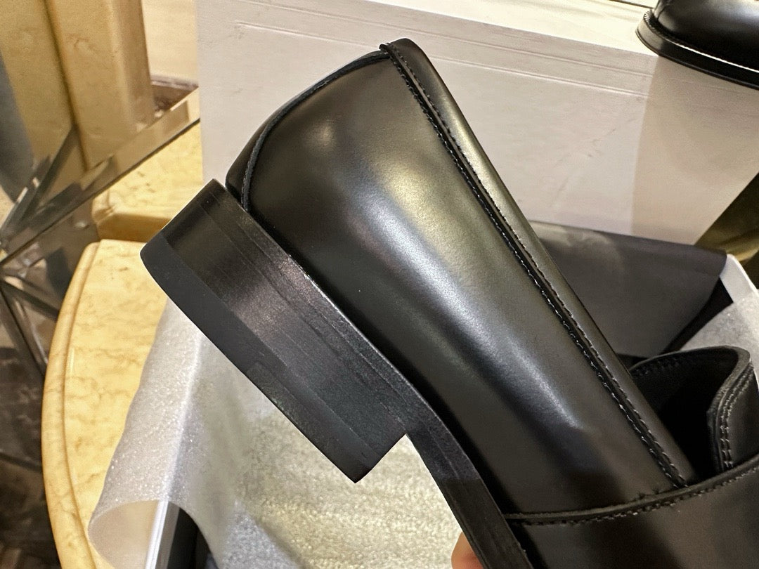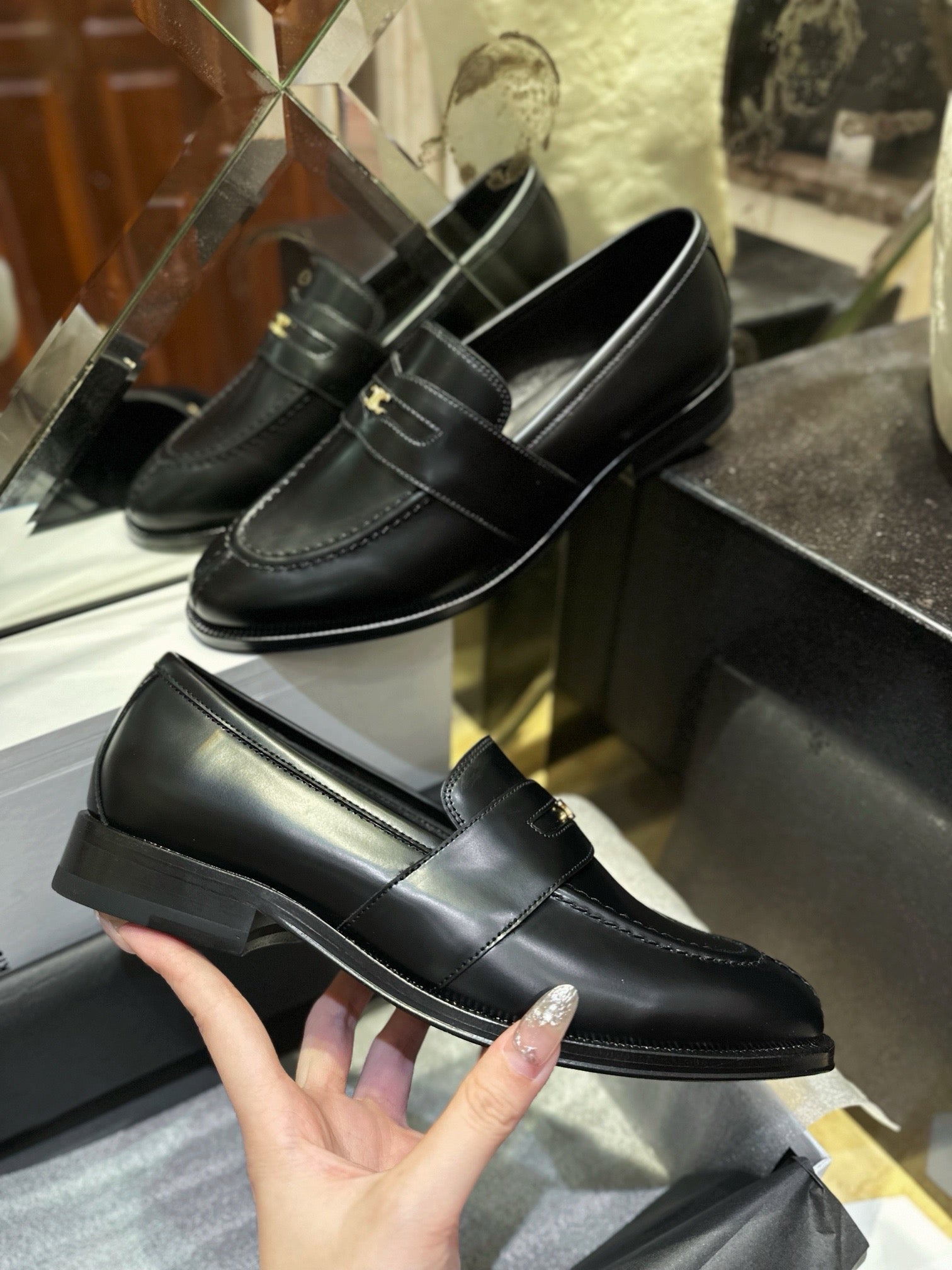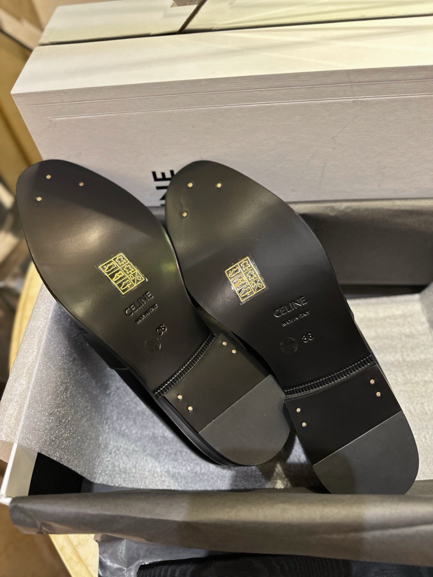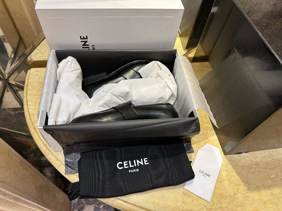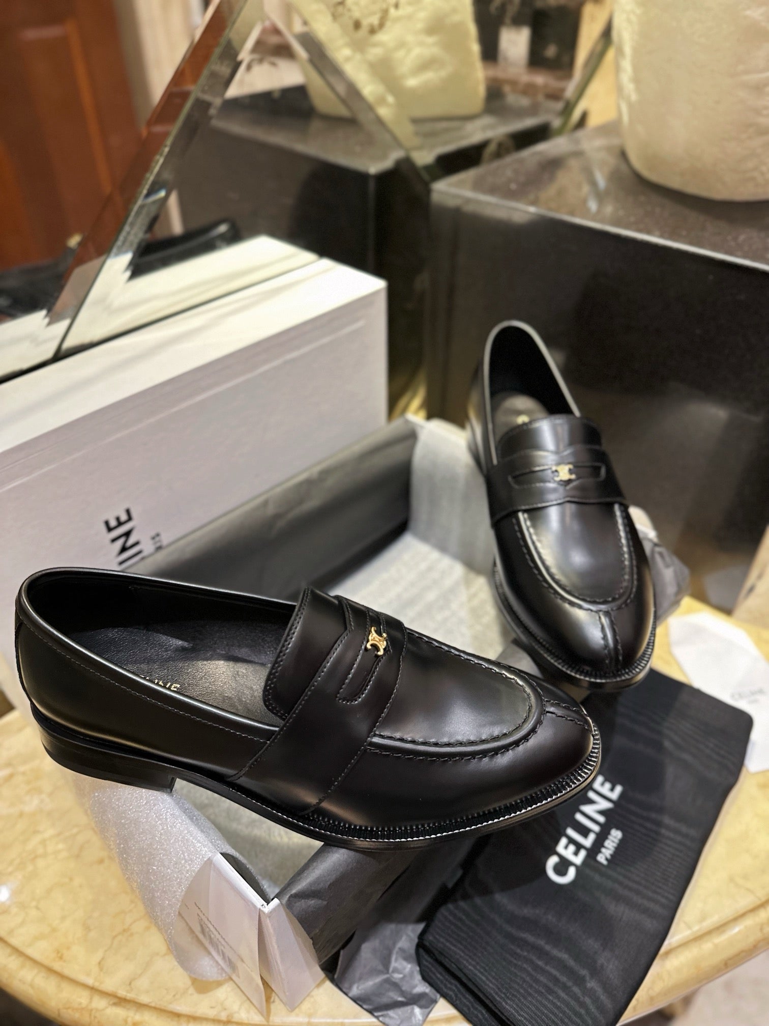트리옹프(Triomphe) 로고가 로퍼의 메탈 하드웨어로 세련되게 장식되어 있으며, 셀린느 브랜드 고유의 심플하면서도 강한 아이덴티티를 담고 있습니다.