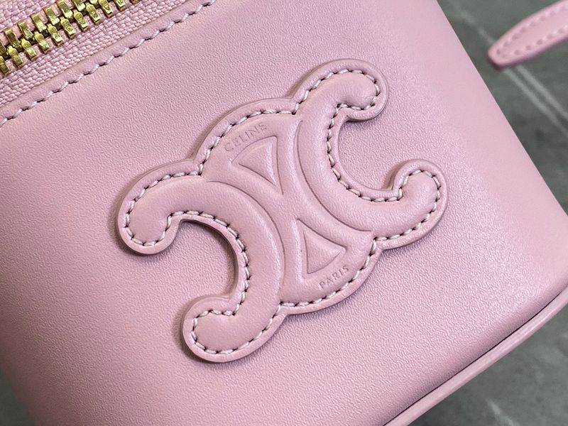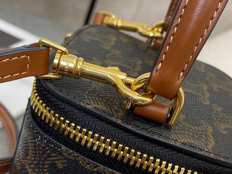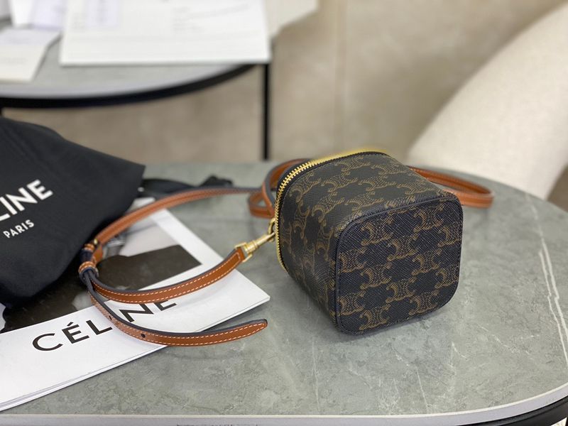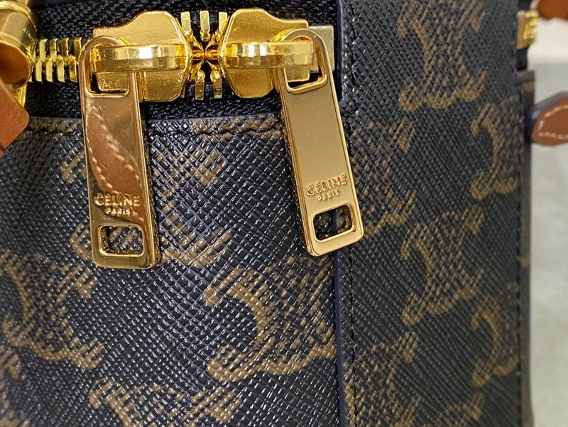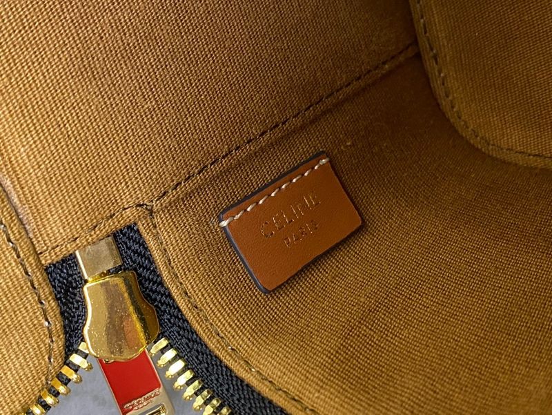 단단한 구조의 박스형 실루엣에 고급스러운 송아지 가죽 소재가 적용되었으며, 상단 지퍼 클로저와 미니 탑 핸들이 클래식한 감성을 더합니다. 전면에는 셀린느의 음각 로고 또는 골드 톤 엠블럼이 포인트로 들어가 고급스러운 분위기를 자아냅니다.