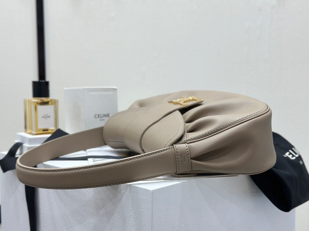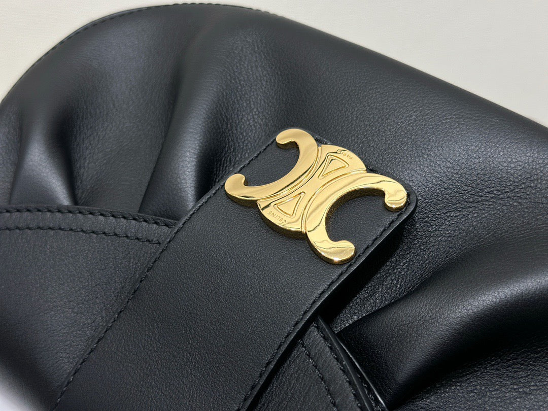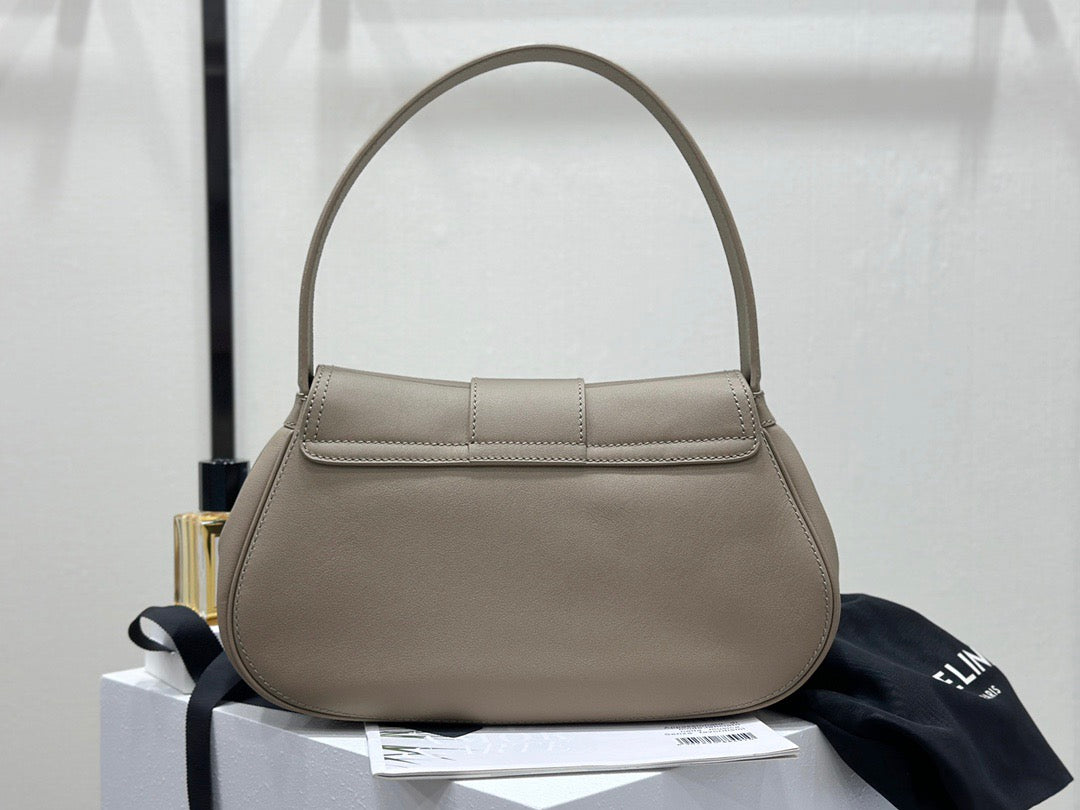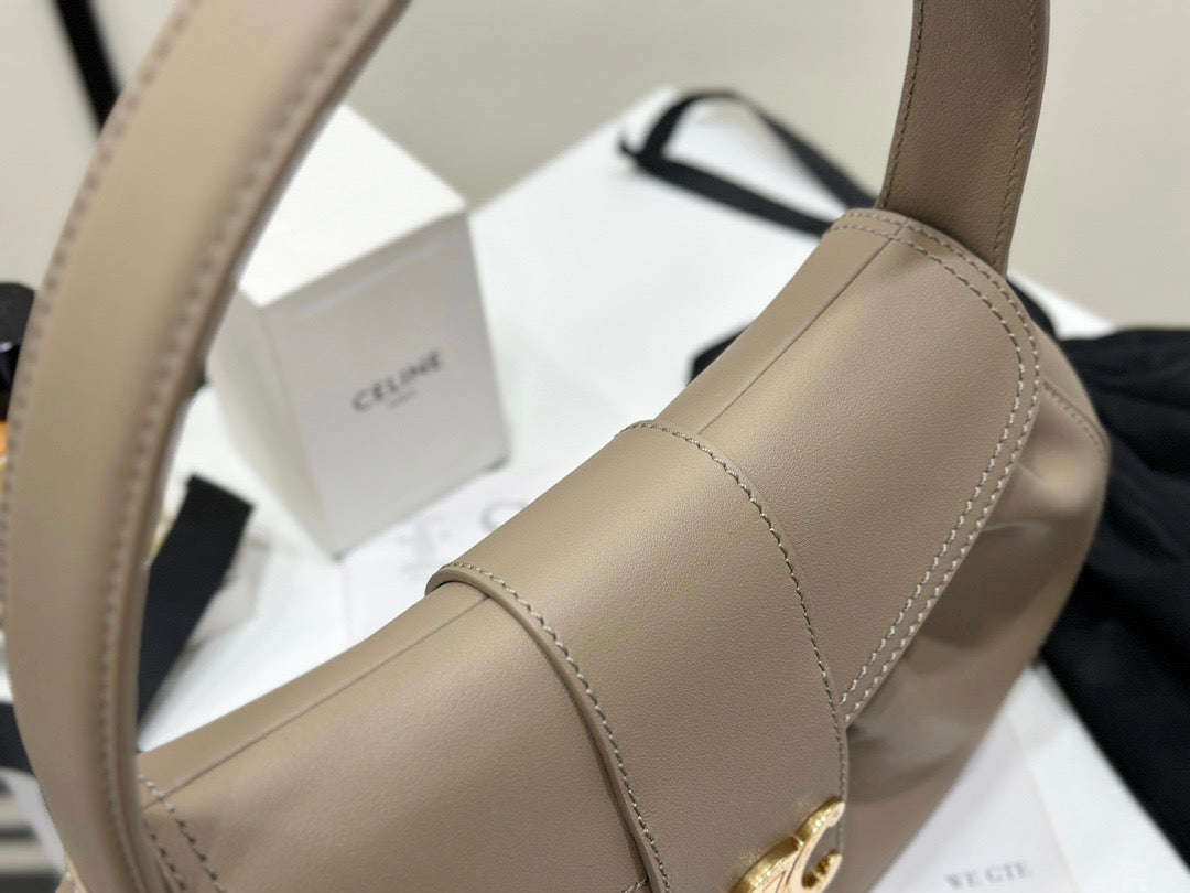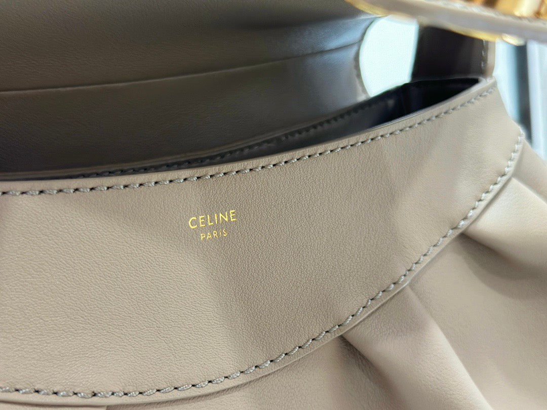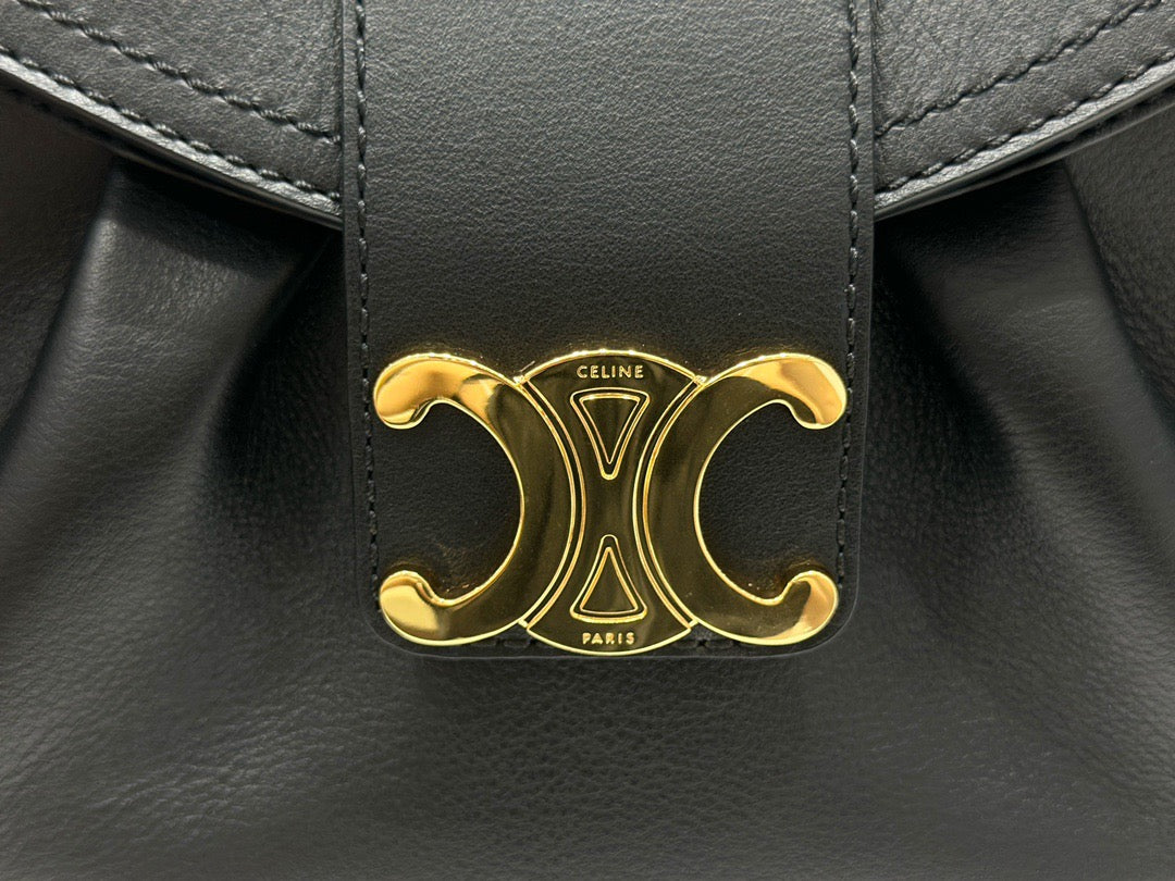 폴리백은 구조적인 쉐입이 아닌 유연하고 소프트한 바디로 디자인되어 부담 없이 들 수 있으며, 셀린느의 시그니처 송아지 가죽(Calfskin) 또는 트리옹프 캔버스 소재로 제작되어 고급스러움과 실용성을 겸비합니다. 간결한 디자인 속에서 셀린느 로고가 작게 포인트로 들어가 절제된 멋을 강조합니다.
