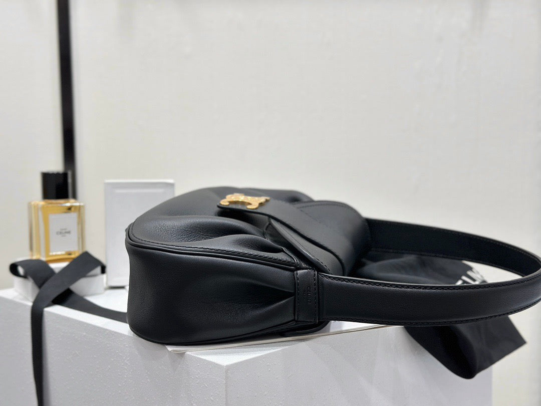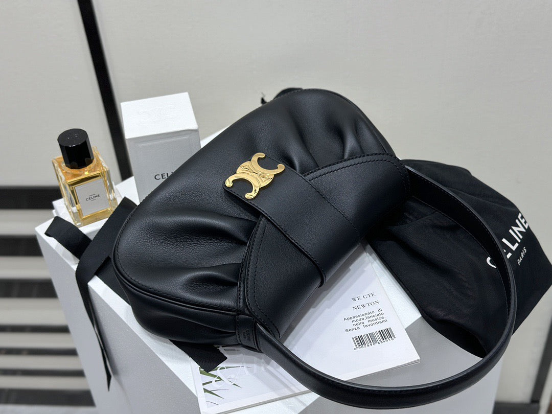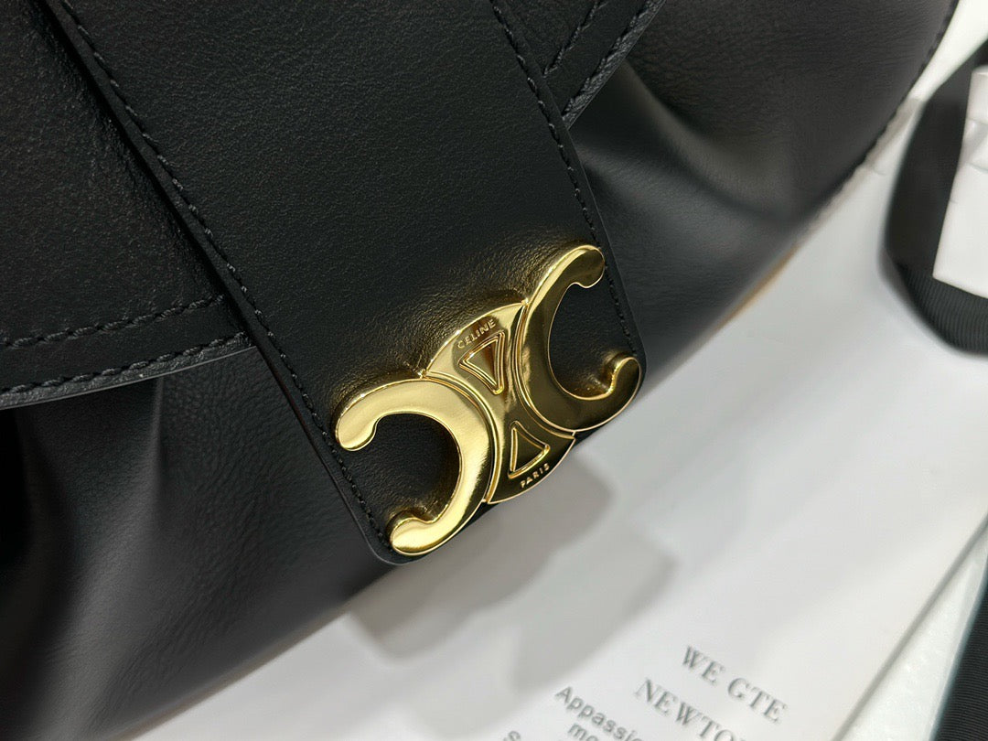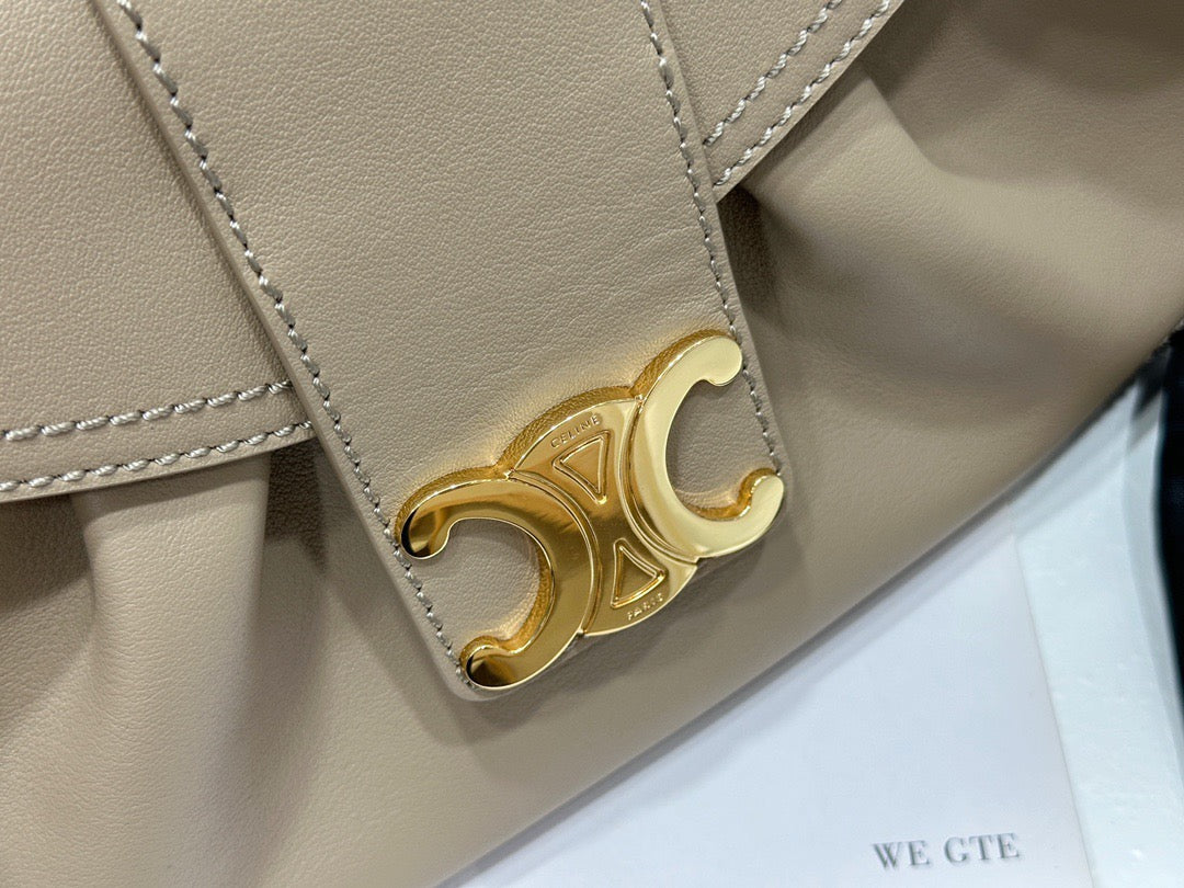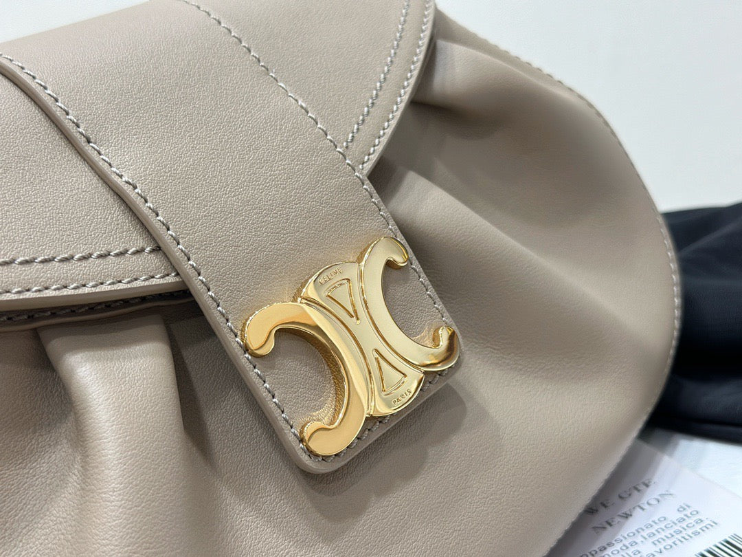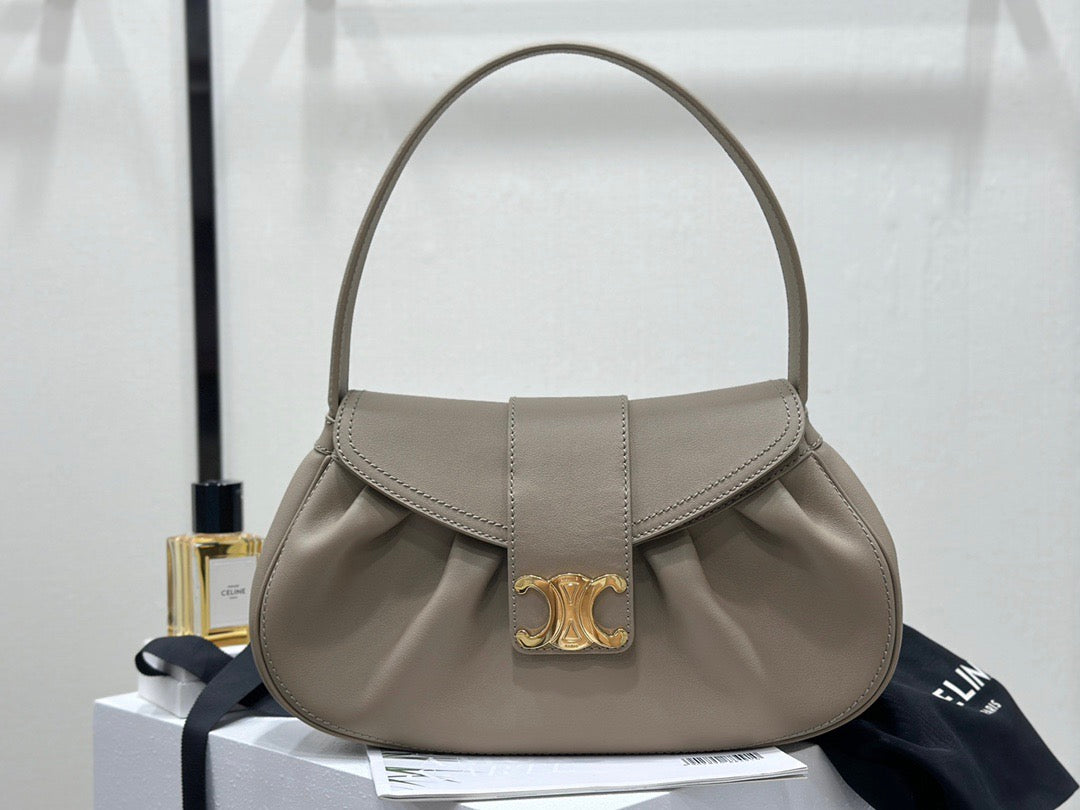 폴리백은 구조적인 쉐입이 아닌 유연하고 소프트한 바디로 디자인되어 부담 없이 들 수 있으며, 셀린느의 시그니처 송아지 가죽(Calfskin) 또는 트리옹프 캔버스 소재로 제작되어 고급스러움과 실용성을 겸비합니다. 간결한 디자인 속에서 셀린느 로고가 작게 포인트로 들어가 절제된 멋을 강조합니다.