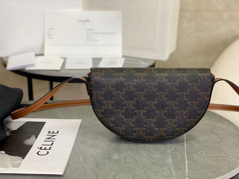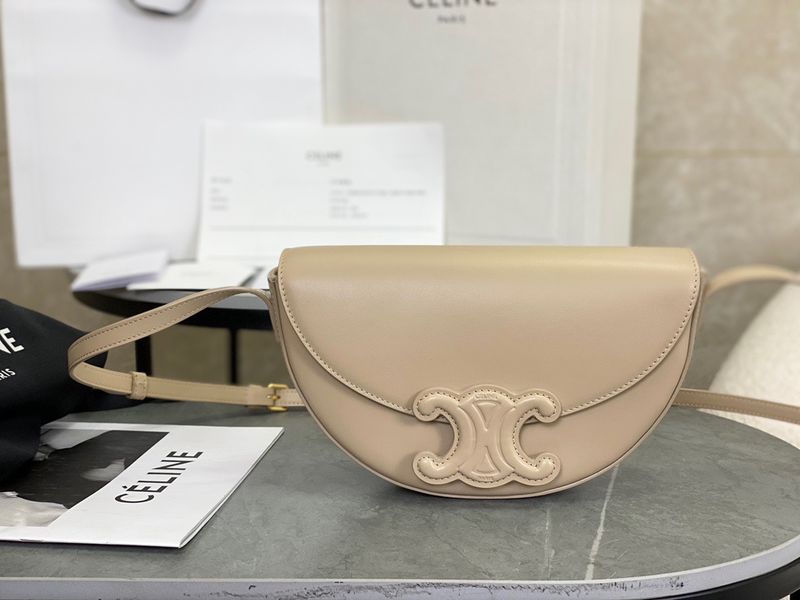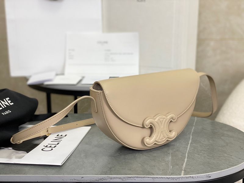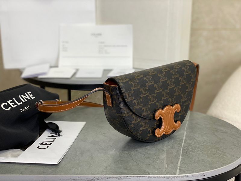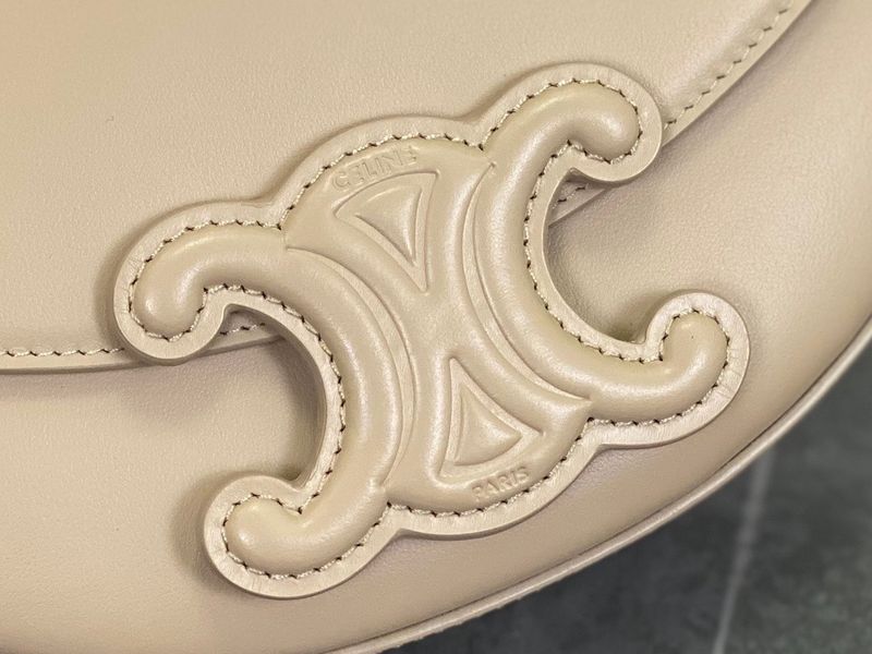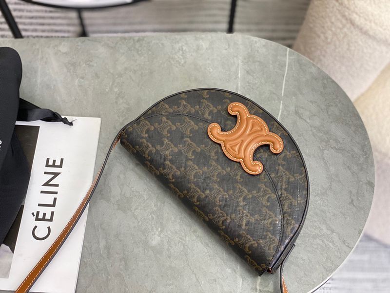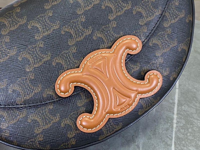 하프문 형태의 곡선 실루엣이 여성스러운 분위기를 강조하며, 부드러운 송아지 가죽 또는 캔버스 소재로 제작되어 고급스러움을 더합니다. 상단 지퍼 클로저와 짧은 숄더 스트랩이 포함되어 있으며, 셀린느의 음각 로고 또는 로고 패치가 절제된 포인트로 자리합니다.