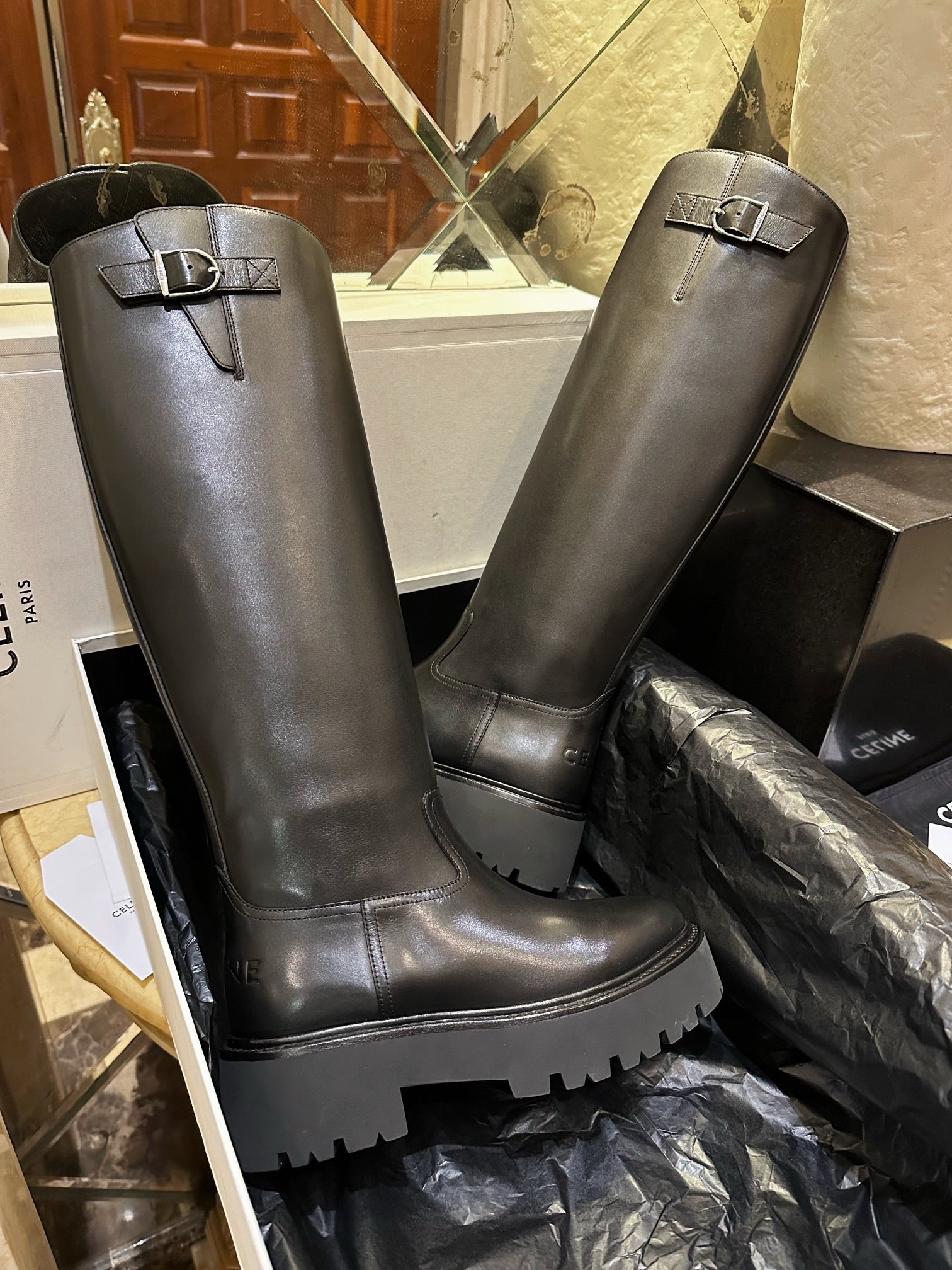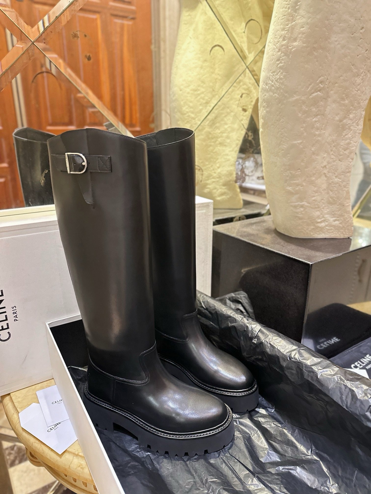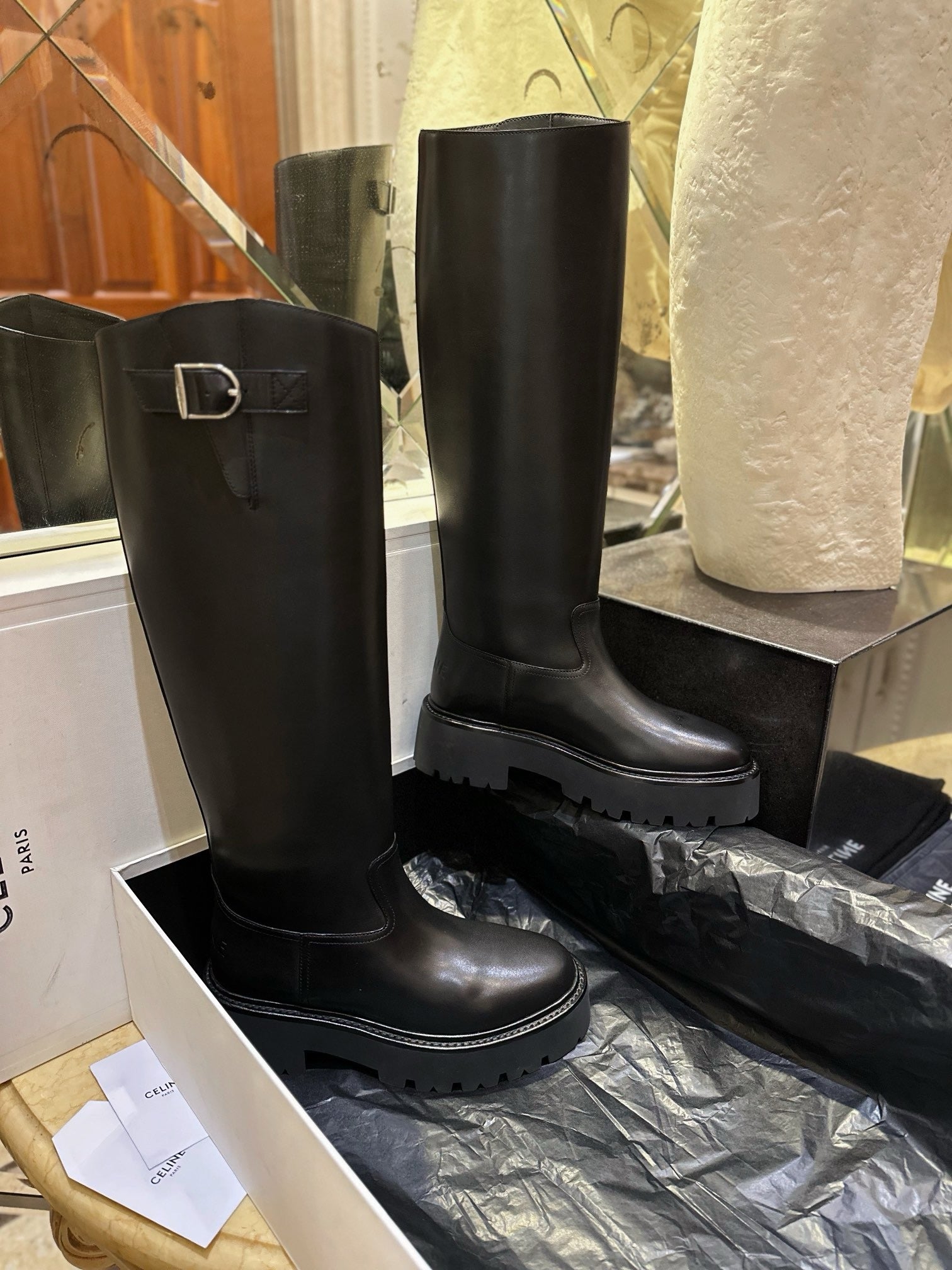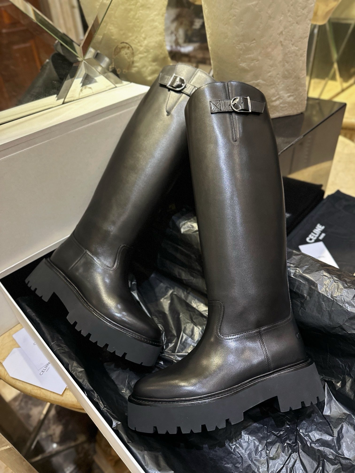 셀린느 벌키 버클드 하이 부츠