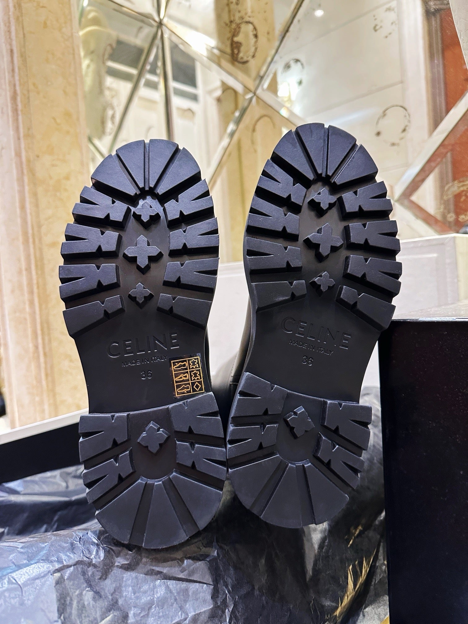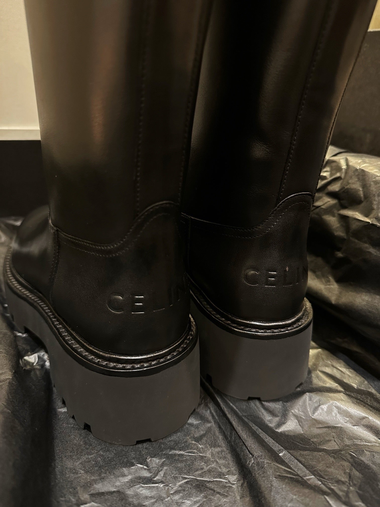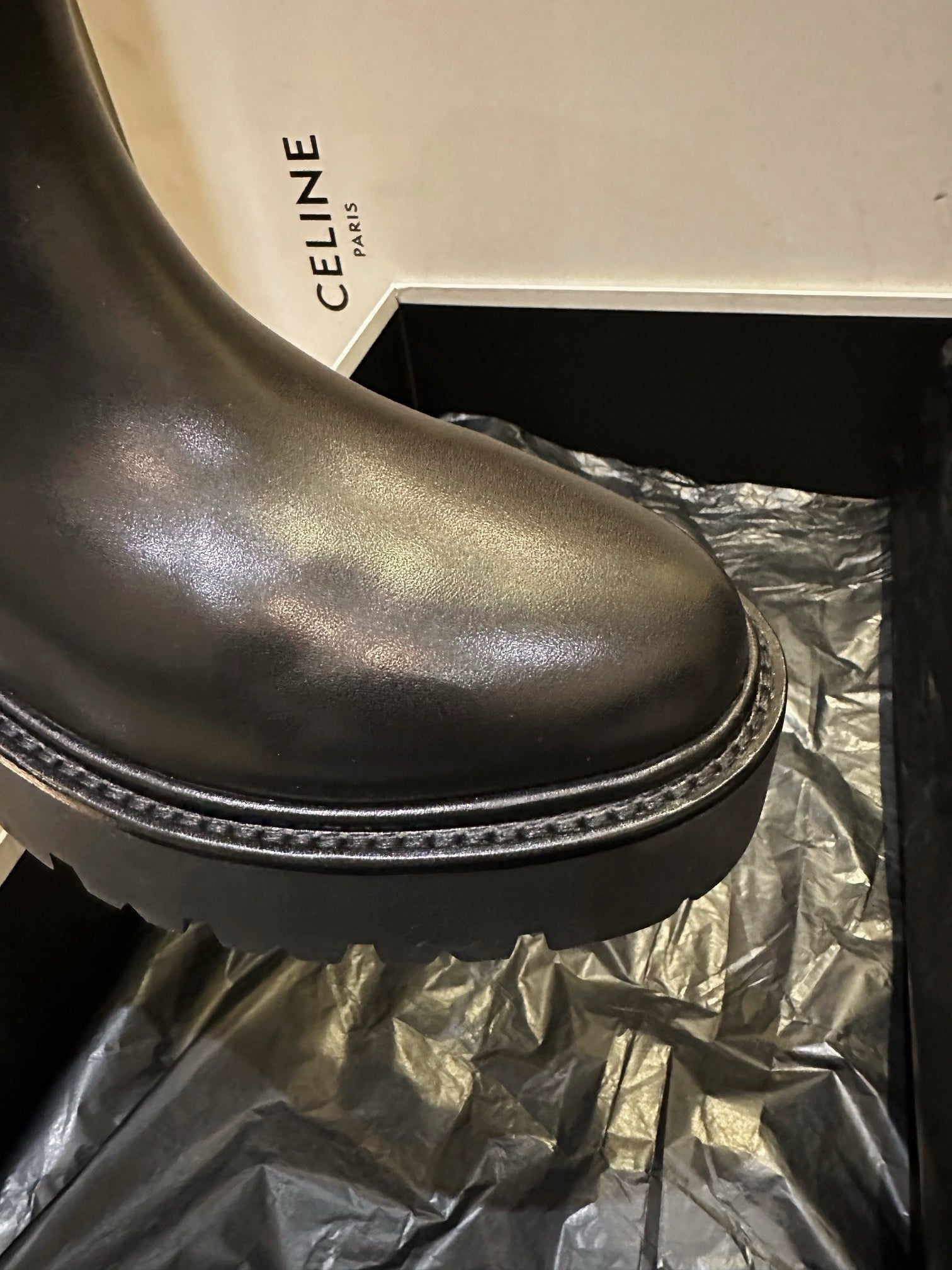 벌키한 쉐입과 두꺼운 아웃솔, 굵은 버클 스트랩이 어우러져 견고하면서도 스타일리시한 인상을 줍니다. 전체적으로 매트한 레더 질감과 셀린느만의 도시적인 무드를 극대화하며, 무릎 아래까지 오는 하이 디자인으로 착용 시 다리를 더욱 길어 보이게 해줍니다.