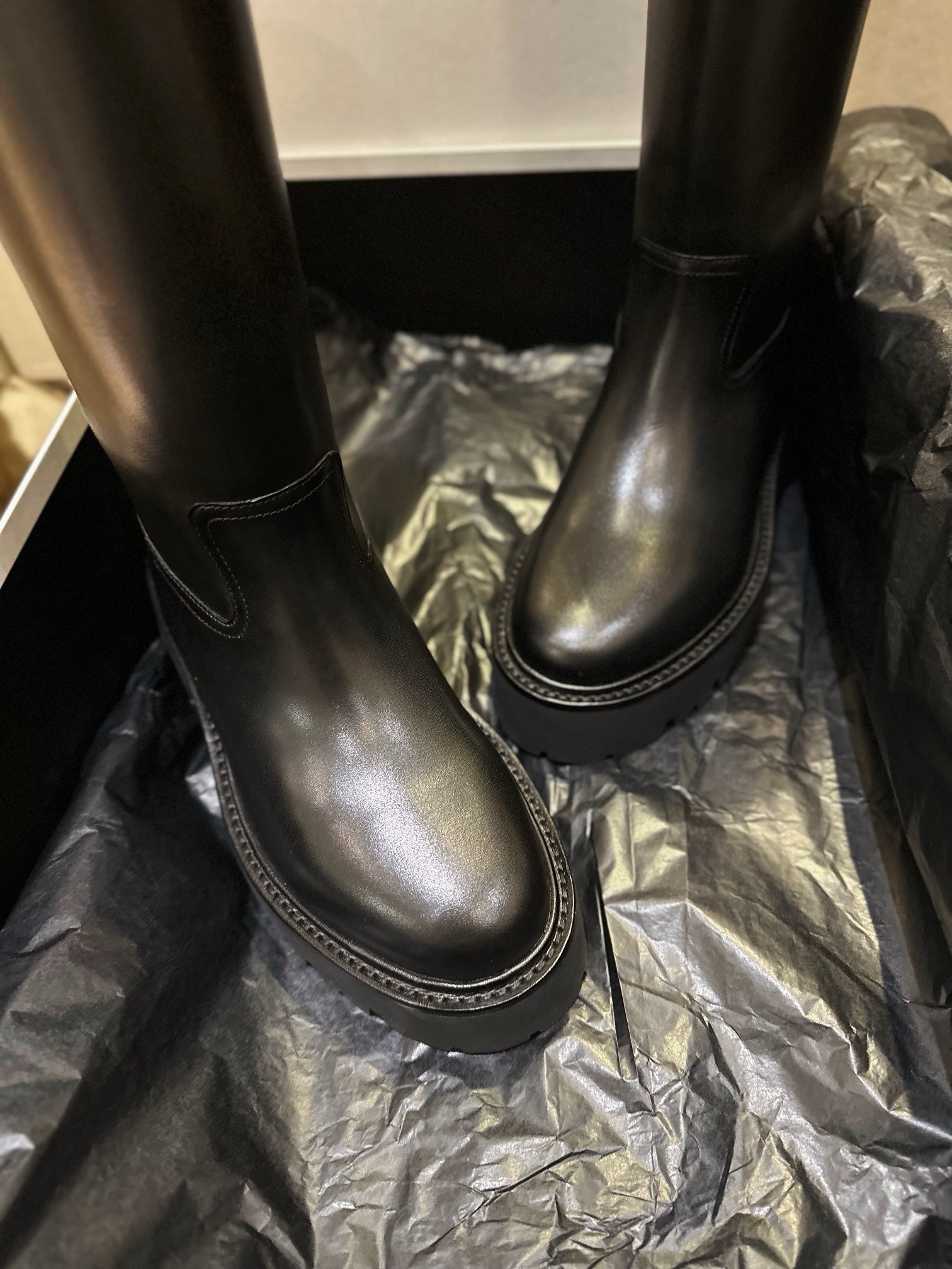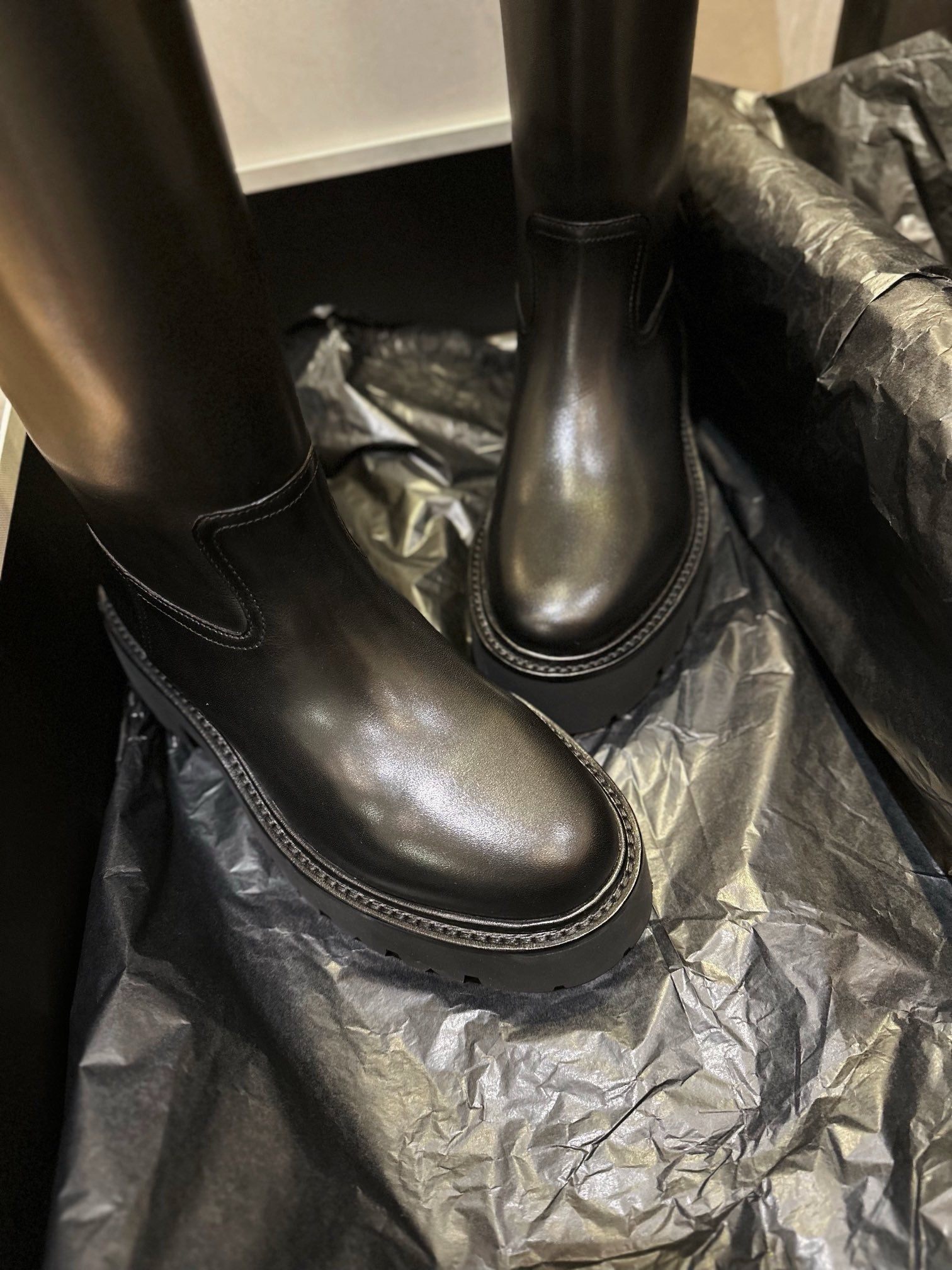 이 부츠는 간결한 오버사이즈 아우터나 미니멀한 의상과 매치하면 부츠 자체가 룩의 포인트가 되며, 무드에 따라 펑크, 밀리터리, 시크 등 다양한 스타일링이 가능합니다. 안정적인 플랫폼과 굽 높이로 착화감 또한 우수합니다.