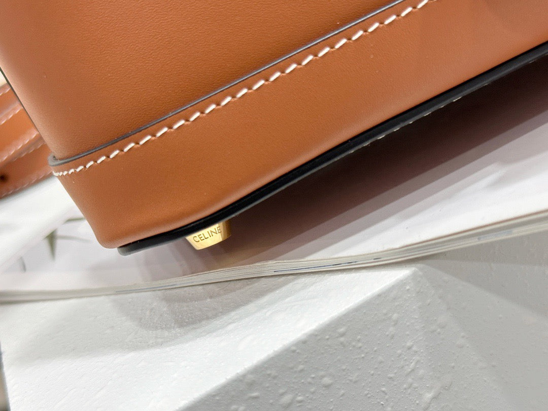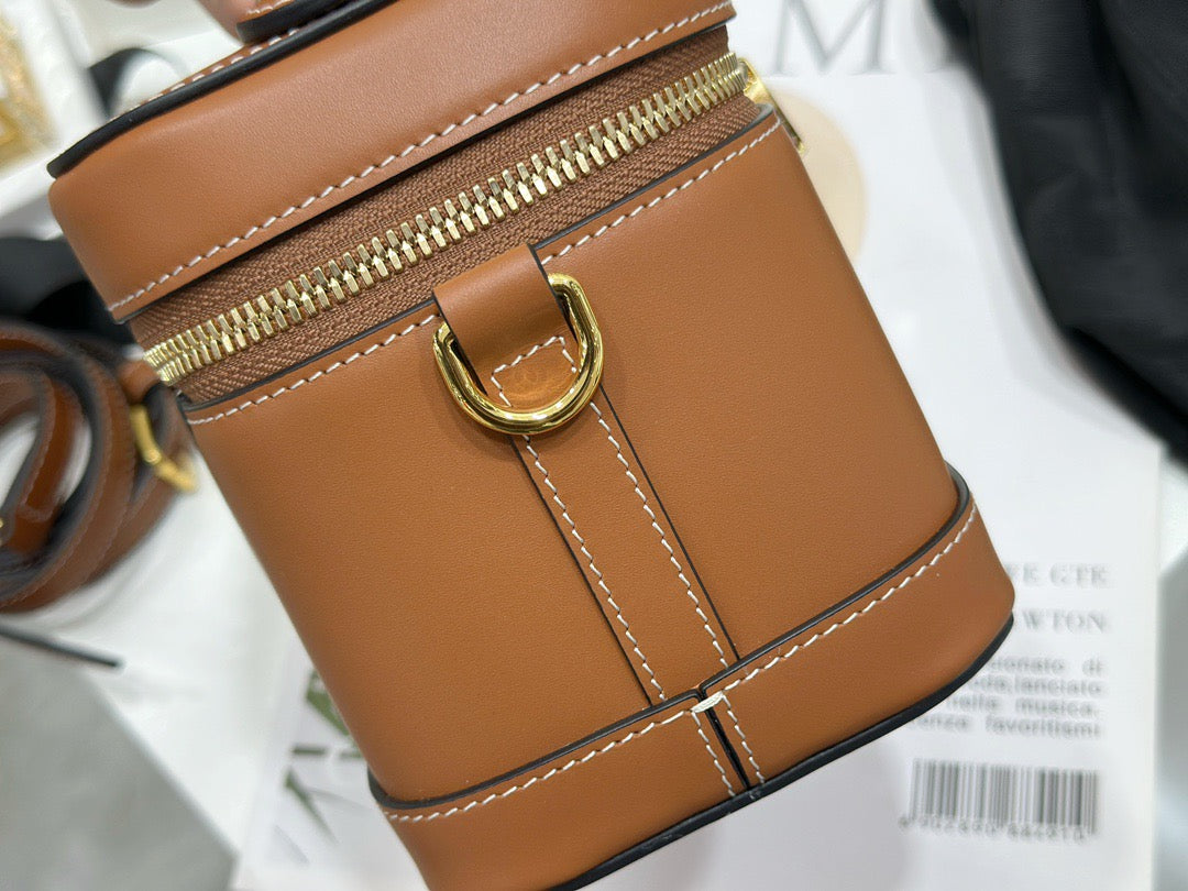 셀린느 베니티백은 정사각형 또는 직사각형의 구조적인 형태를 기반으로 하며, 하드 케이스처럼 견고한 외형을 자랑합니다. 외부에는 트리옹프 캔버스 또는 송아지 가죽 등의 고급 소재가 사용되며, 상단에는 셀린느 로고가 각인된 지퍼 클로저가 장착되어 브랜드의 정체성을 강조합니다. 핸들 디테일과 더불어 탈부착 가능한 스트랩이 있어 핸드백 또는 크로스백으로 연출 가능합니다.