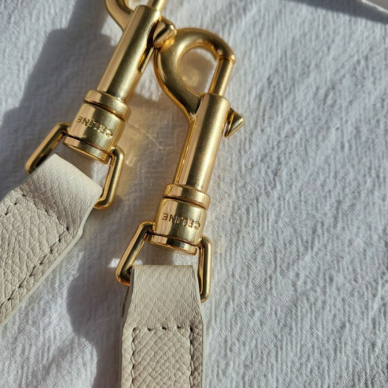셀린느 벨트백 마이크로는 셀린느(Celine)를 대표하는 시그니처 백 중 하나로, 미니멀하면서도 구조적인 실루엣과 독창적인 벨트 디테일이 조화를 이루는 고급스러운 백입니다. 작은 사이즈임에도 높은 실용성과 세련된 디자인으로 데일리룩에 완성도를 더해줍니다.