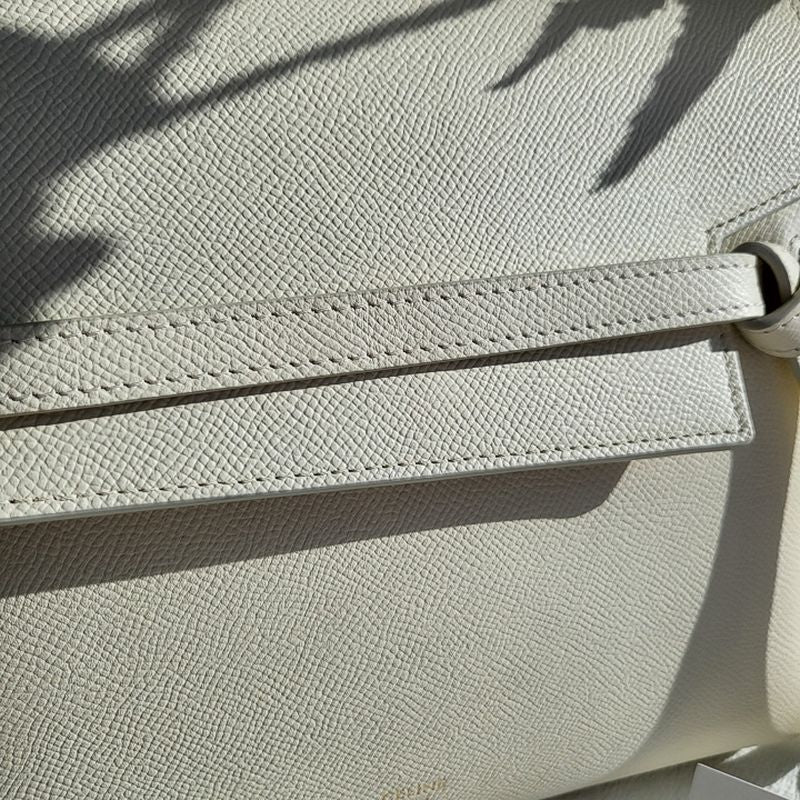 벨트백은 플랩 커버 위로 벨트 형태의 디테일이 더해져 독특하면서도 견고한 구조를 형성하며, 마이크로 사이즈는 그중에서도 가장 아담한 크기로, 콤팩트한 스타일링에 적합합니다. 고급 송아지 가죽(Calfskin)으로 제작되어 부드러운 촉감과 내구성을 자랑하며, 셀린느 로고는 절제된 포일 디테일로 표현되어 미니멀한 분위기를 강조합니다.