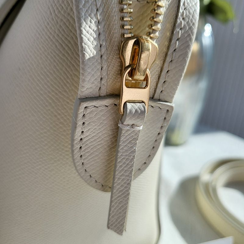 마이크로 사이즈임에도 내부에는 작은 지갑, 핸드폰, 립스틱 등 필수 아이템을 충분히 수납할 수 있으며, 내부 지퍼 포켓과 플랫 포켓이 구성되어 있어 소지품 정리가 용이합니다. 짧은 탑 핸들과 함께 탈부착 가능한 스트랩이 제공되어 토트백 또는 숄더백으로 연출할 수 있습니다.