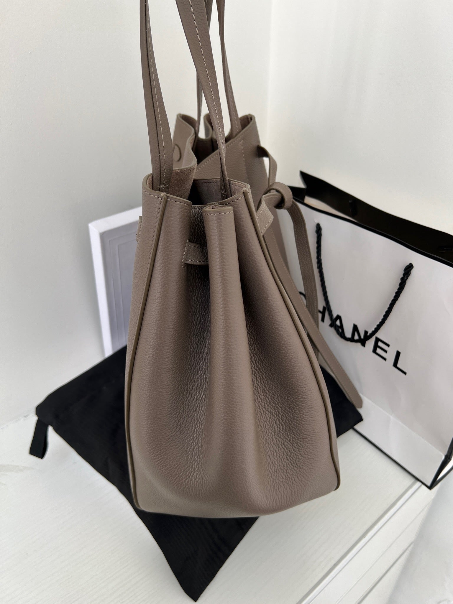 셀린느 스몰 카바스 팬텀은 버킷 형태의 넉넉한 내부 공간이 특징이며, 내부 스트랩을 조여 실루엣을 변형할 수 있는 디자인이 돋보입니다. 이로 인해 수납량에 따라 형태를 유연하게 조절할 수 있어 실용적입니다. 부드러운 카프스킨 소재는 시간이 지날수록 자연스러운 광택과 멋을 더하며, 고급스러운 분위기를 자아냅니다.