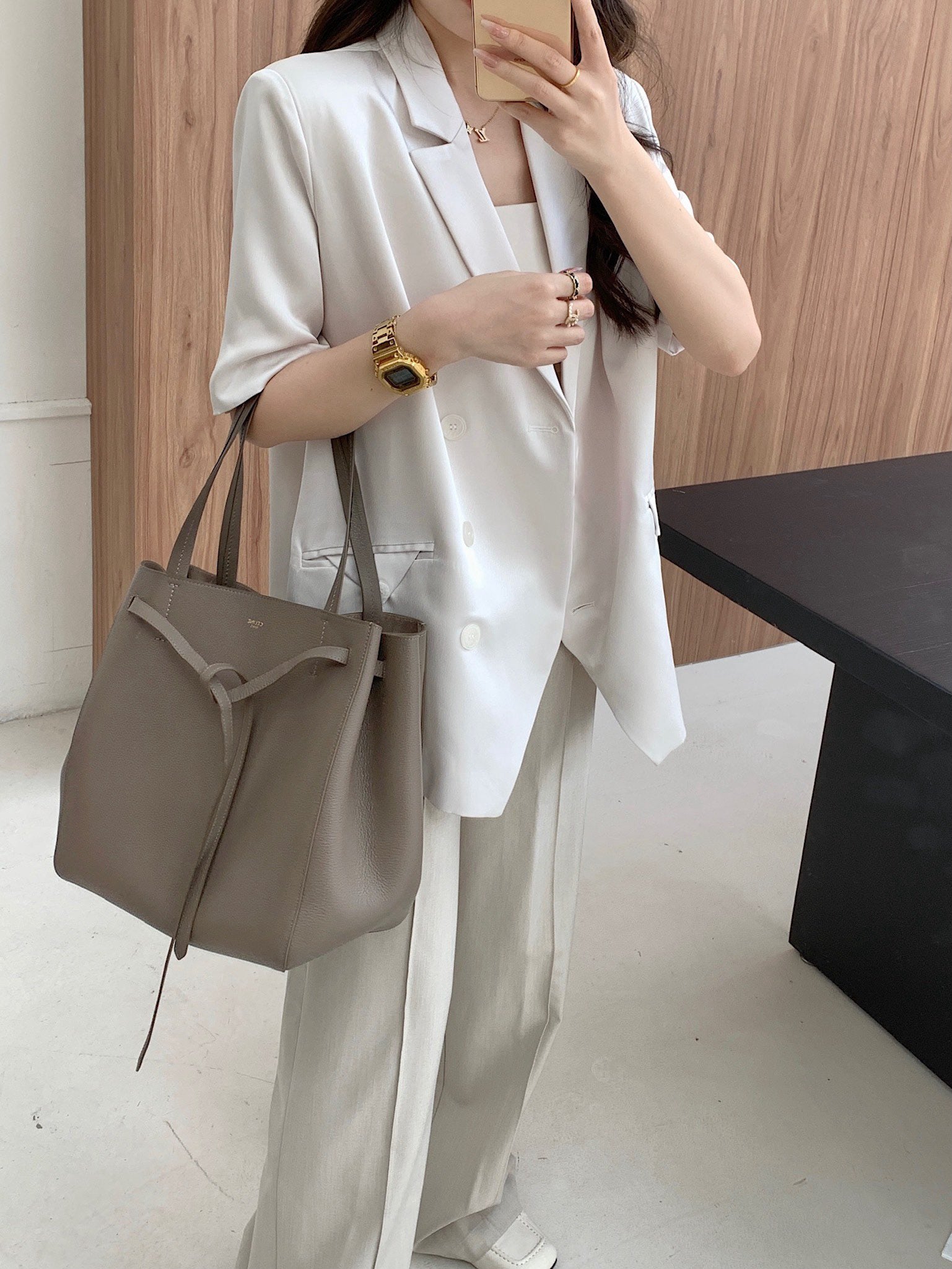 포멀한 수트나 오피스 룩에는 고급스러운 무드를 더해주며, 청바지와 티셔츠 같은 캐주얼 룩에도 모던한 포인트로 잘 어울립니다. 특히 심플한 스타일을 선호하는 분들에게 일상용 데일리백으로 강력 추천되는 아이템입니다.