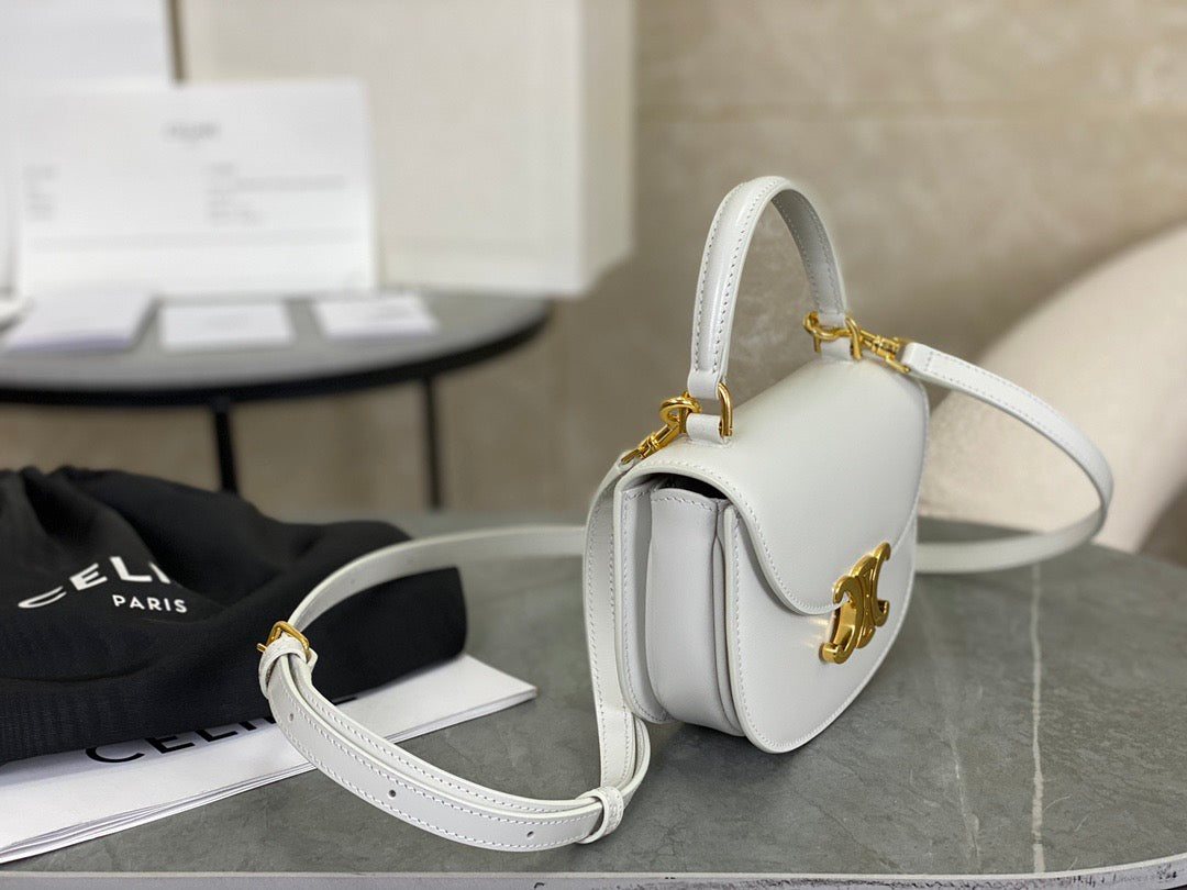 셀린느 클레아 베사체 탑핸들백 미니(Celine Clea Besace Top Handle Bag Mini)는 클래식한 구조와 셀린느 특유의 정제된 감성이 담긴 미니 탑핸들백입니다. 베사체 스타일의 플랩 디테일과 탑핸들 구조가 어우러져 여성스러우면서도 실용적인 디자인을 완성합니다.
