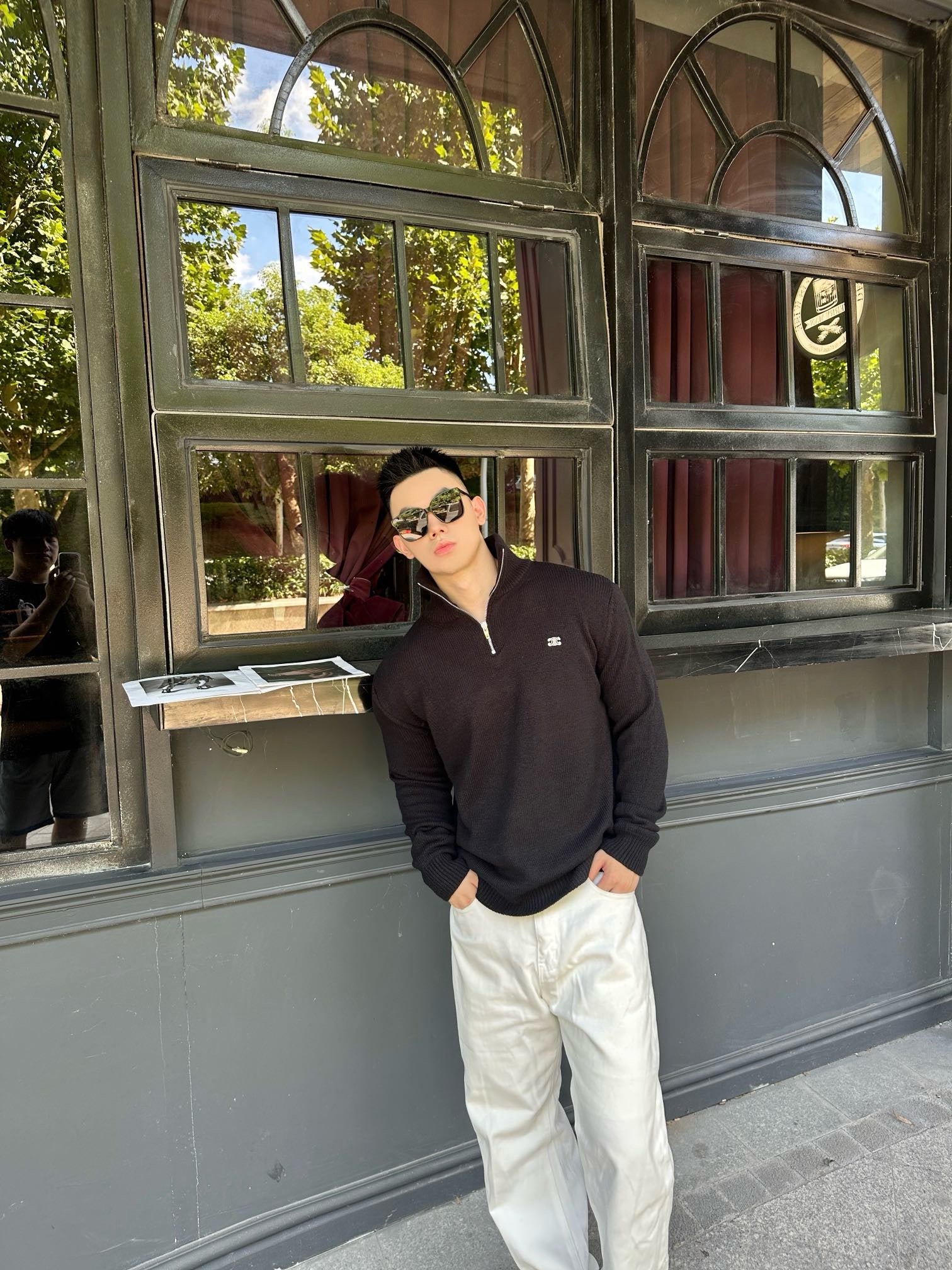 셀린느 트리오페 자수로고 울 캐시미어 반집업 니트