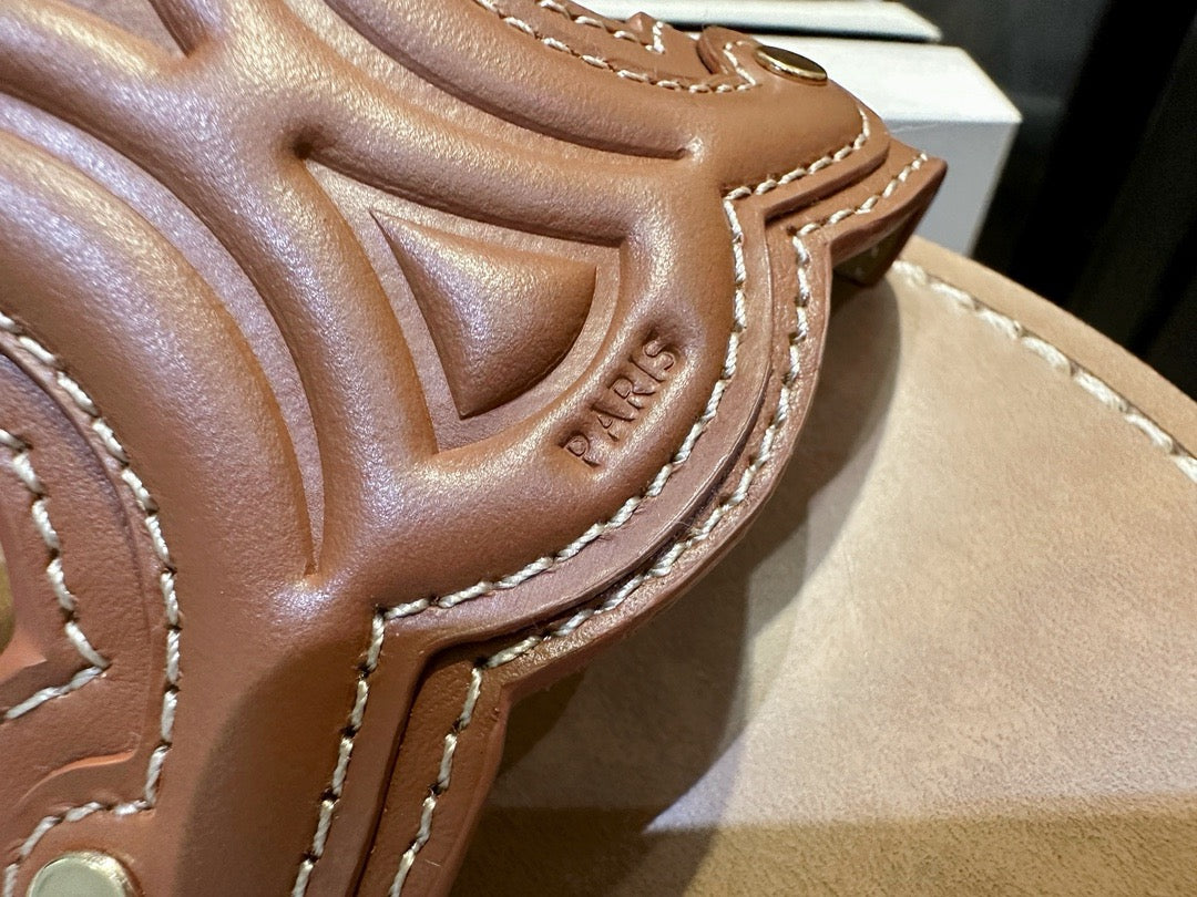 셀린느 트리옹프 뮬 슬리퍼(Celine Triomphe Mule Slippers)는 셀린느의 아이코닉한 트리옹프 모티프와 미니멀한 실루엣이 조화를 이루는 세련된 여름 슈즈입니다. 간편하게 신을 수 있는 슬리퍼 형태이지만, 디테일에서 느껴지는 고급스러움은 셀린느만의 감성을 그대로 담고 있습니다.