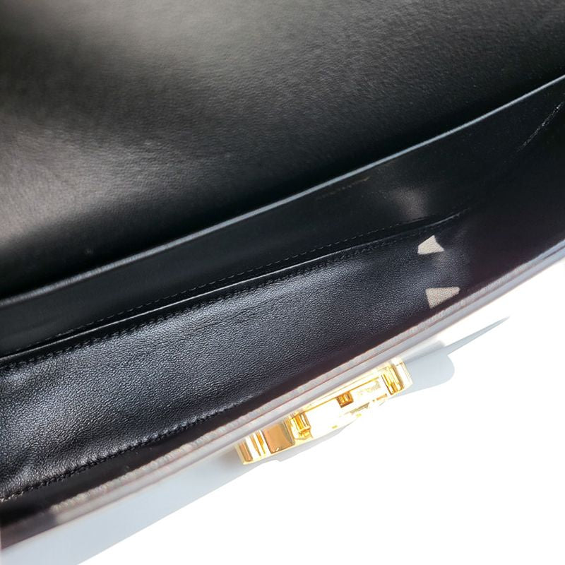 컴팩트한 사이즈지만 내부에는 카드지갑, 립스틱, 스마트폰 등 일상 필수품을 수납할 수 있는 공간이 마련되어 있습니다. 내부는 플랫 포켓으로 구성되어 있으며, 길이 조절이 가능한 가죽 스트랩을 통해 숄더백과 크로스백으로 다양하게 활용할 수 있습니다.