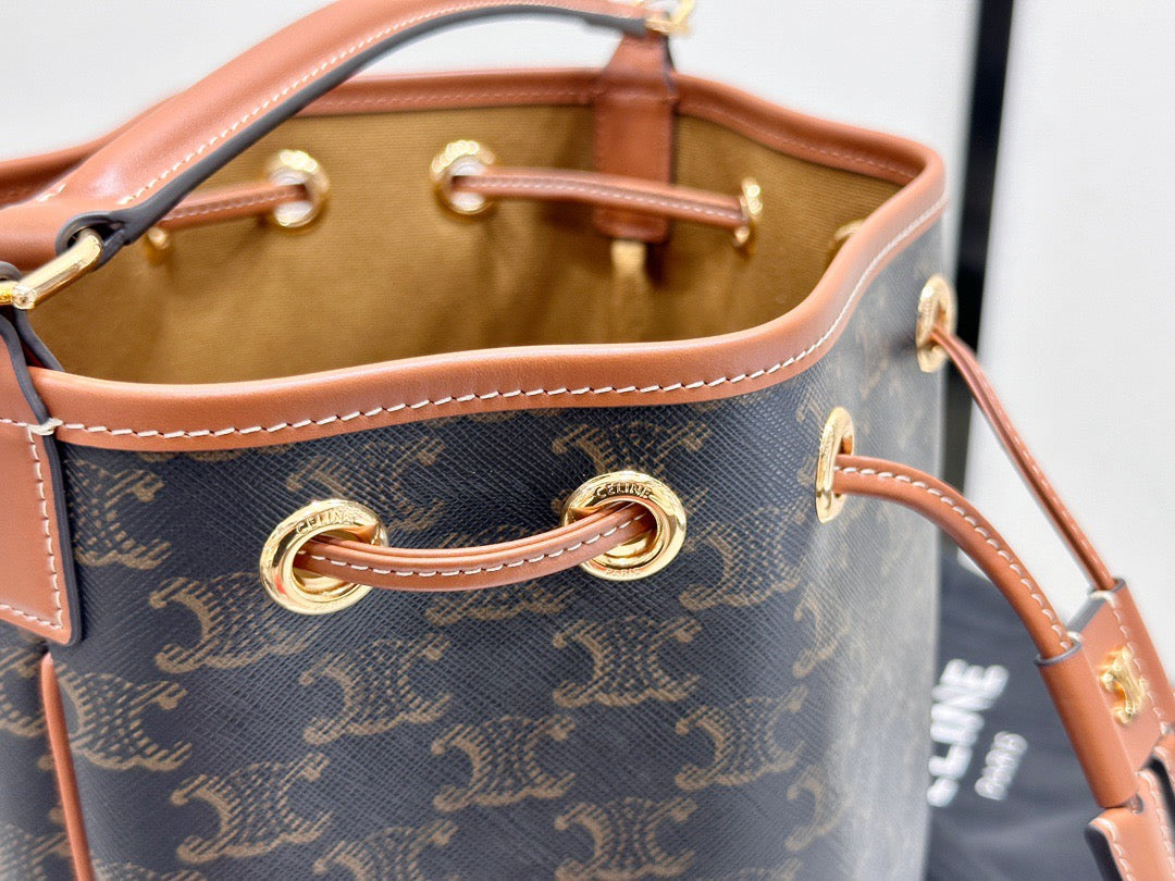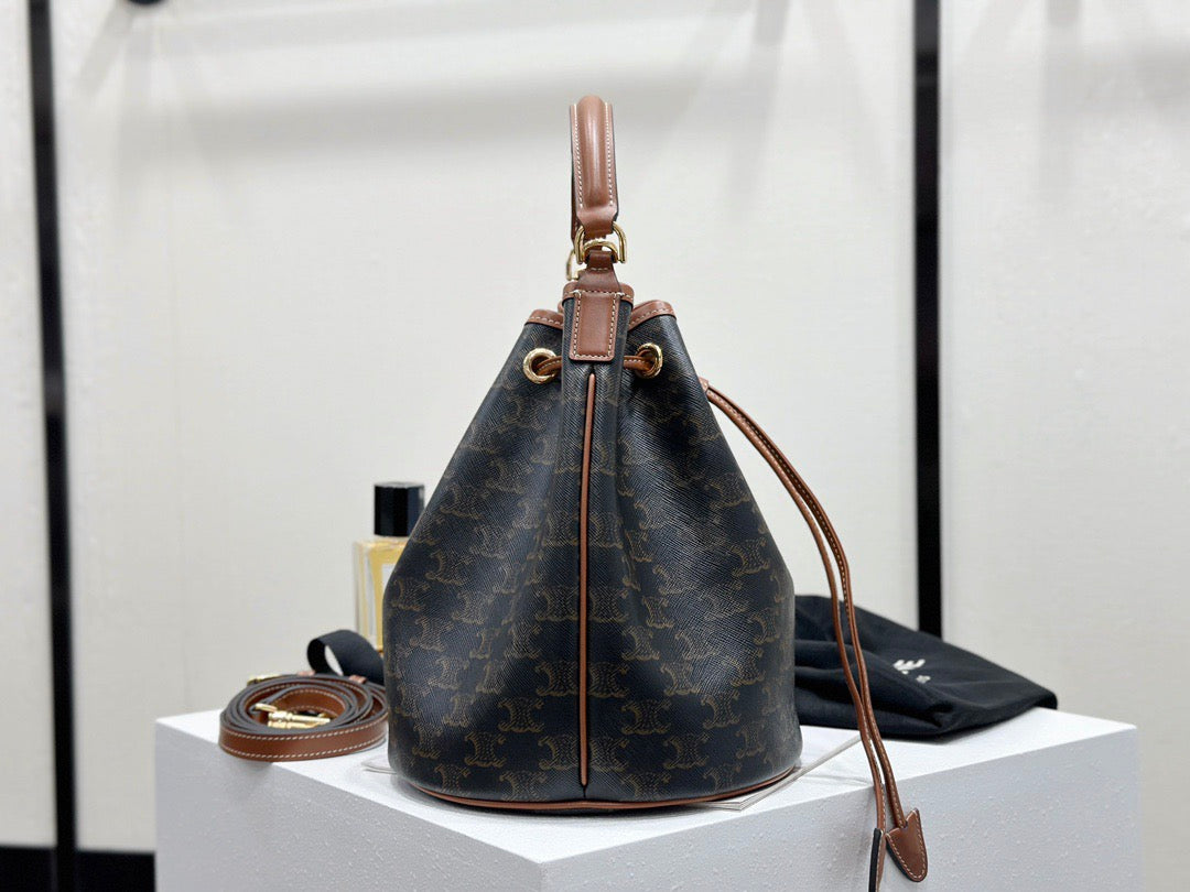 셀린느 트리옹프 클라라 버킷백(Celine Triomphe Clara Bucket Bag) - 부드러운 곡선과 트리옹프 모노그램의 조화