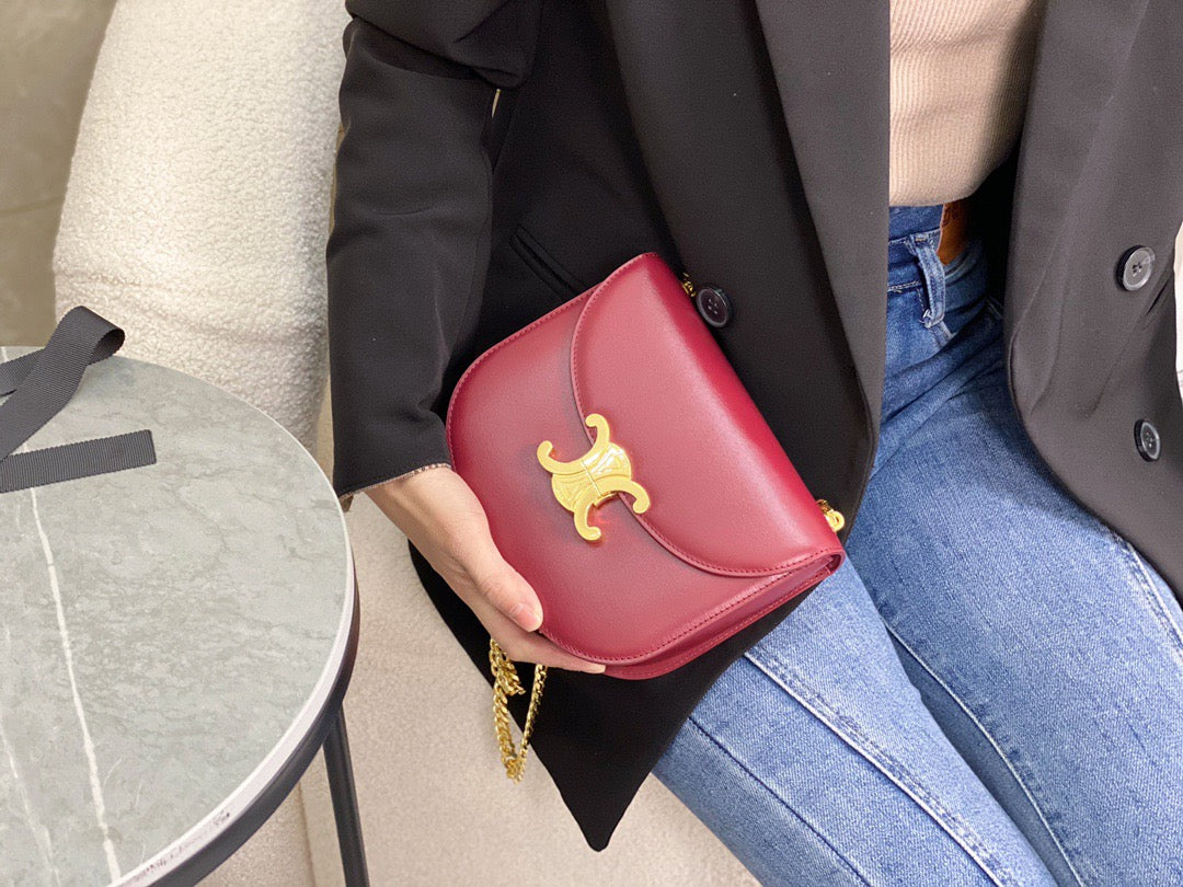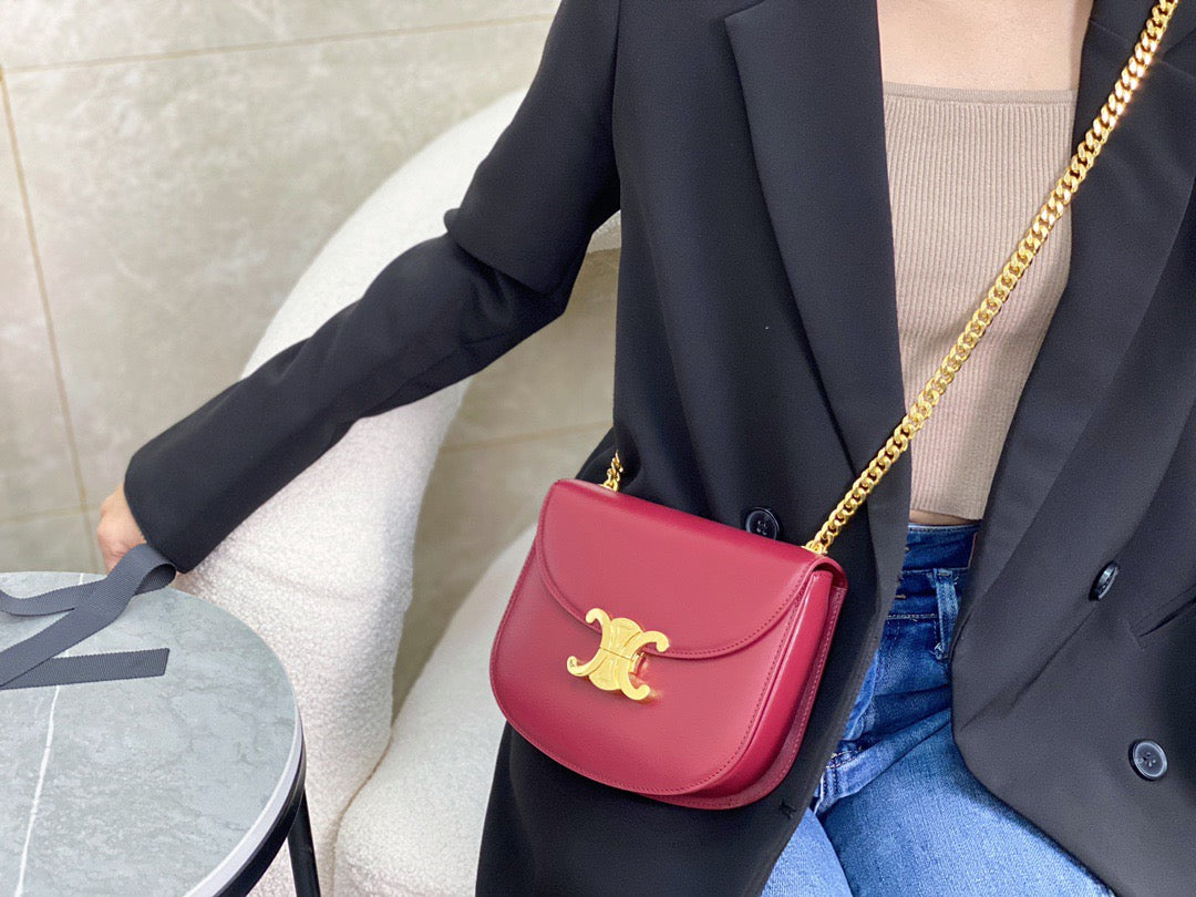 셀린느 트리옹프 틴 베사체 레더 체인백(Celine Triomphe Teen Besace Leather Chain Bag) - 컴팩트한 구조 속 실용성