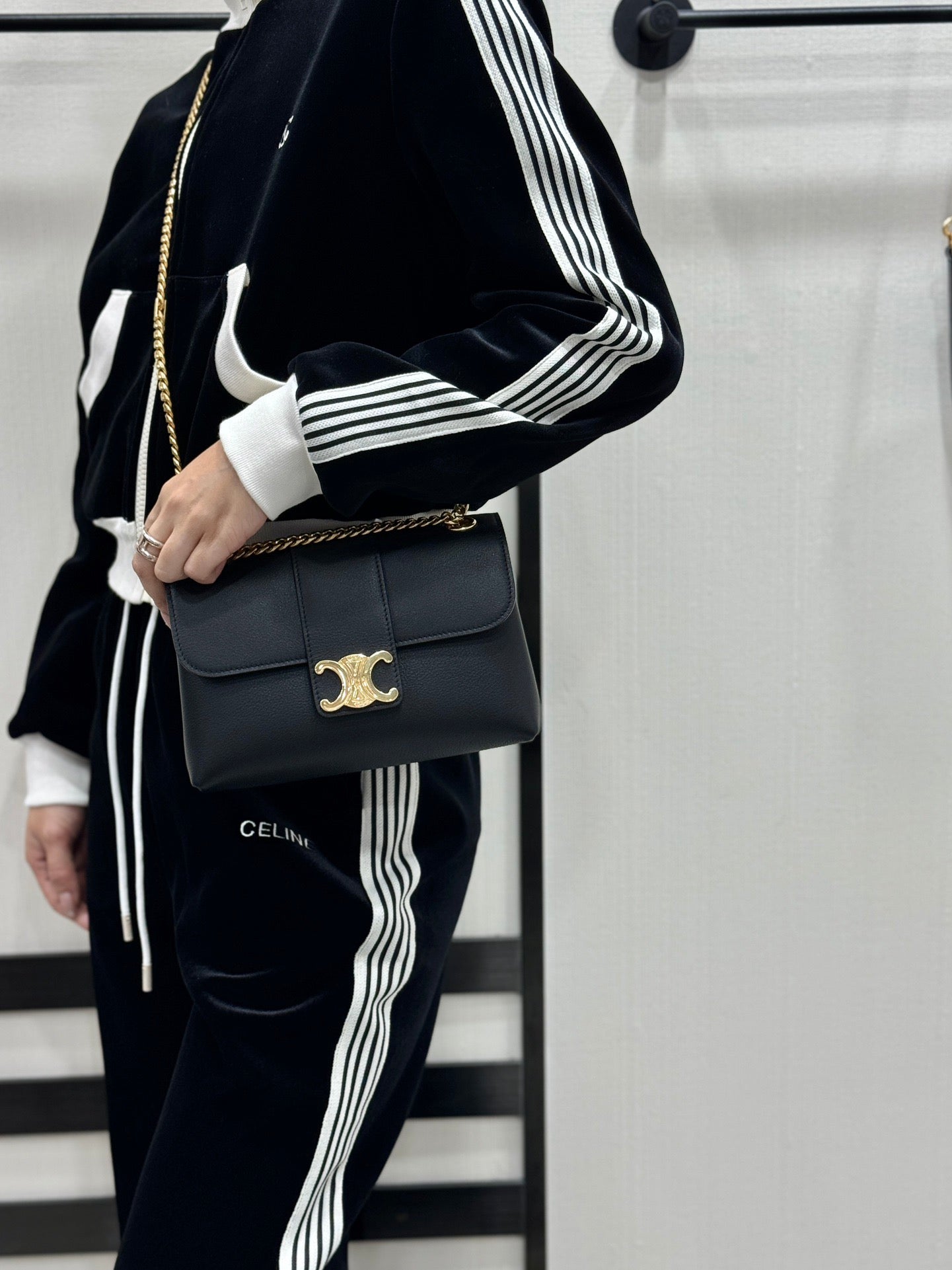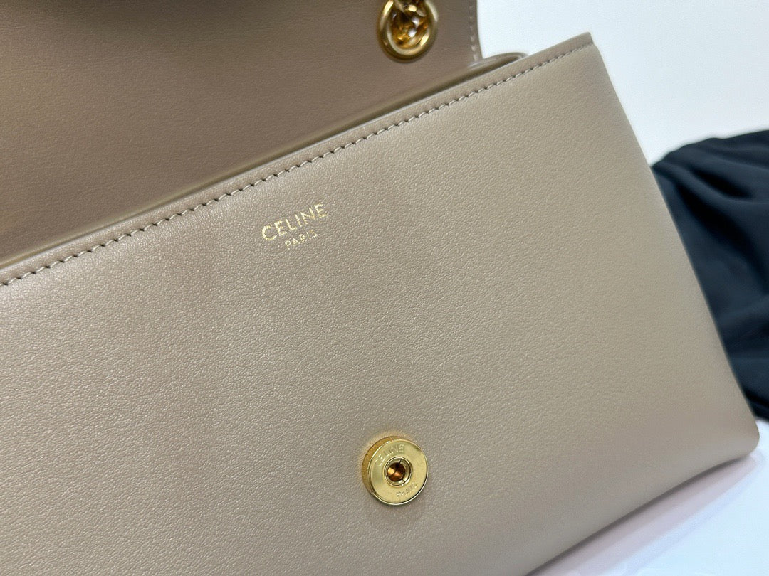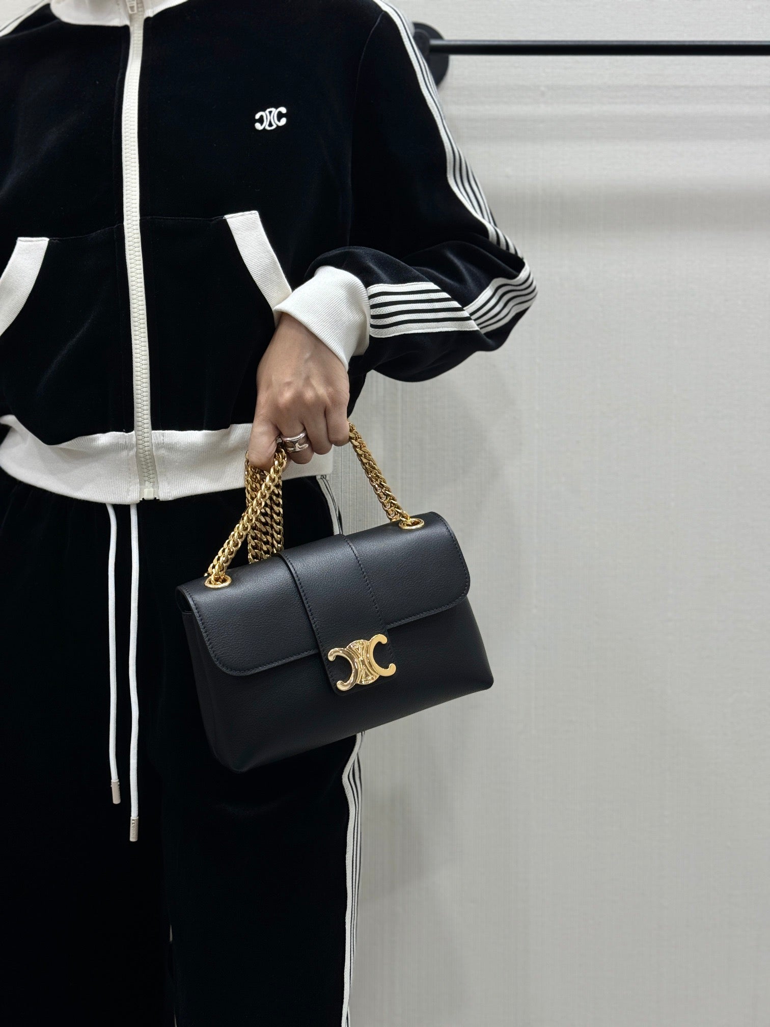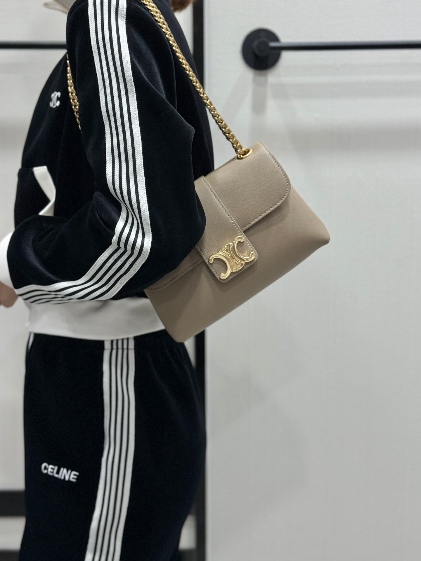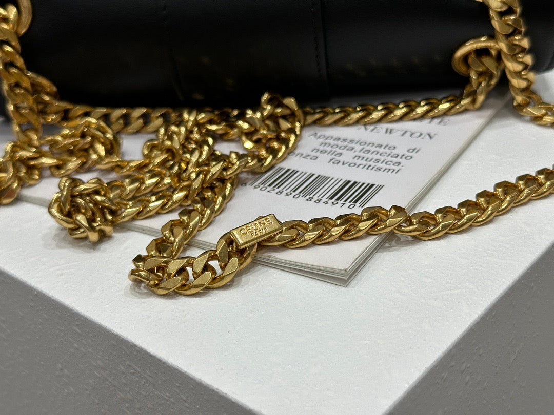이 가방은 직선적인 실루엣과 셀린느의 시그니처인 트라이엄프 메탈 클로저로 클래식한 매력을 더합니다. 천연 카프스킨 또는 램스킨 가죽으로 제작되어 부드러운 촉감과 고급스러움을 자랑하며, 체인 스트랩은 골드 피니시로 세련미를 극대화합니다.