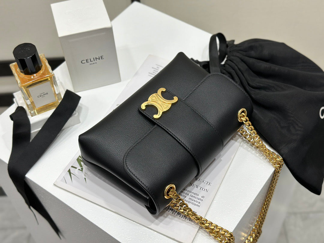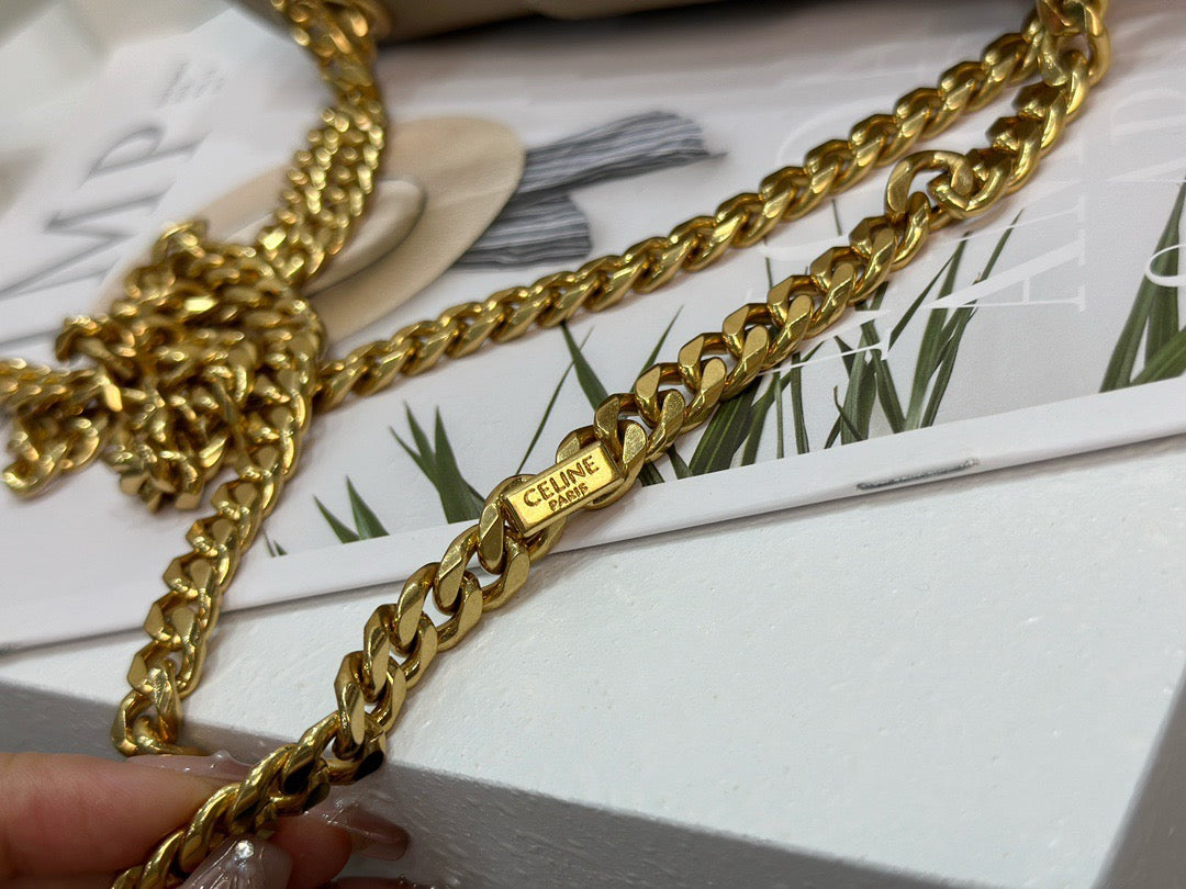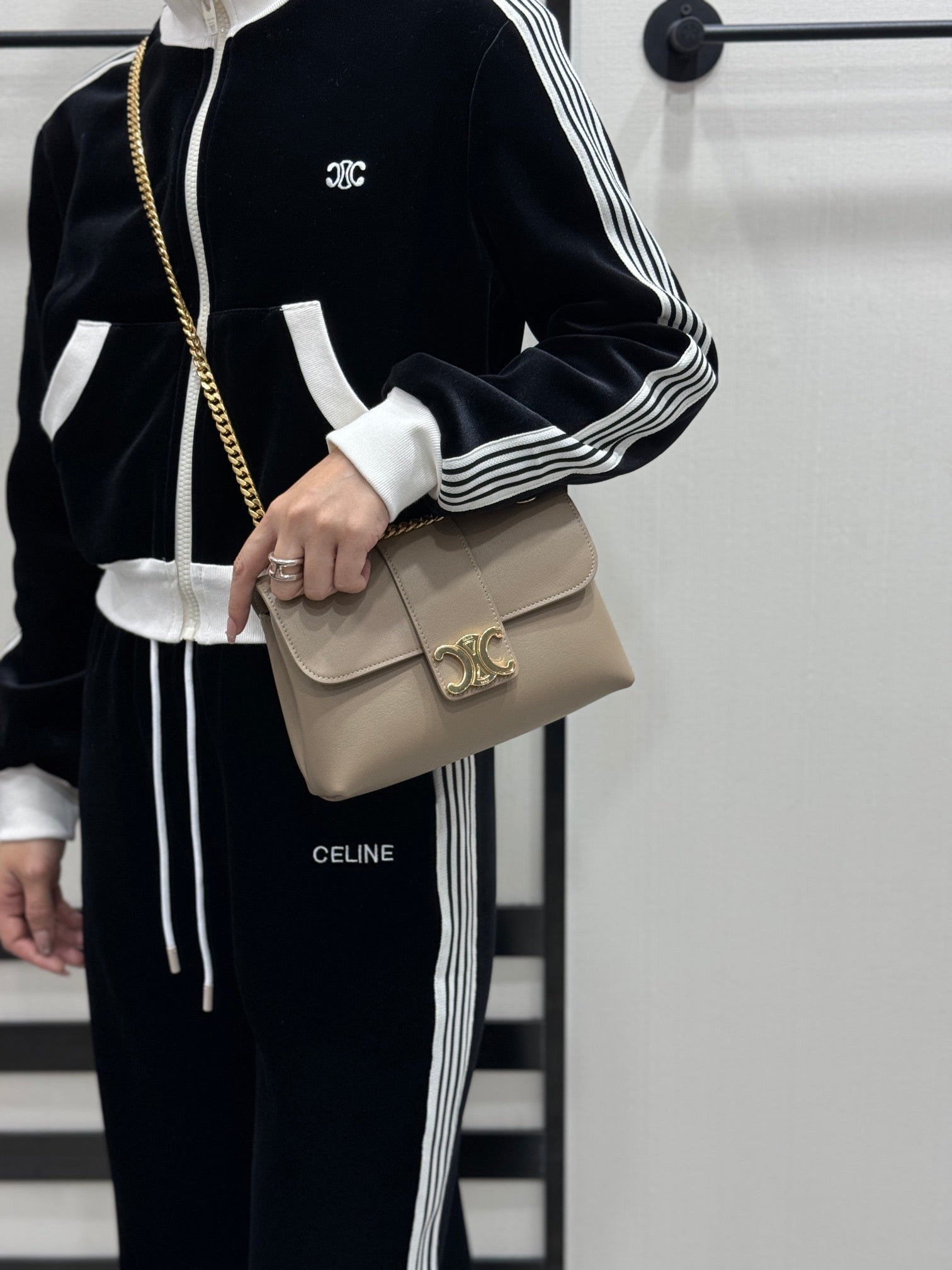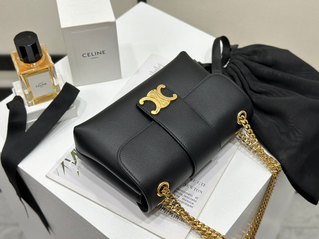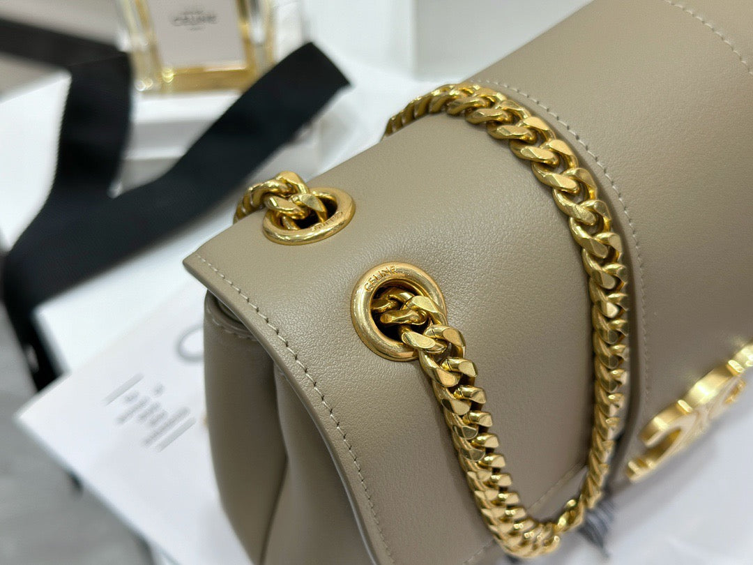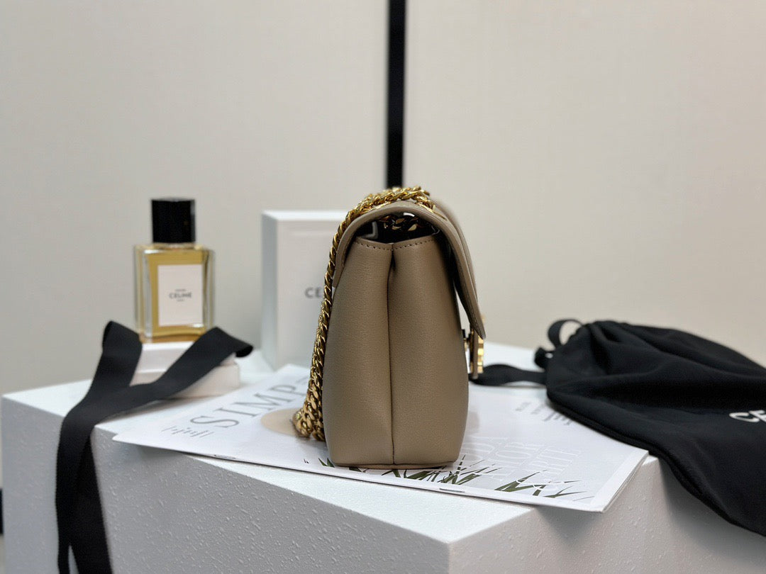 이 가방은 직선적인 실루엣과 셀린느의 시그니처인 트라이엄프 메탈 클로저로 클래식한 매력을 더합니다. 천연 카프스킨 또는 램스킨 가죽으로 제작되어 부드러운 촉감과 고급스러움을 자랑하며, 체인 스트랩은 골드 피니시로 세련미를 극대화합니다.