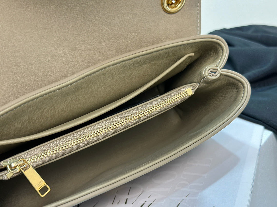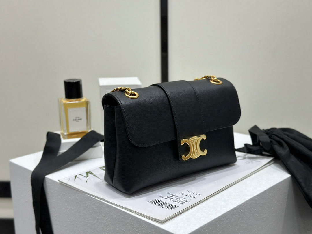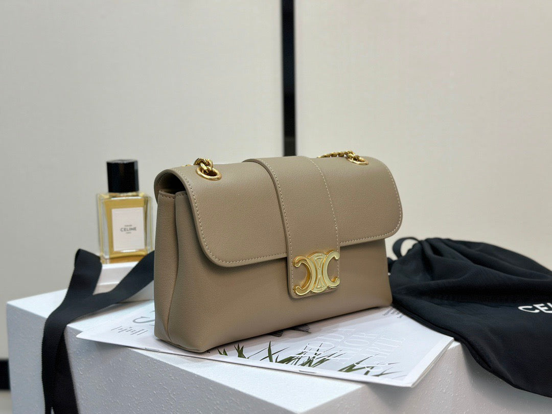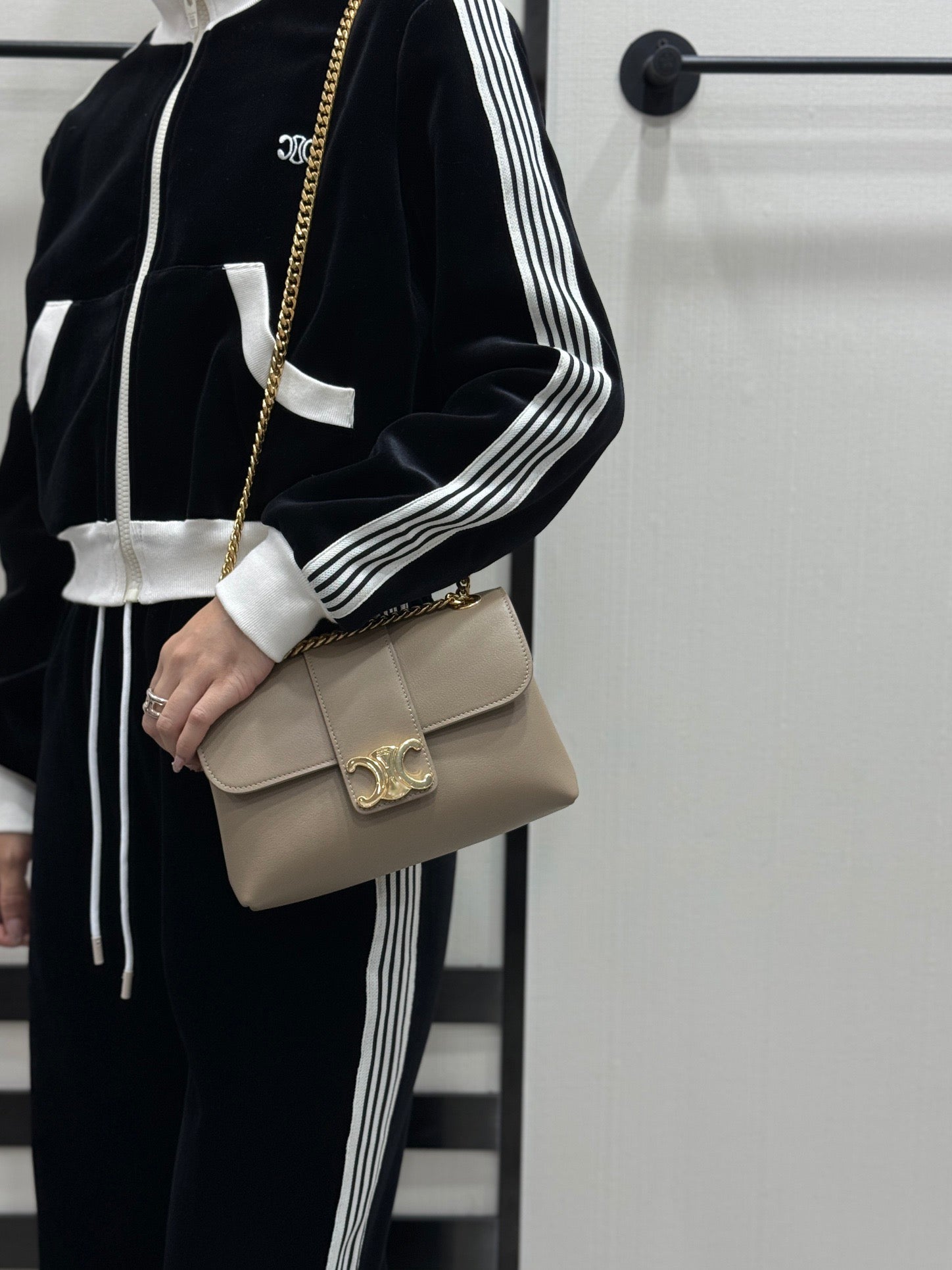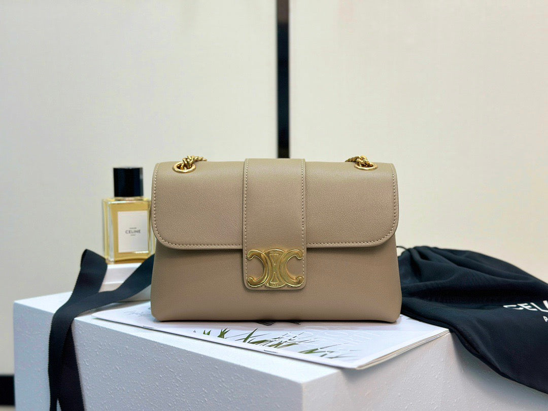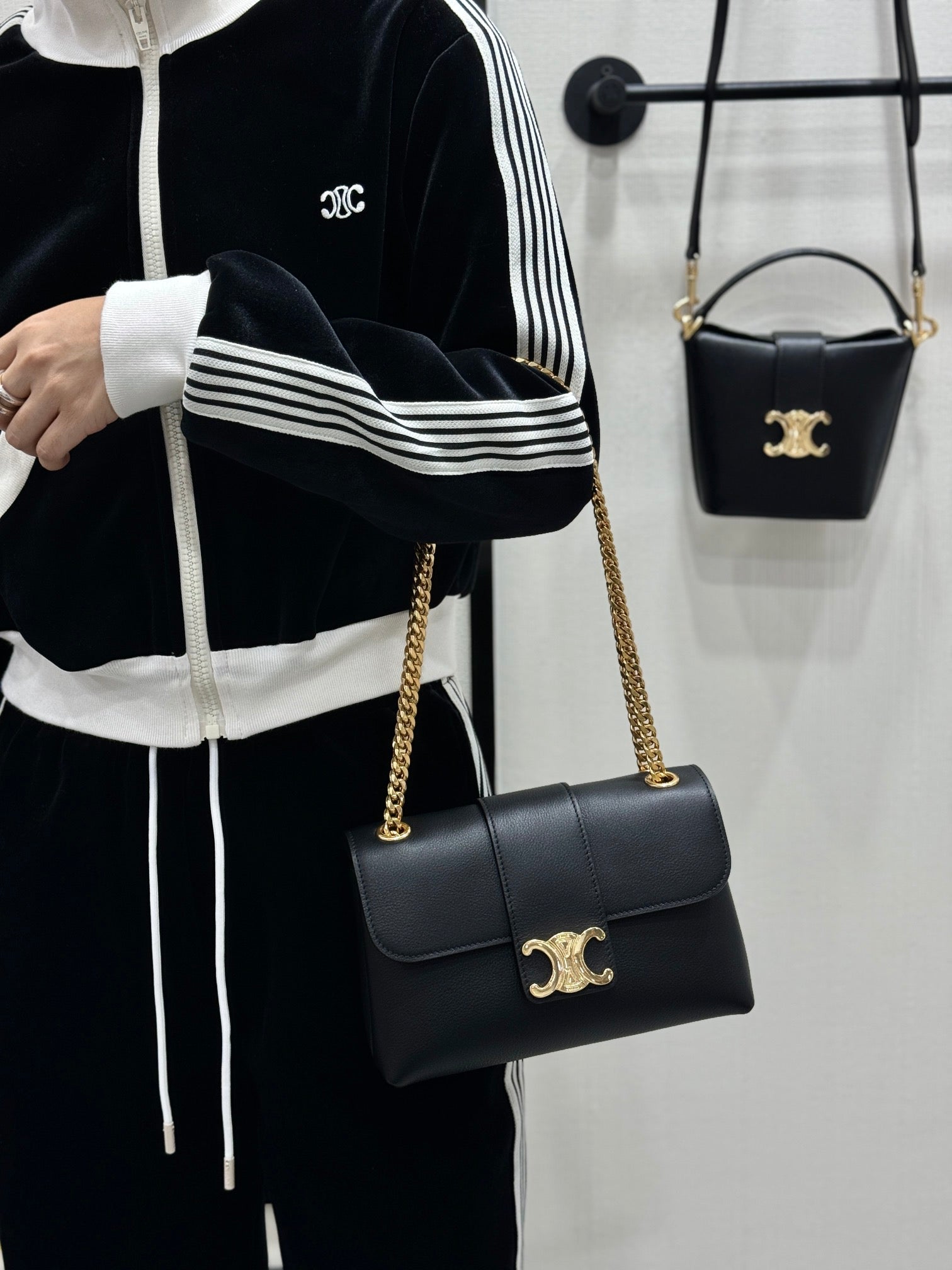 이 가방은 직선적인 실루엣과 셀린느의 시그니처인 트라이엄프 메탈 클로저로 클래식한 매력을 더합니다. 천연 카프스킨 또는 램스킨 가죽으로 제작되어 부드러운 촉감과 고급스러움을 자랑하며, 체인 스트랩은 골드 피니시로 세련미를 극대화합니다.