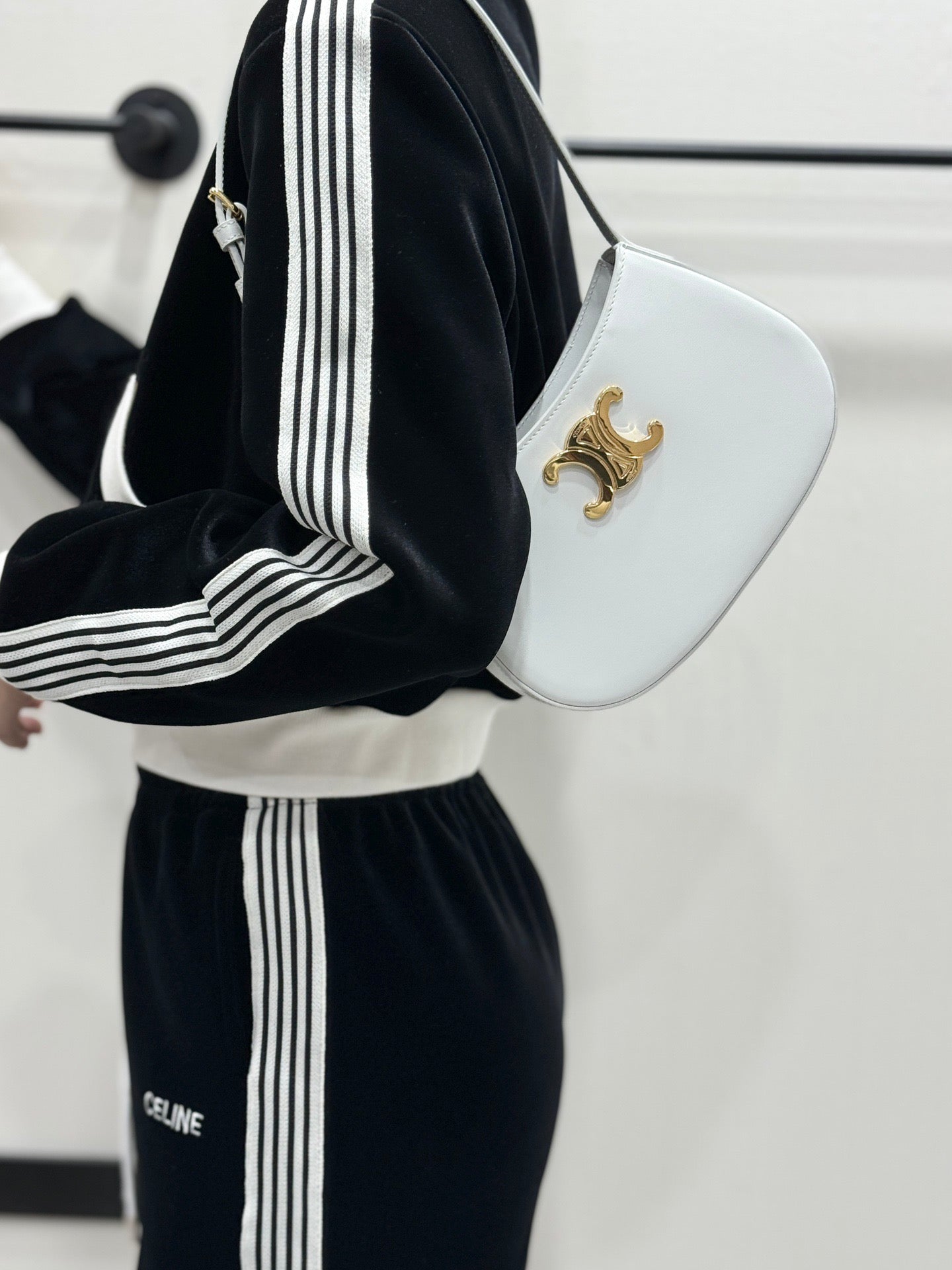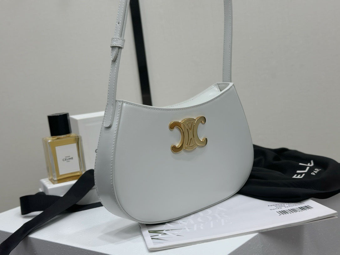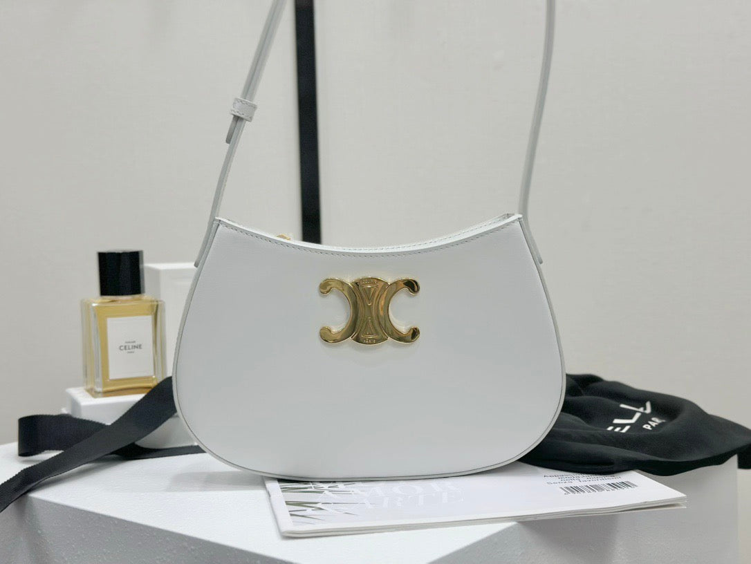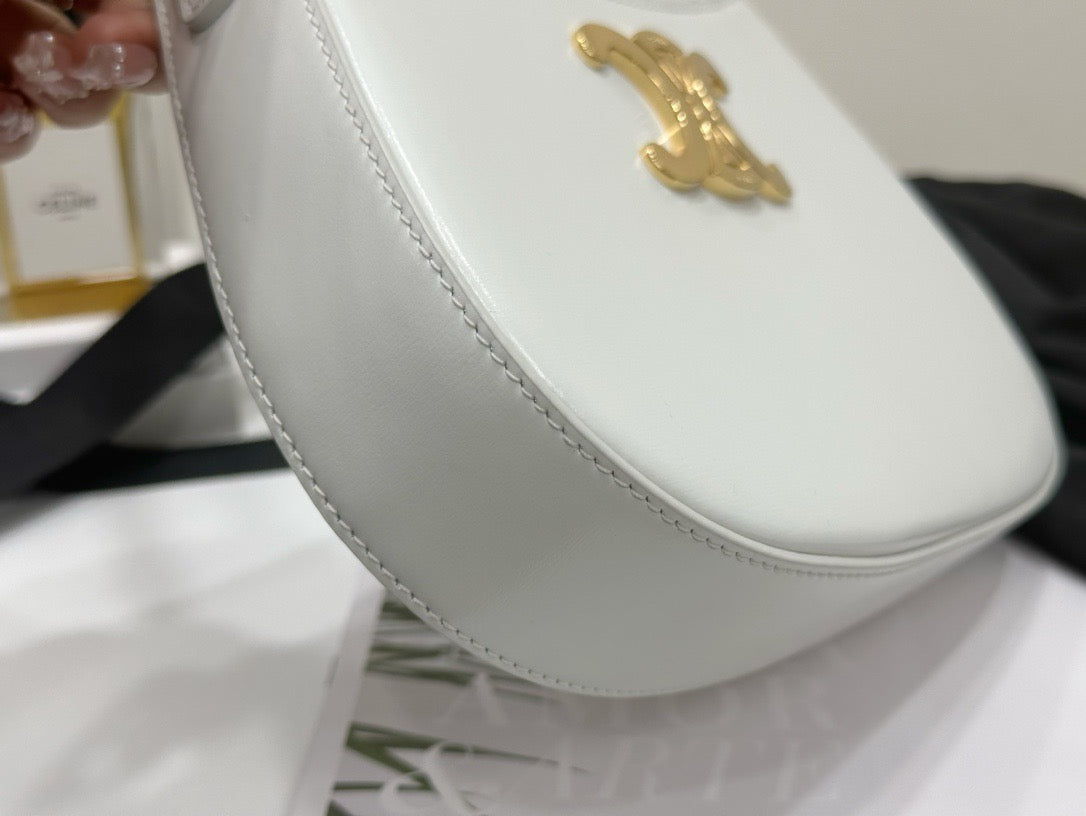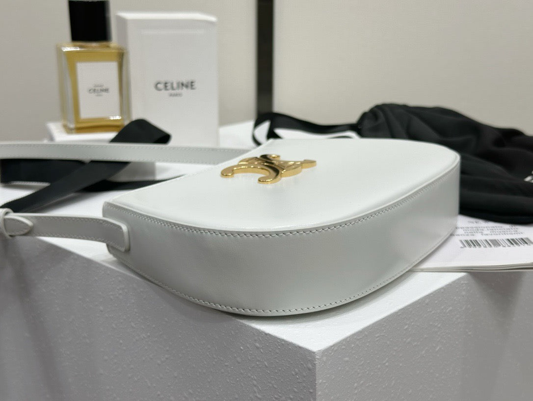 틸리 숄더백은 매끈한 카프스킨 바디와 라운드 플랩 디자인이 조화를 이루며, 미니멀하면서도 존재감 있는 실루엣을 자랑합니다. 골드 메탈 트라이엄프 클로저가 셀린느만의 아이덴티티를 강조하고, 고급스러운 가죽 스트랩은 숄더 또는 크로스 형태로 연출 가능합니다.
