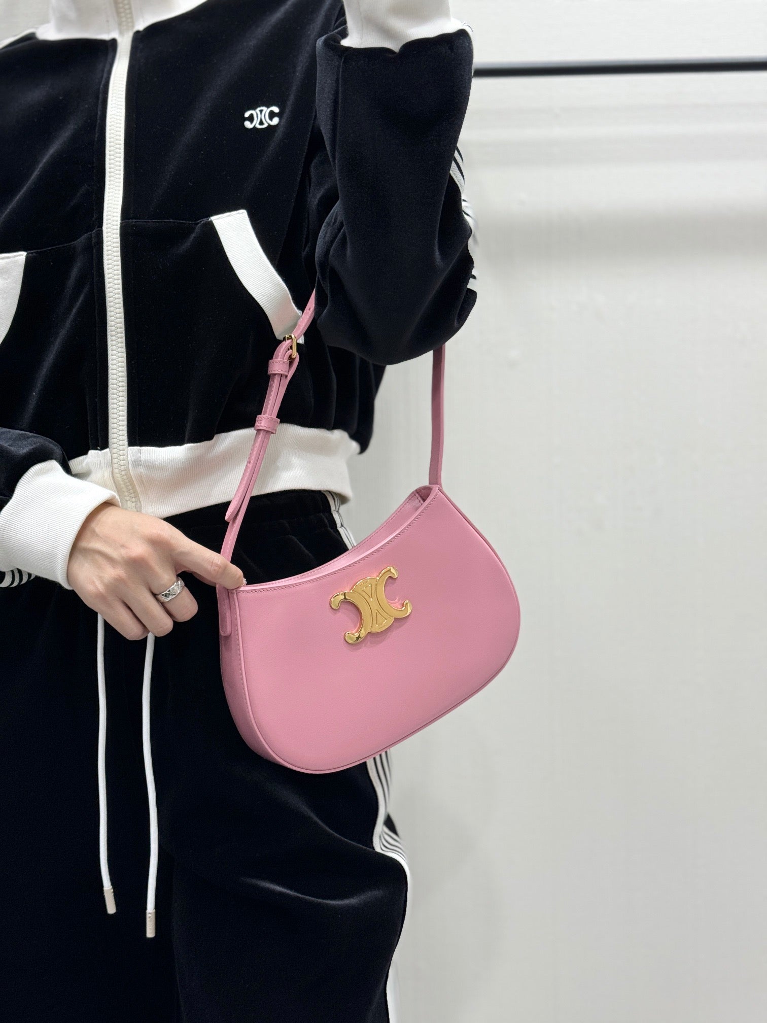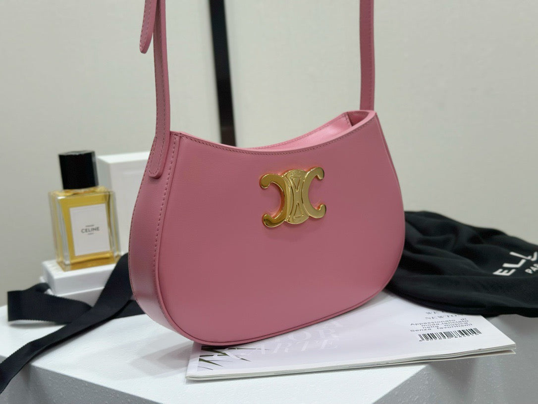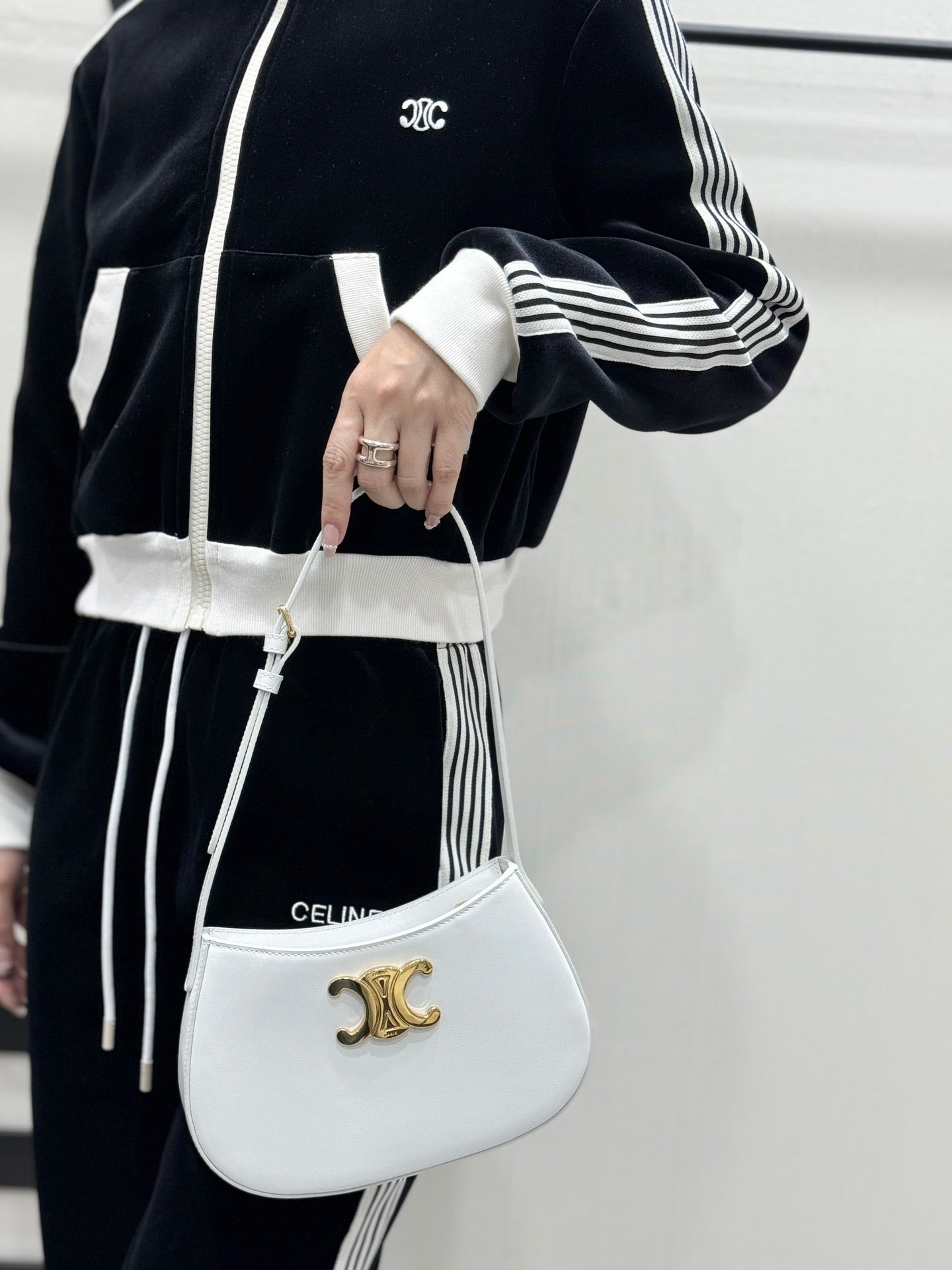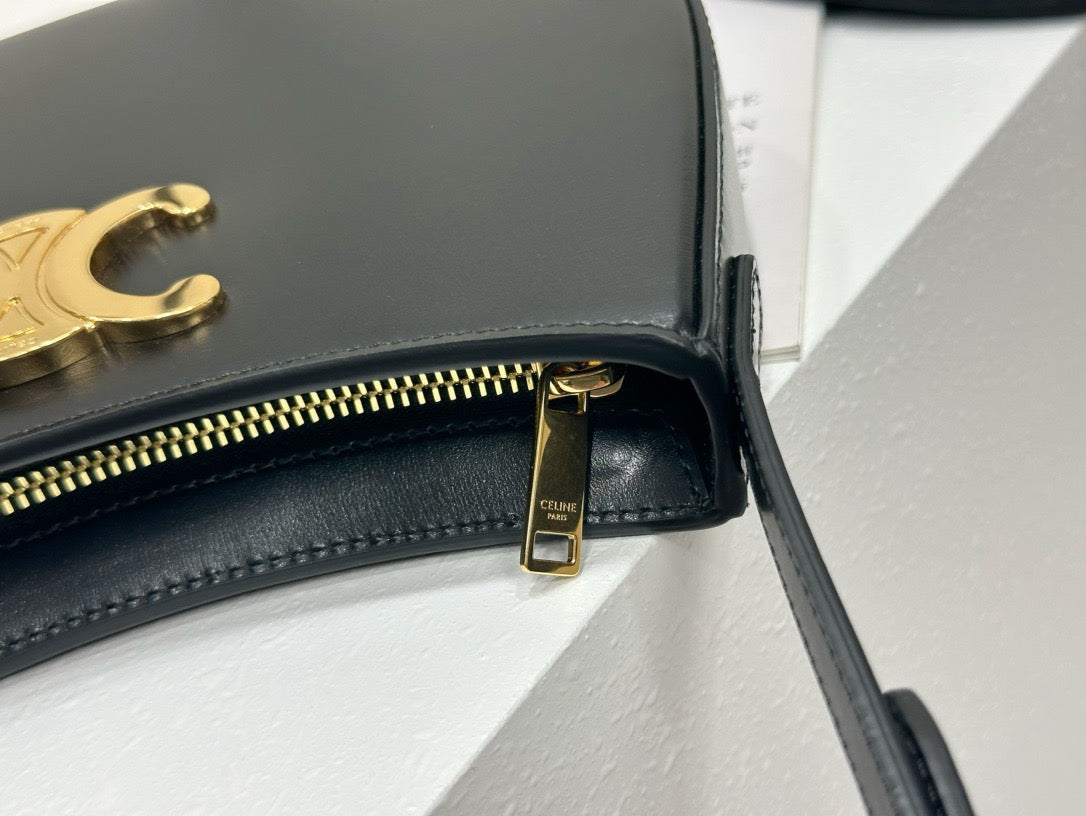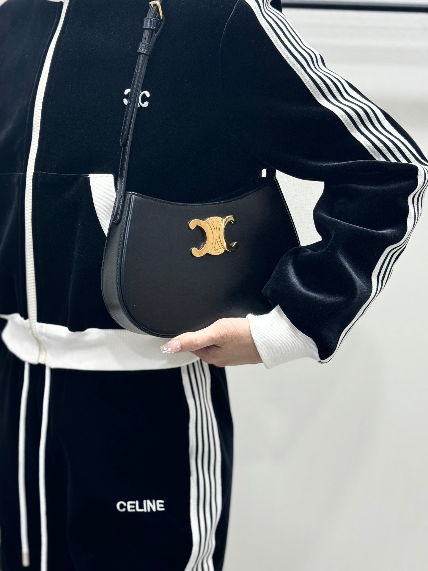 틸리 숄더백은 매끈한 카프스킨 바디와 라운드 플랩 디자인이 조화를 이루며, 미니멀하면서도 존재감 있는 실루엣을 자랑합니다. 골드 메탈 트라이엄프 클로저가 셀린느만의 아이덴티티를 강조하고, 고급스러운 가죽 스트랩은 숄더 또는 크로스 형태로 연출 가능합니다.