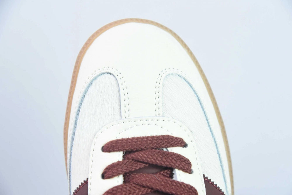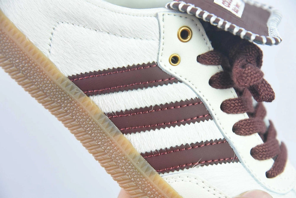 이 모델은 아디다스 삼바의 오리지널 형태를 유지하면서도, 포니 헤어 텍스처가 더해진 어퍼가 시선을 사로잡습니다. 크림 화이트와 미스테리 브라운의 조화로운 컬러 구성은 따뜻하면서도 고급스러운 분위기를 자아내며, 웨일스 보너 특유의 디테일 감각이 디자인 전반에 녹아 있습니다. 레트로 무드와 현대적인 감성이 조화를 이루며 일상적인 룩에 특별한 포인트를 더합니다.