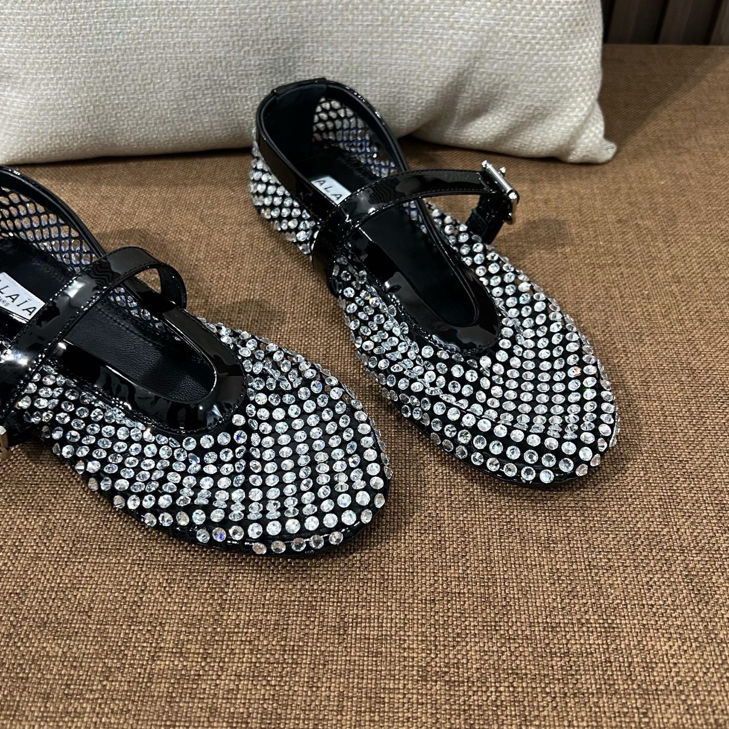 알라이아 크리스탈 메쉬 플랫 슈즈