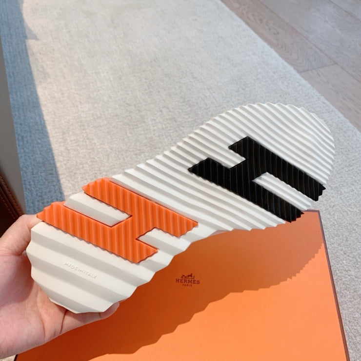 이 스니커즈는 경량의 텍스타일 메쉬를 활용해 여름철에도 쾌적하게 착용할 수 있으며, 유연하고 편안한 착화감을 제공합니다. 에르메스의 미니멀하고 세련된 디자인 철학이 반영된 외형은 어떠한 스타일에도 자연스럽게 어울립니다.
