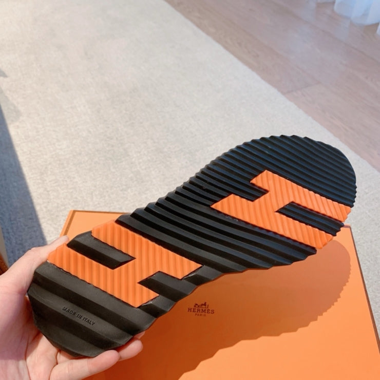 누아(블랙)는 절제된 우아함을 표현하고, 미엘(허니 옐로우)은 따뜻한 생기를 더해줍니다. 텍스타일과 송아지 가죽이 혼합된 구조는 고급스러운 텍스처와 내구성을 자랑하며, 곡선형 아웃솔과 측면의 H 로고 디테일이 에르메스 특유의 품격을 담아냅니다.