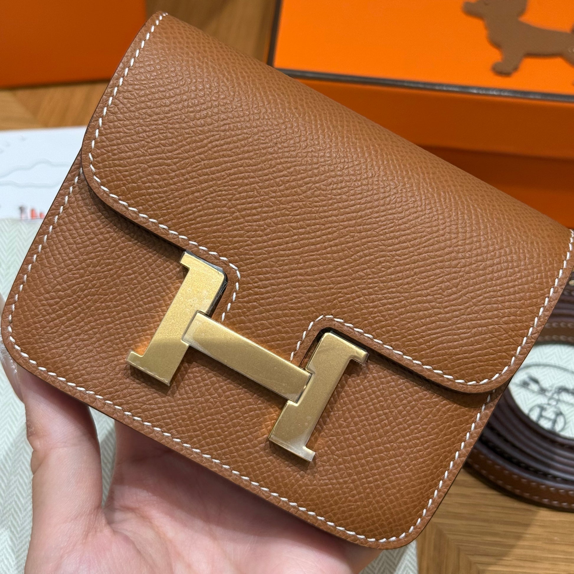 에르메스 콘스탄스 슬림 지갑 앱송 - 구조감 있는 질감과 클래식한 매력