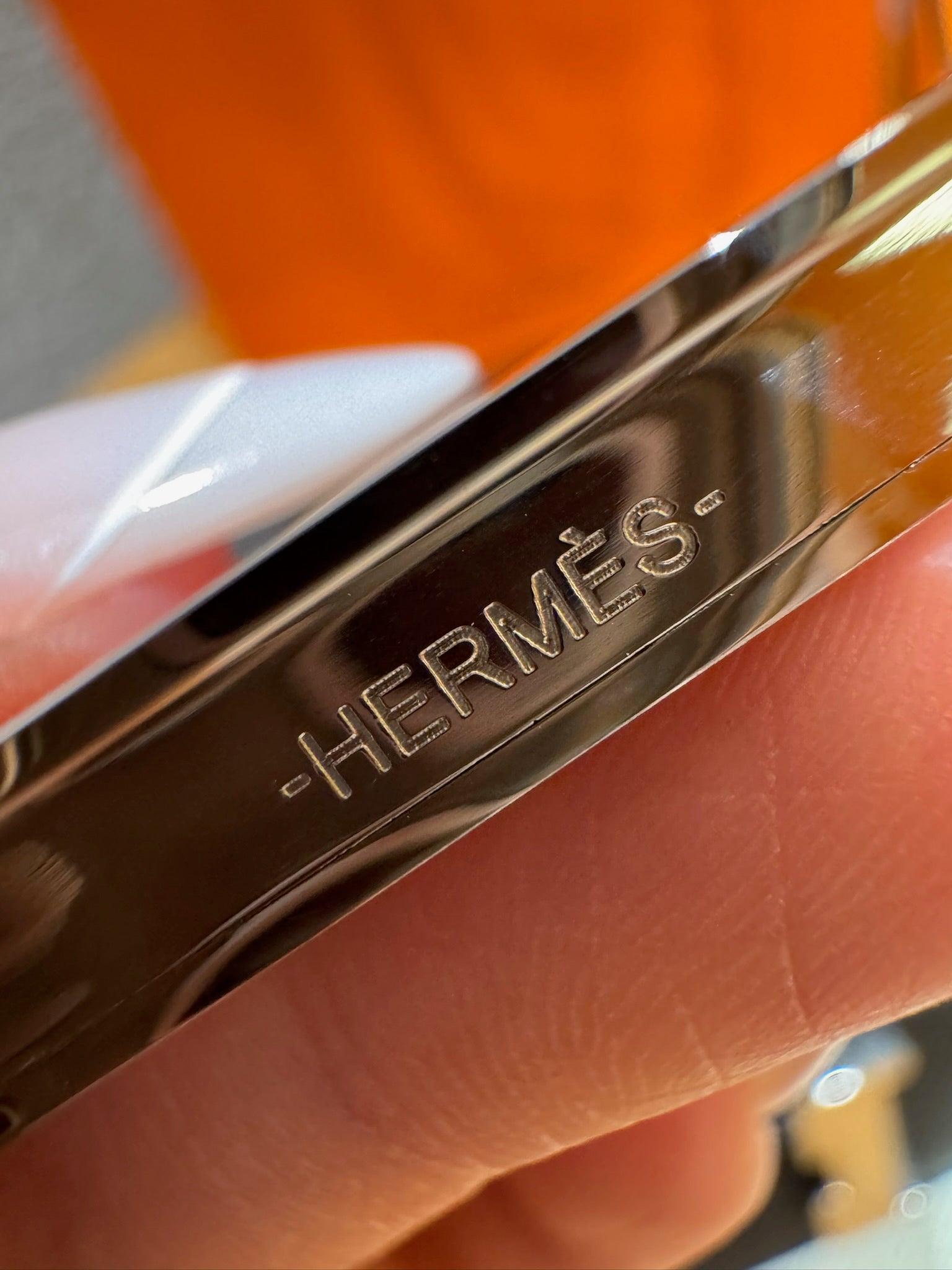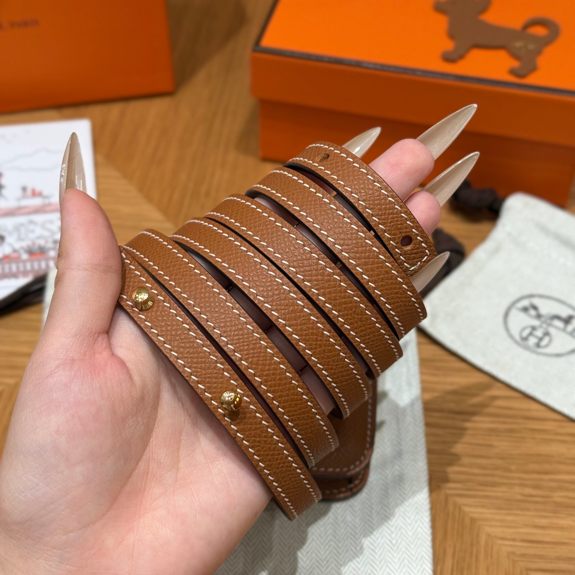 하드웨어: 팔라디움 또는 골드 마감 H 로고 버클