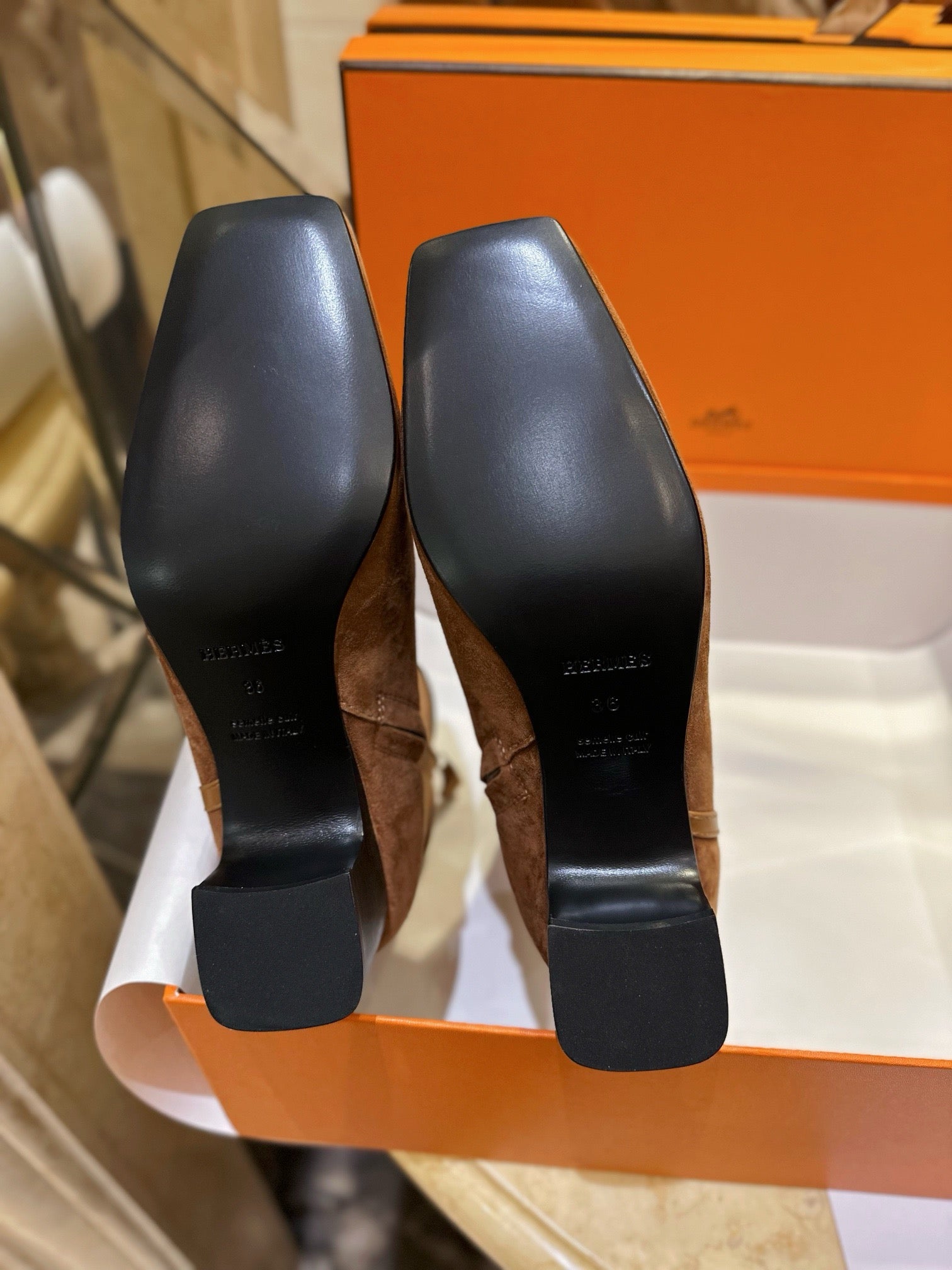 에르메스 부츠는 대체로 정사이즈로 출시되며, 도톰한 양말과 함께 신으실 경우 반 사이즈 업을 추천드립니다.