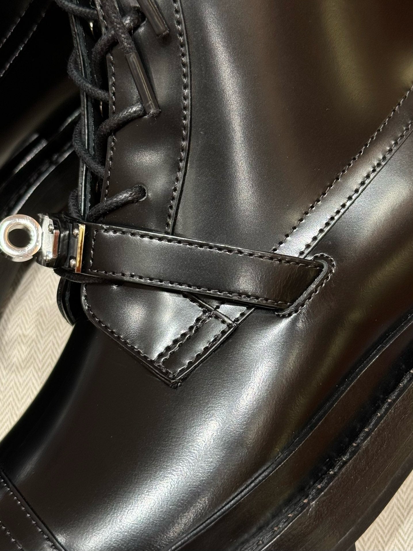 주요 소재: 박스 레더 또는 스웨이드 송아지 가죽, 가죽+러버 혼합 솔